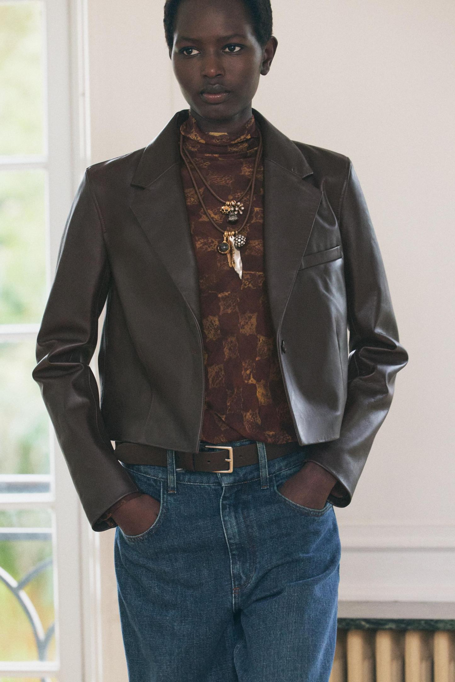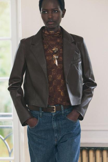 100% LEATHER SHORT BLAZER ZW COLLECTION