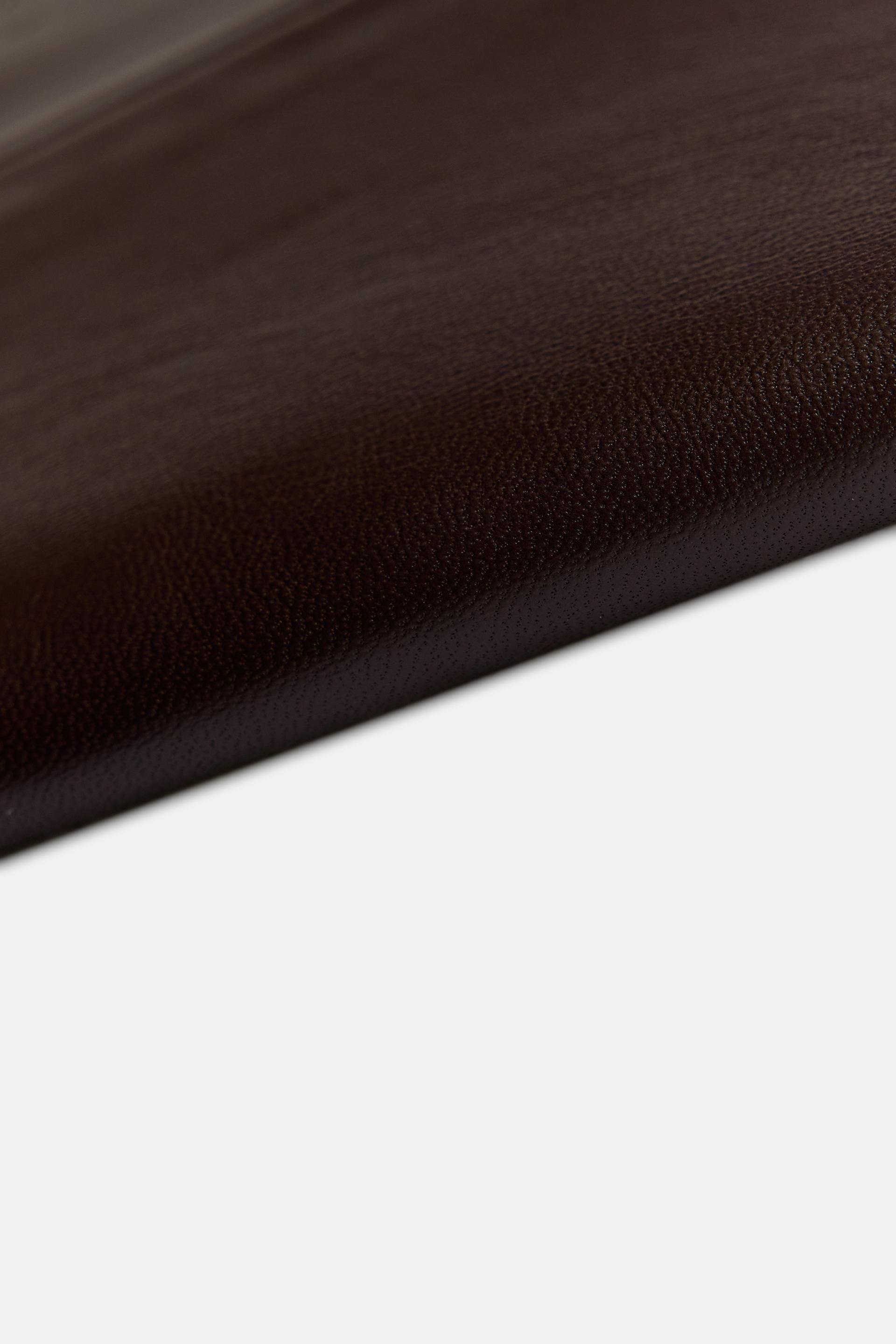 COMPOSITION & CARECOMPOSITIONWe work with monitoring programs to guarantee compliance with the social, environmental, and health and safety standards of our products. To assess its compliance, we have developed an audit program and plans for continual improvement.OUTER SHELL100% sheep leatherLINING100% viscoseCARECaring for your clothes is caring for the environment.To keep your jackets and coats clean, just freshen them out and wipe them with a cloth or clothing brush. If dry cleaning is necessary, try to look for dry cleaners that use environmentally respectful technologies.