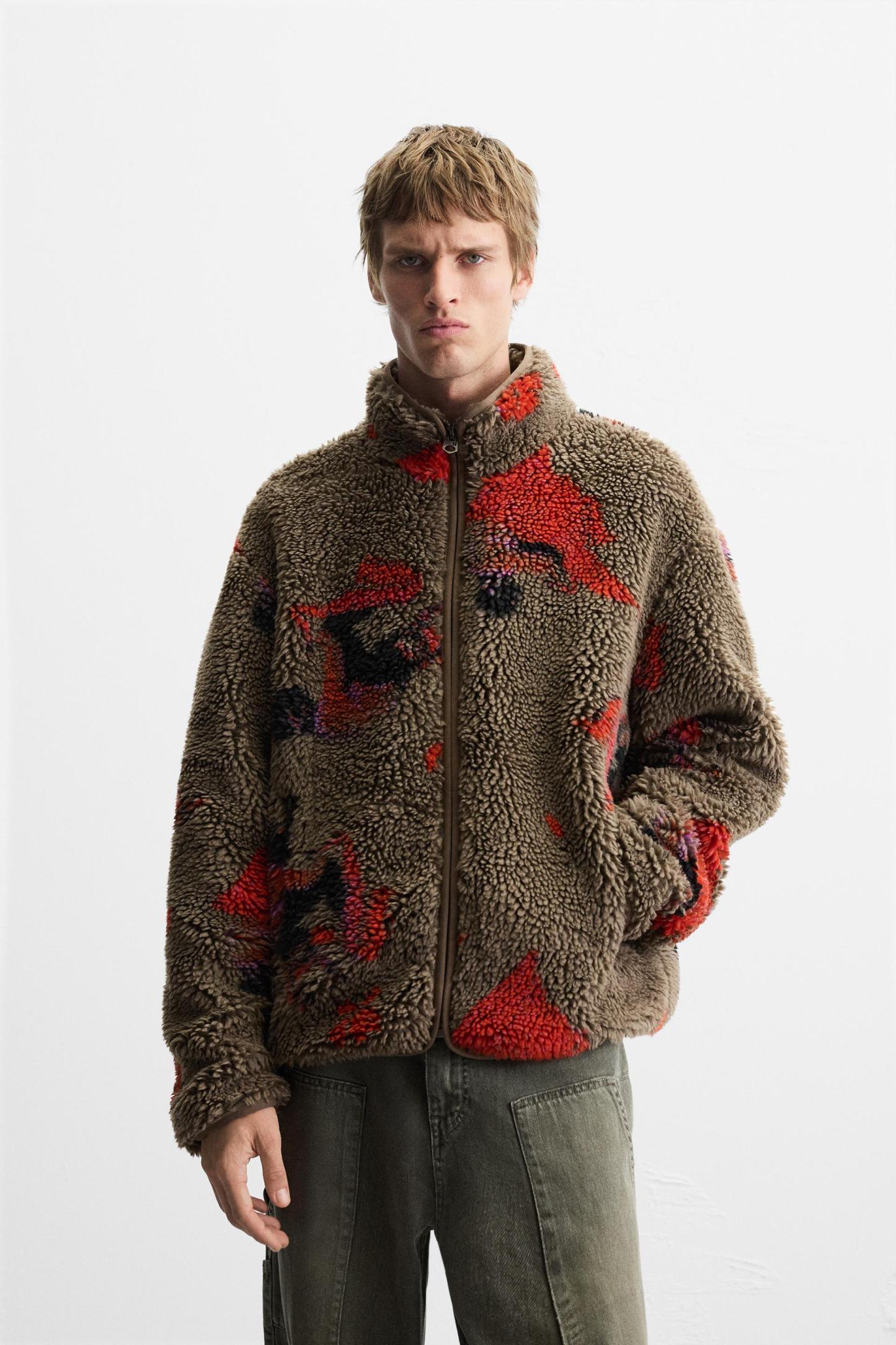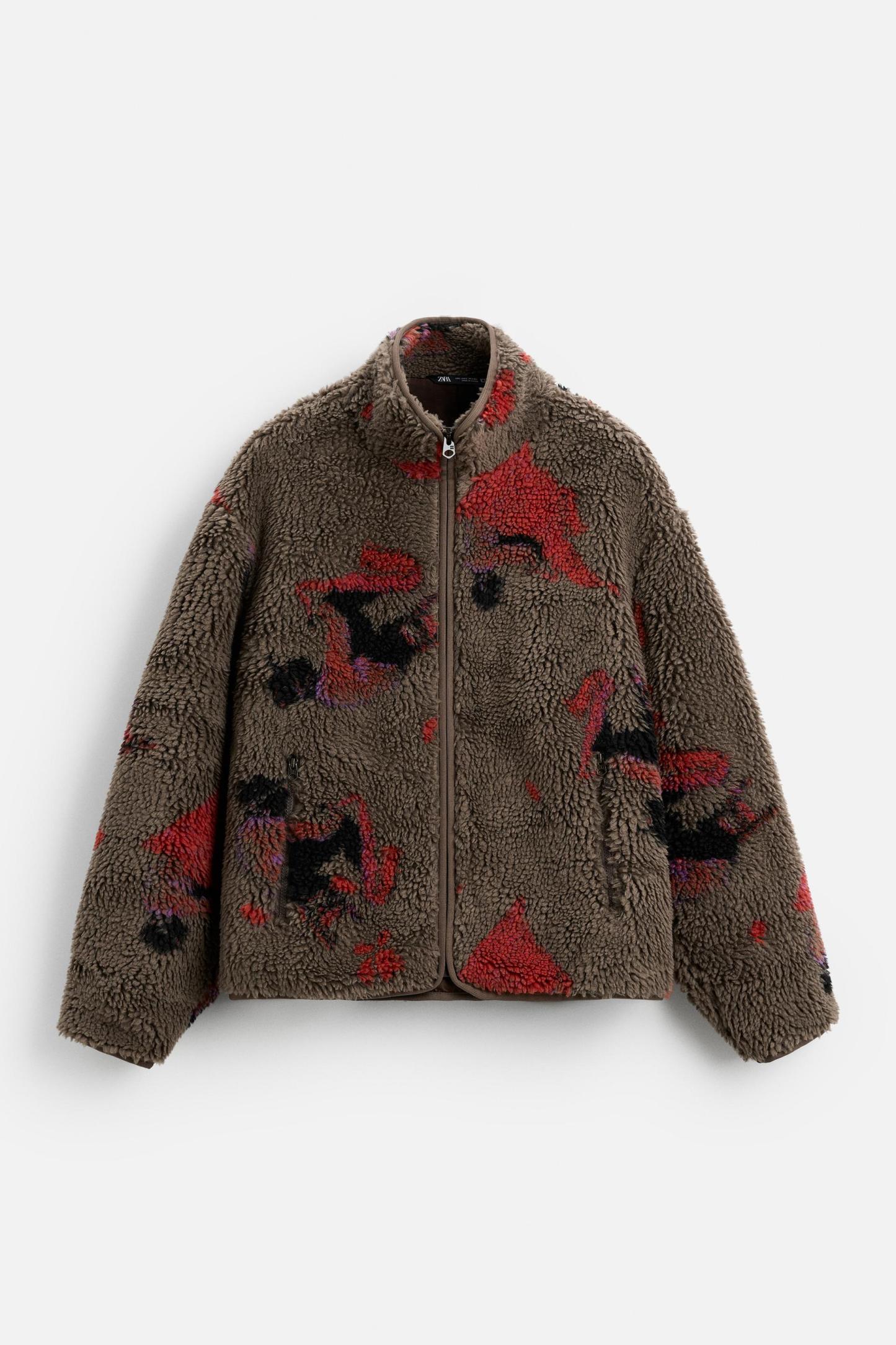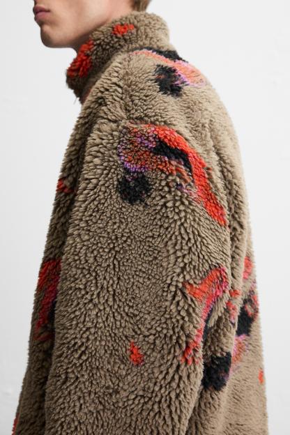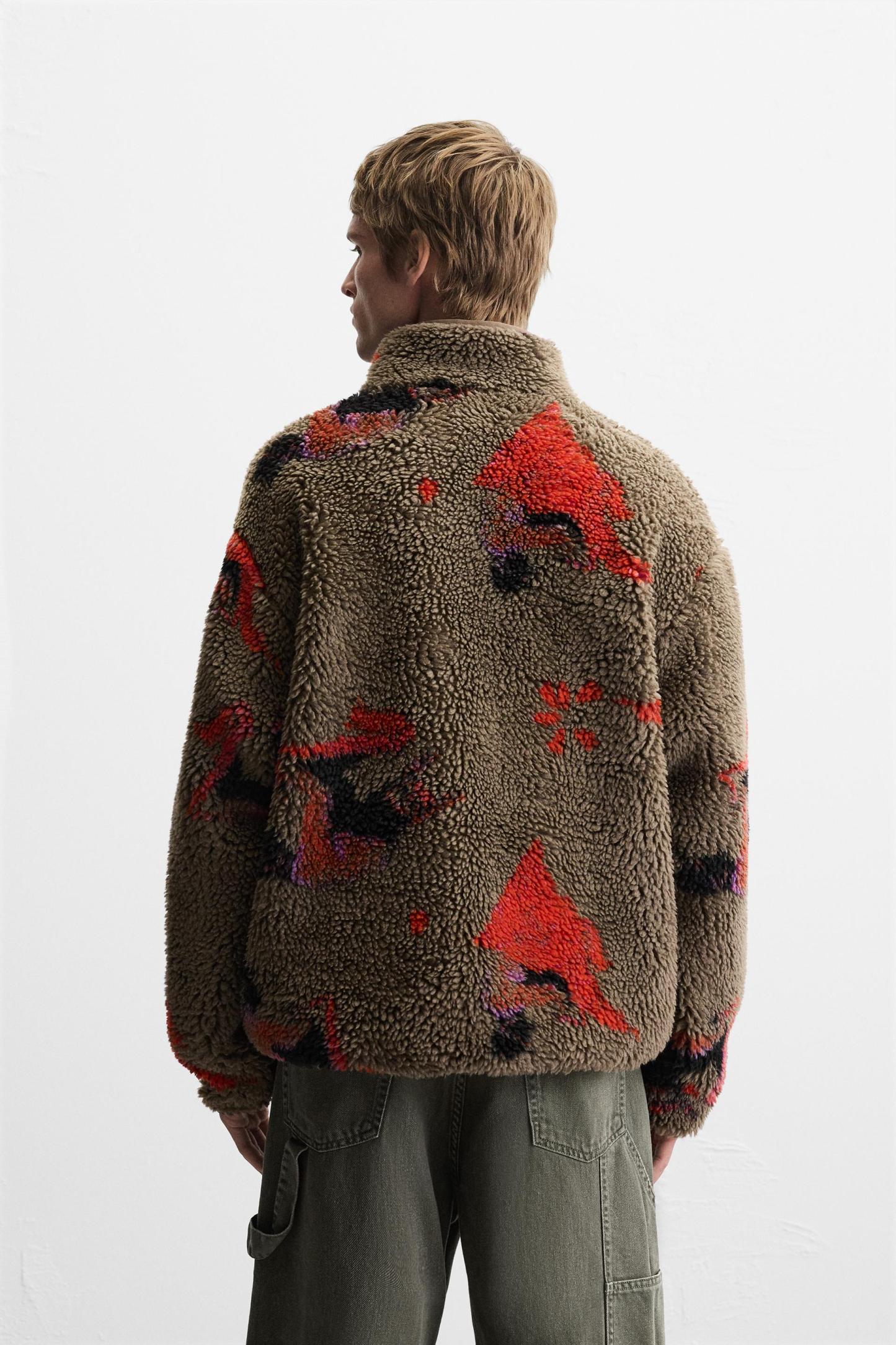 ABSTRACT PRINT FLEECE JACKET