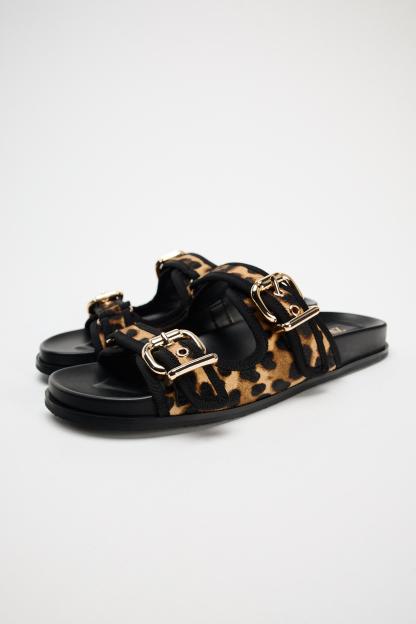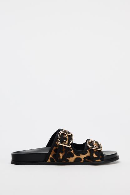 ANIMAL EMBOSSED LEATHER SLIDES