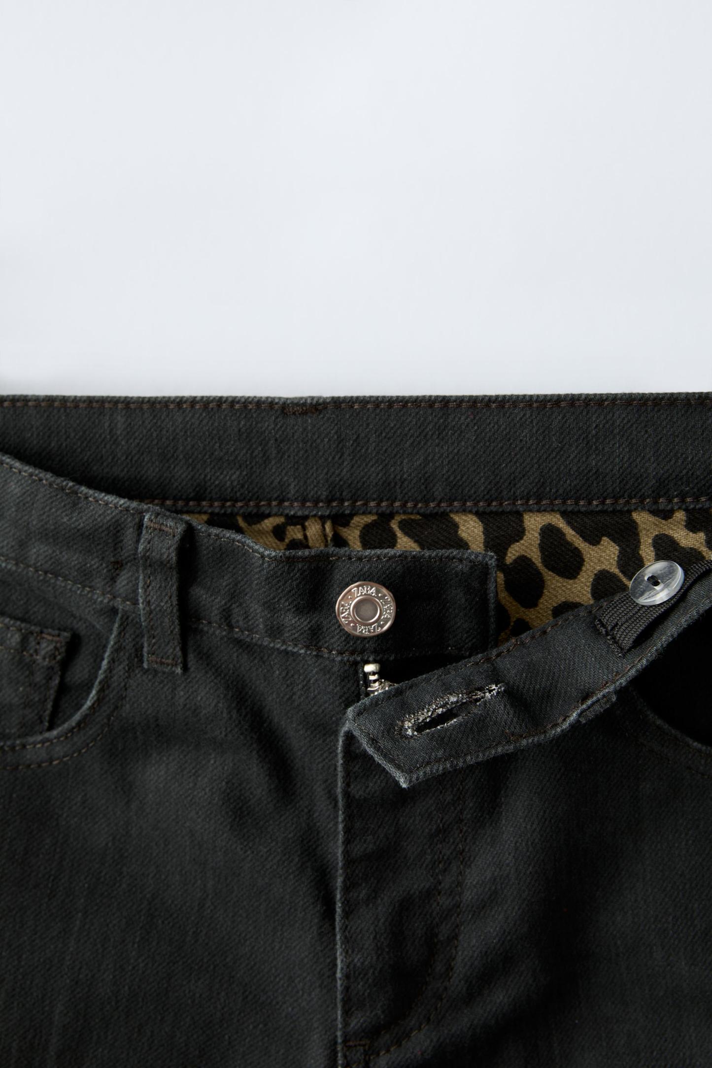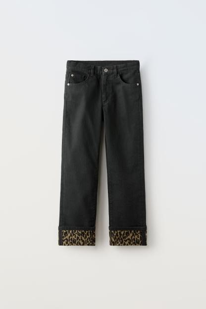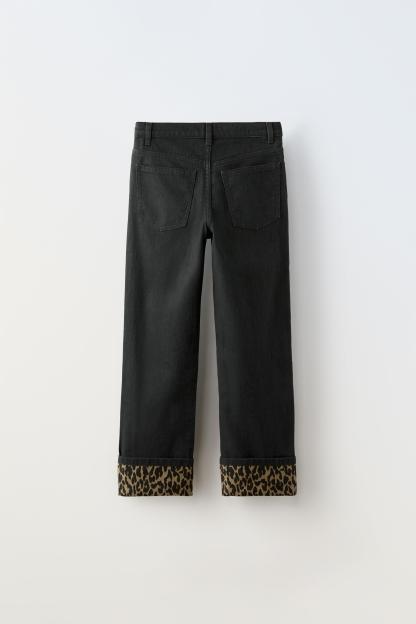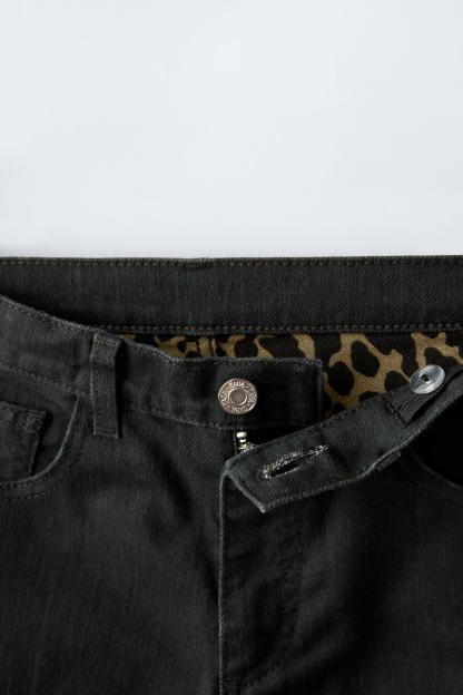 ANIMAL PRINT DETAIL STRAIGHT LEG JEANS