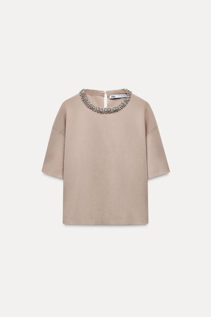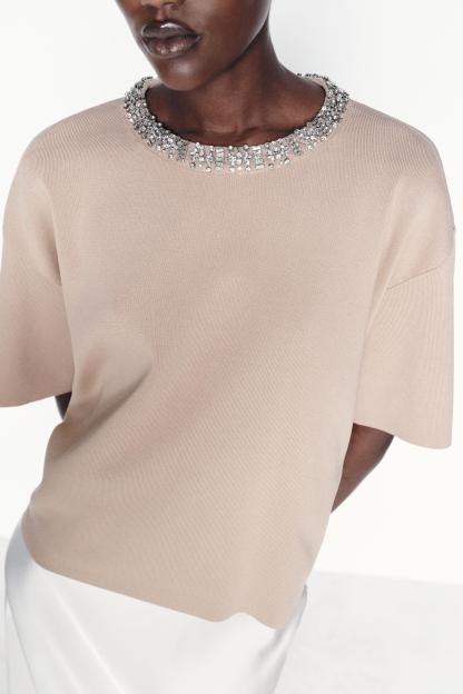 BASIC BEADS JEWEL KNIT TOP