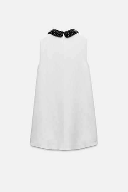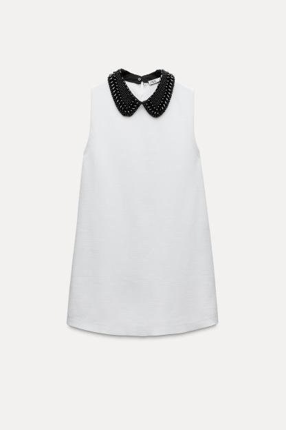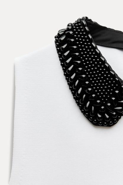 BEADED BIB COLLAR KNIT DRESS