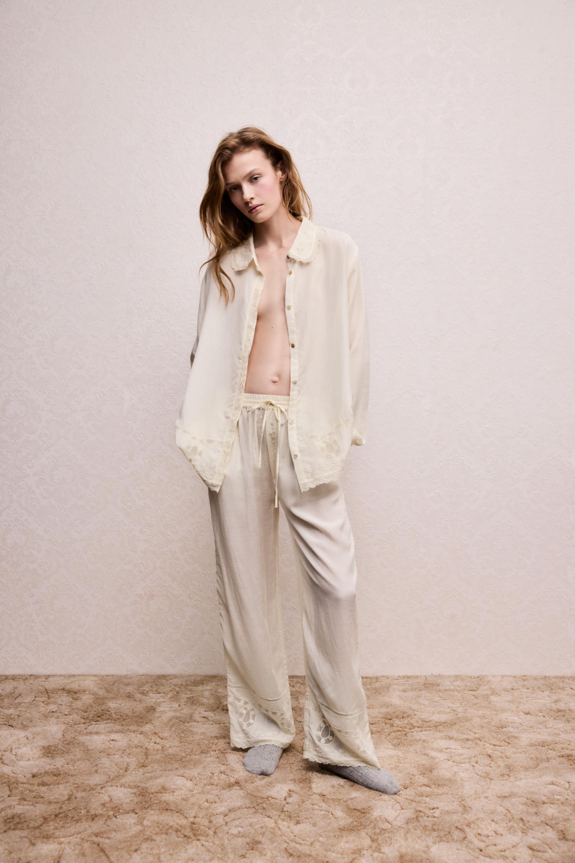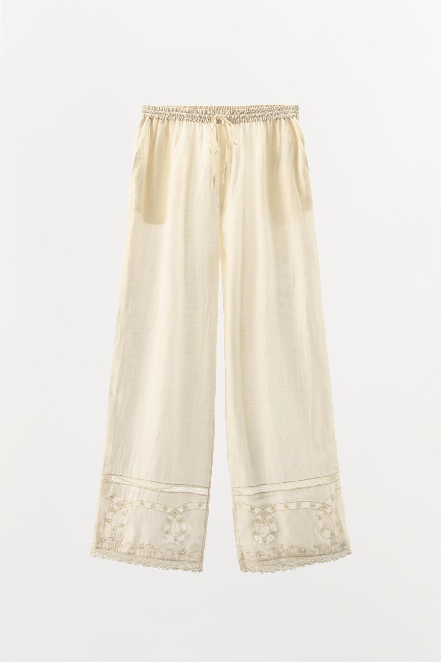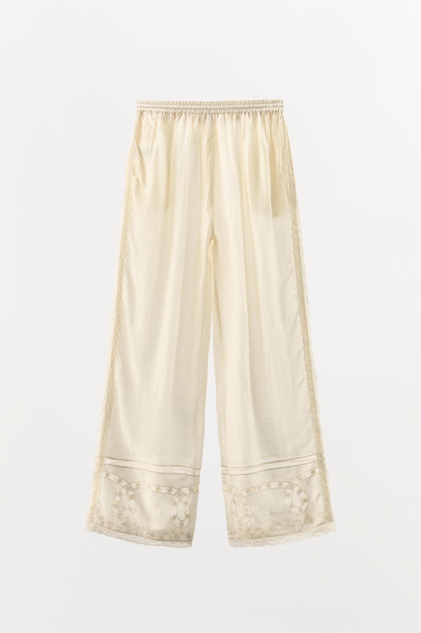 BEADED EMBROIDERED LACE PANTS