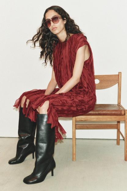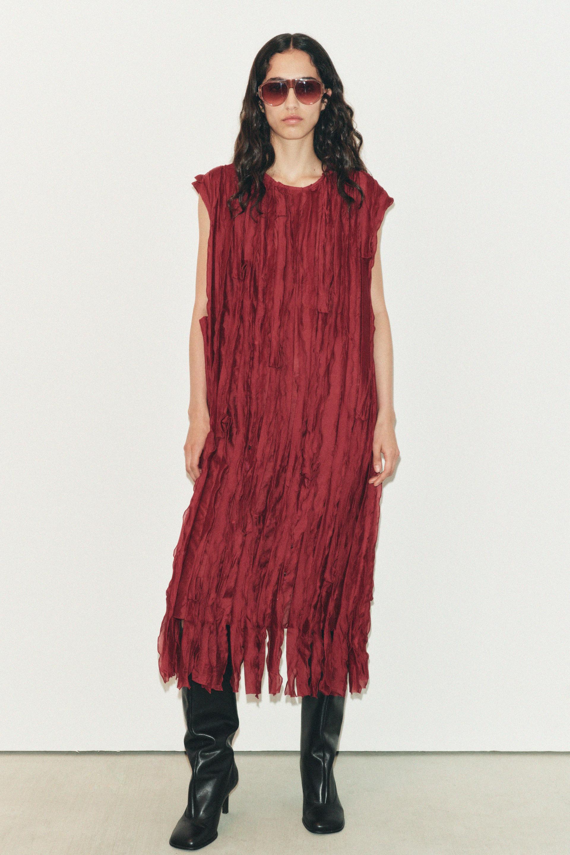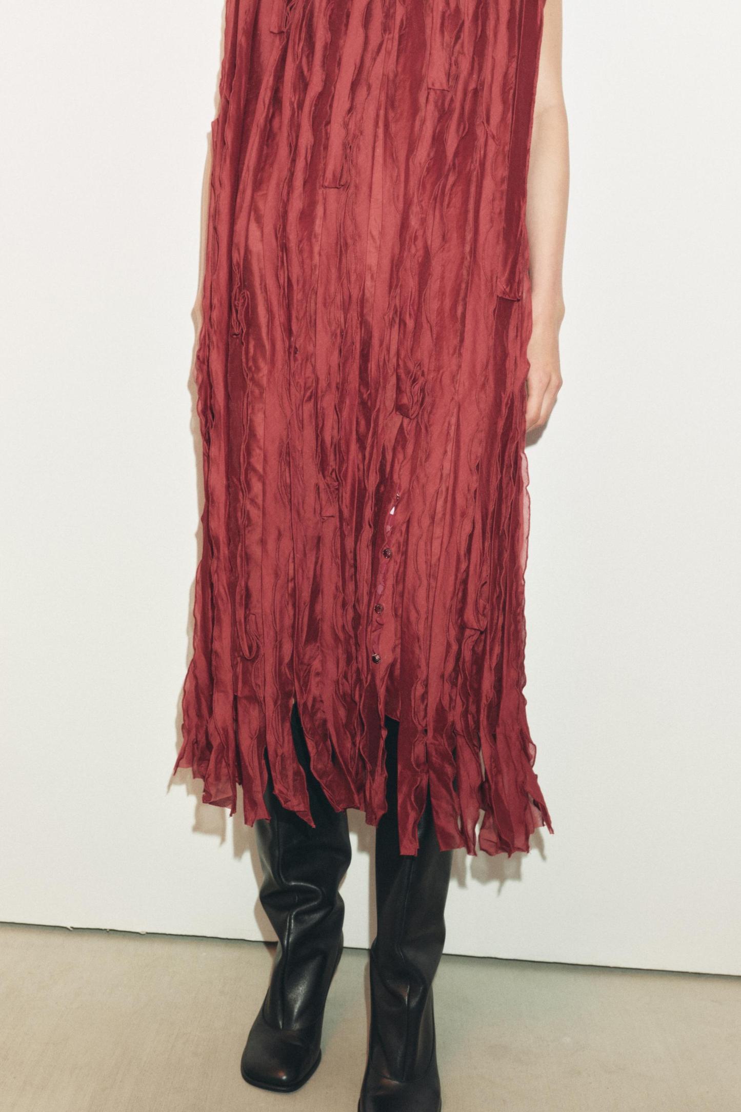 BEADED RUFFLE DRESS