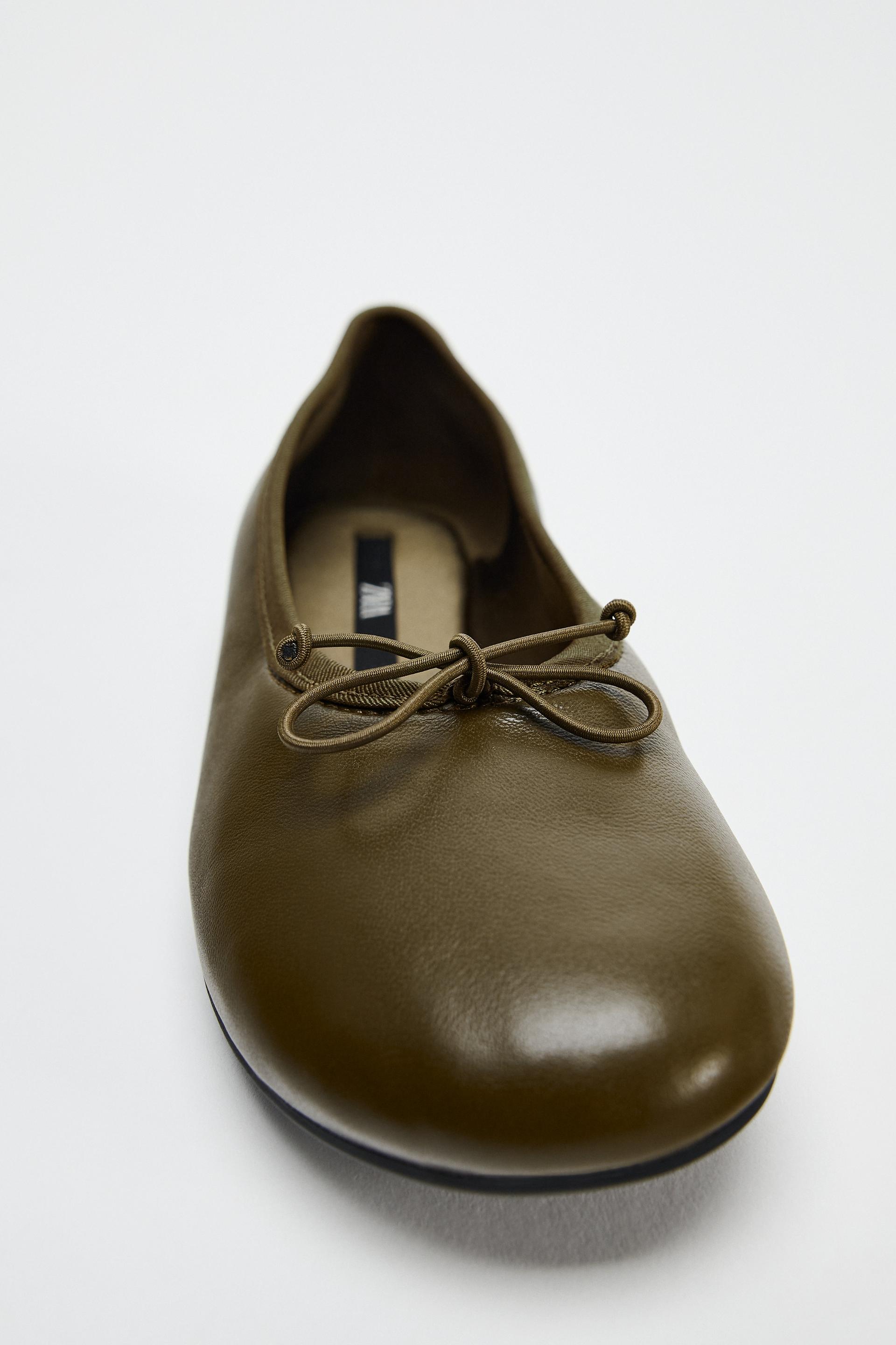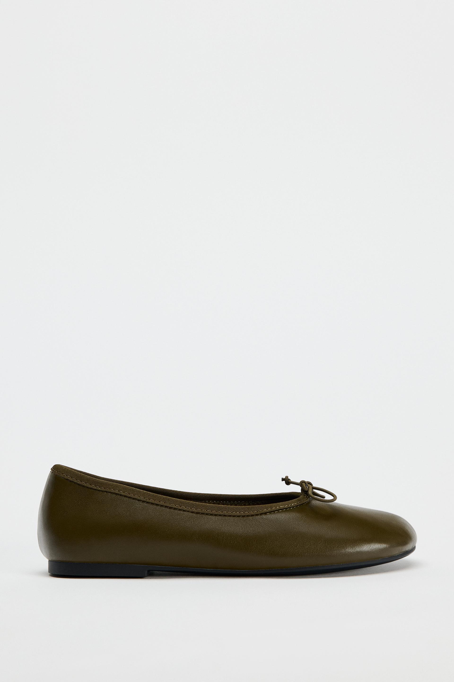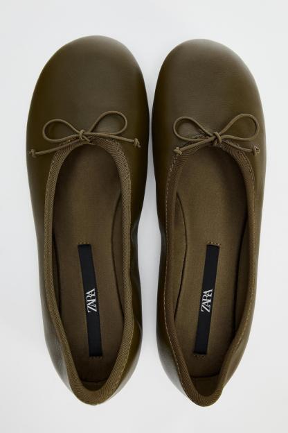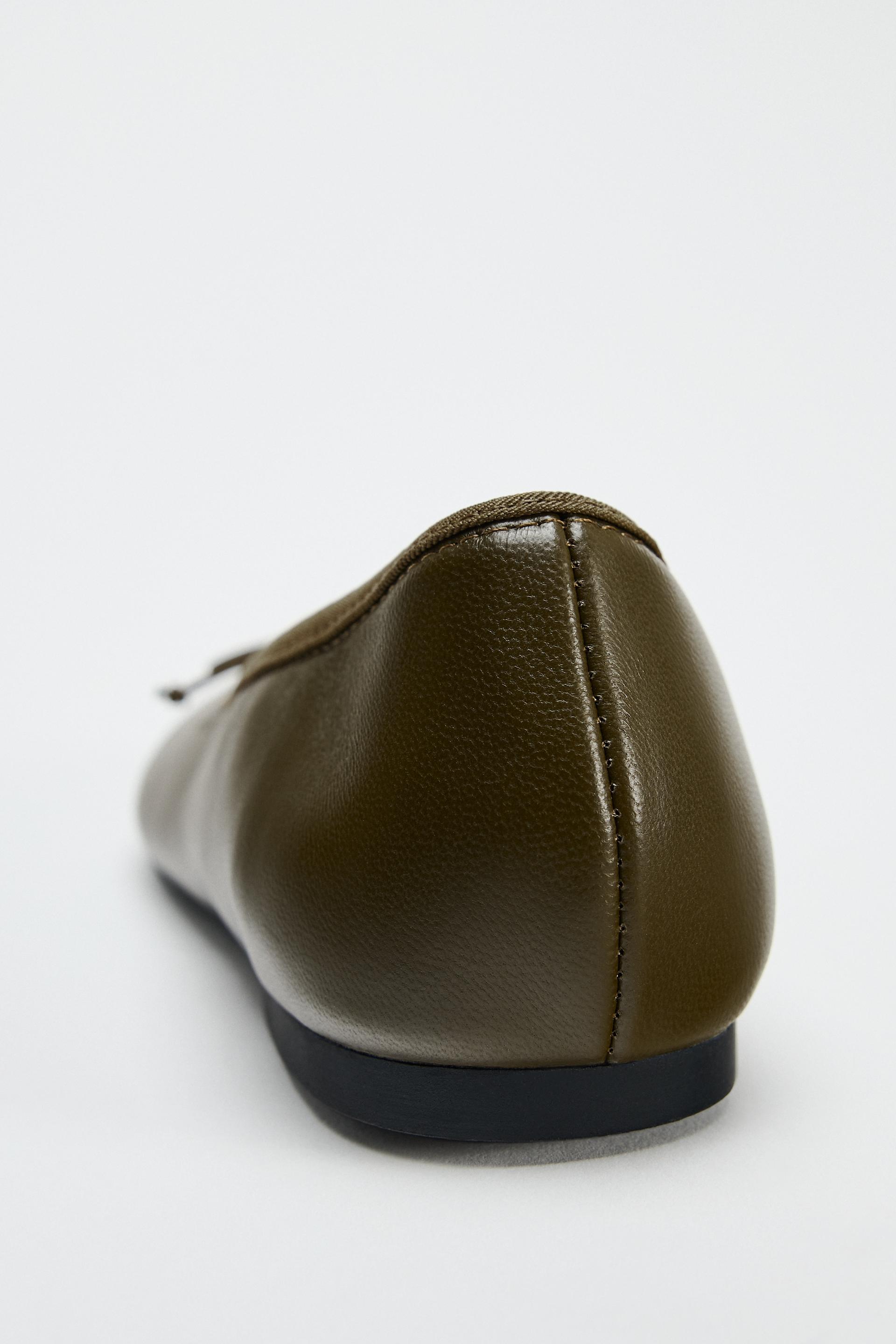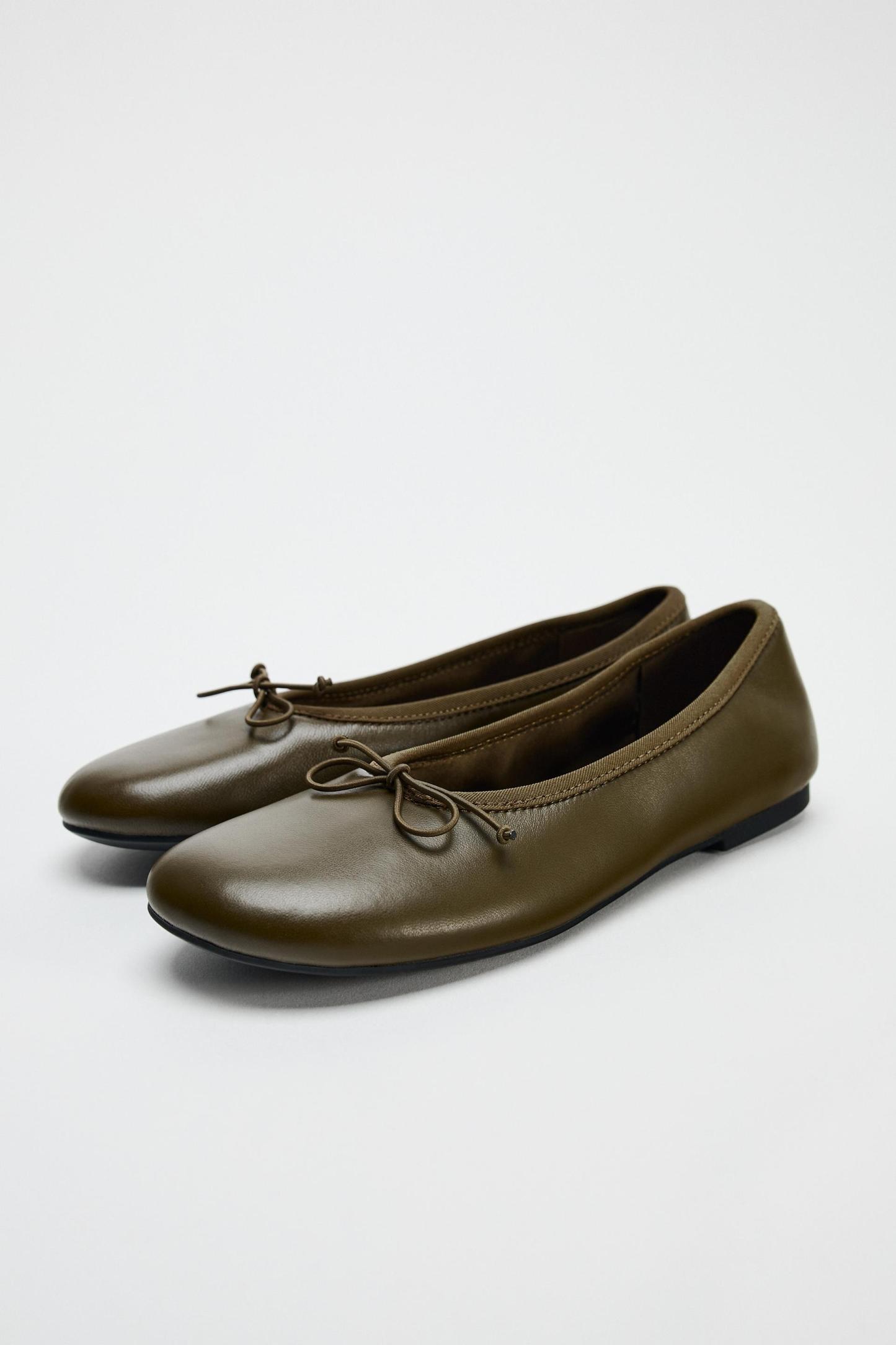 BOW TRIM LEATHER BALLET FLATS