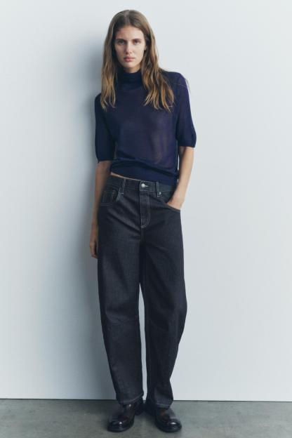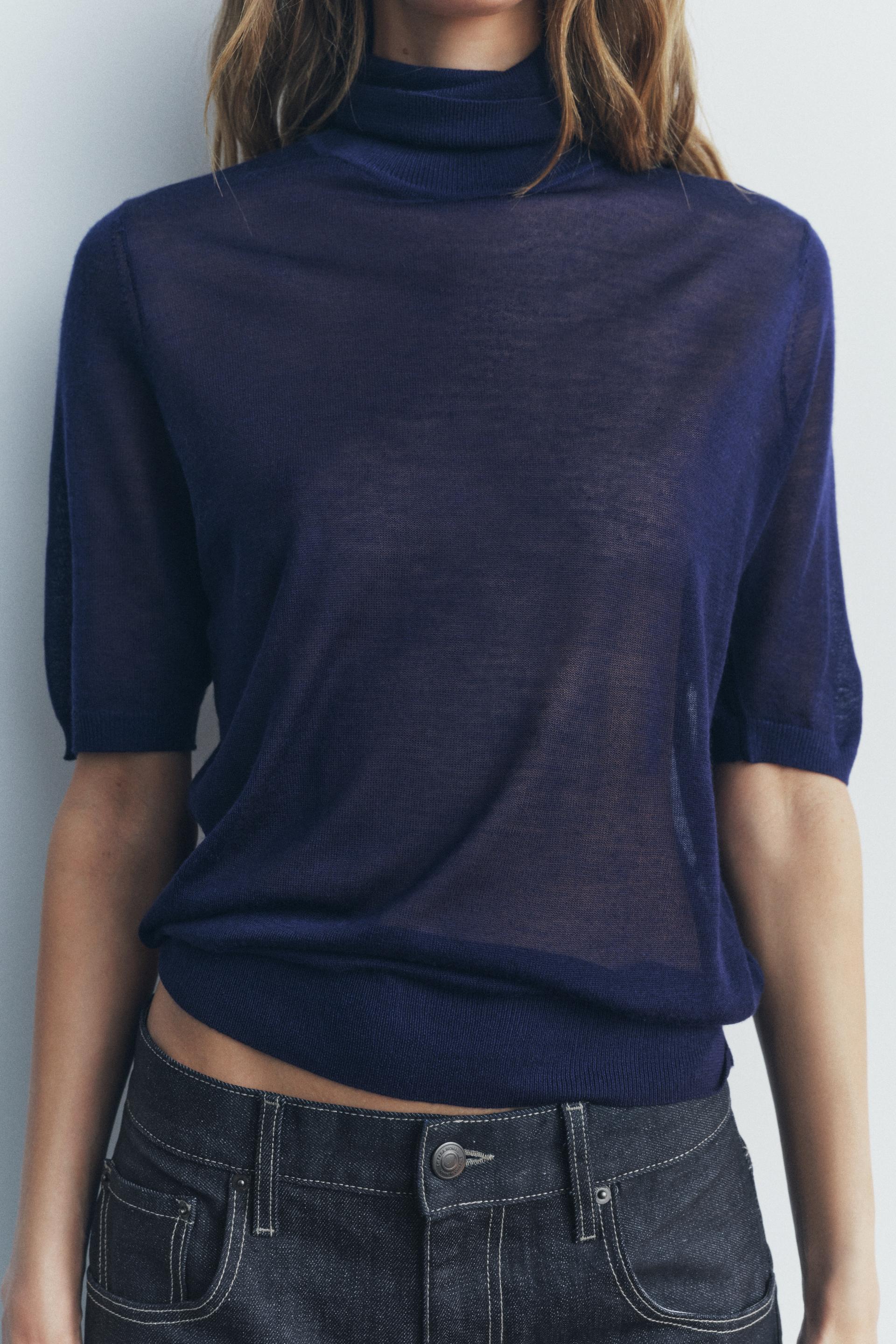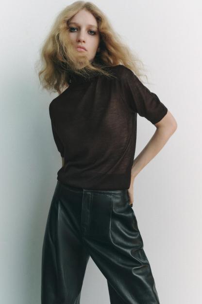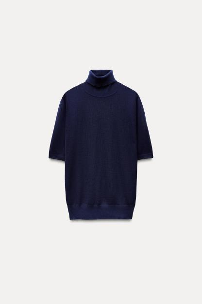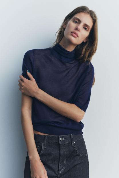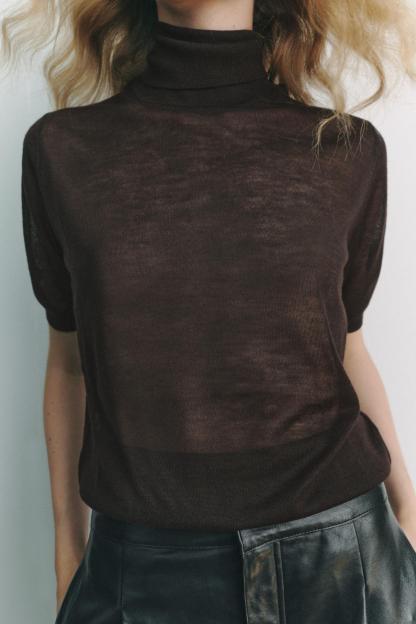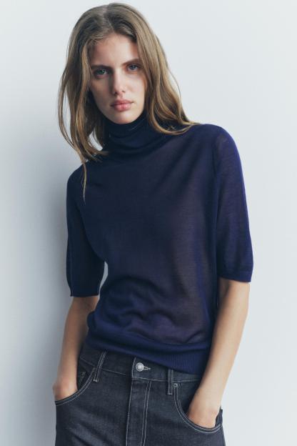 CASHMERE AND SILK BLEND HIGH COLLAR SWEATER