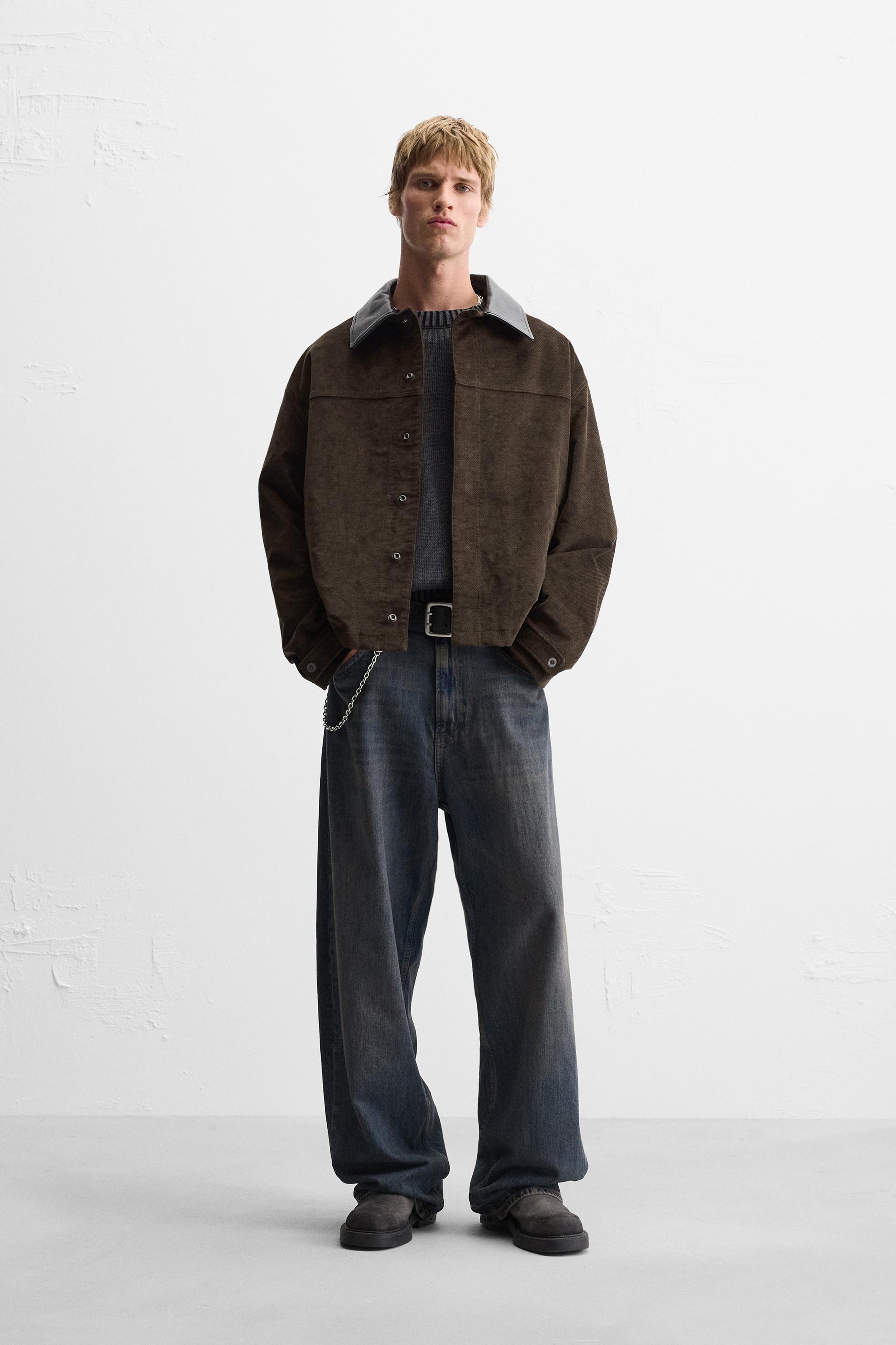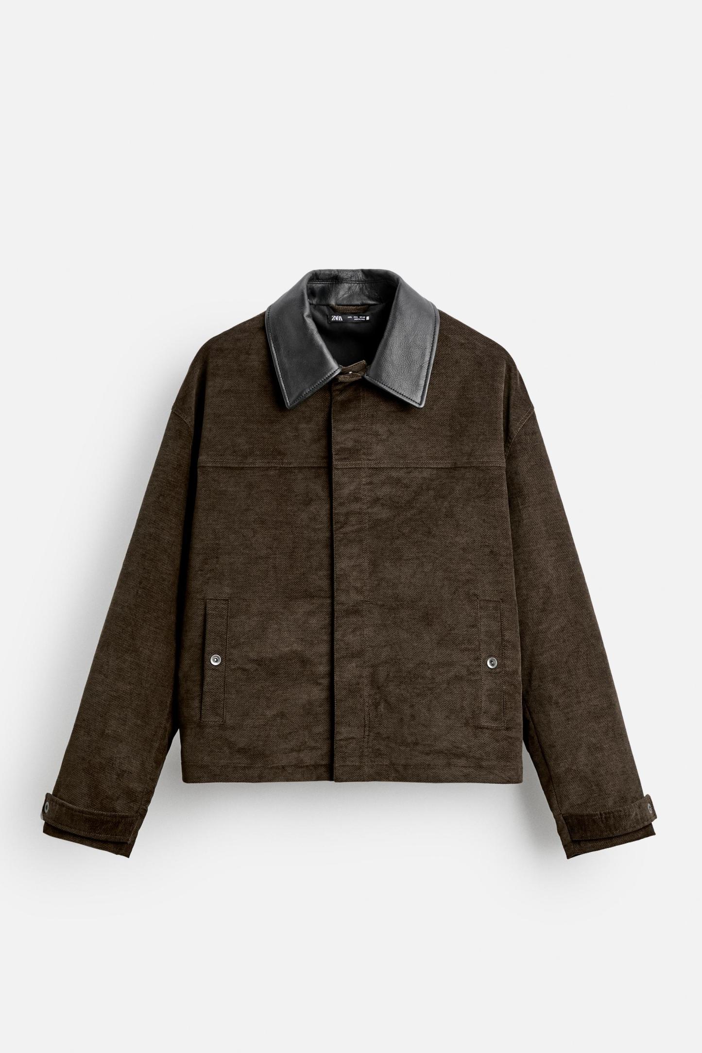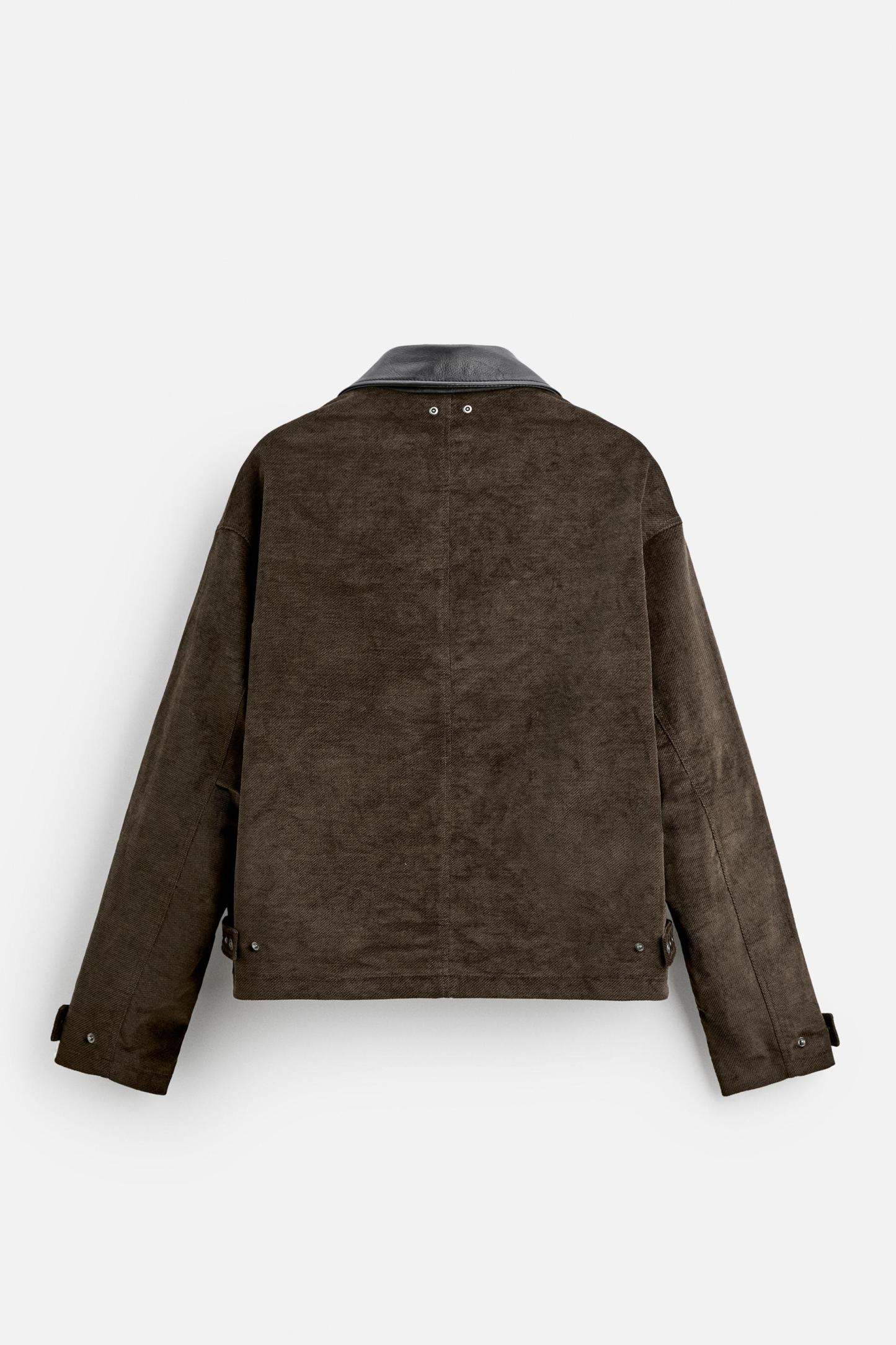 CONTRAST LEATHER COLLAR JACKET