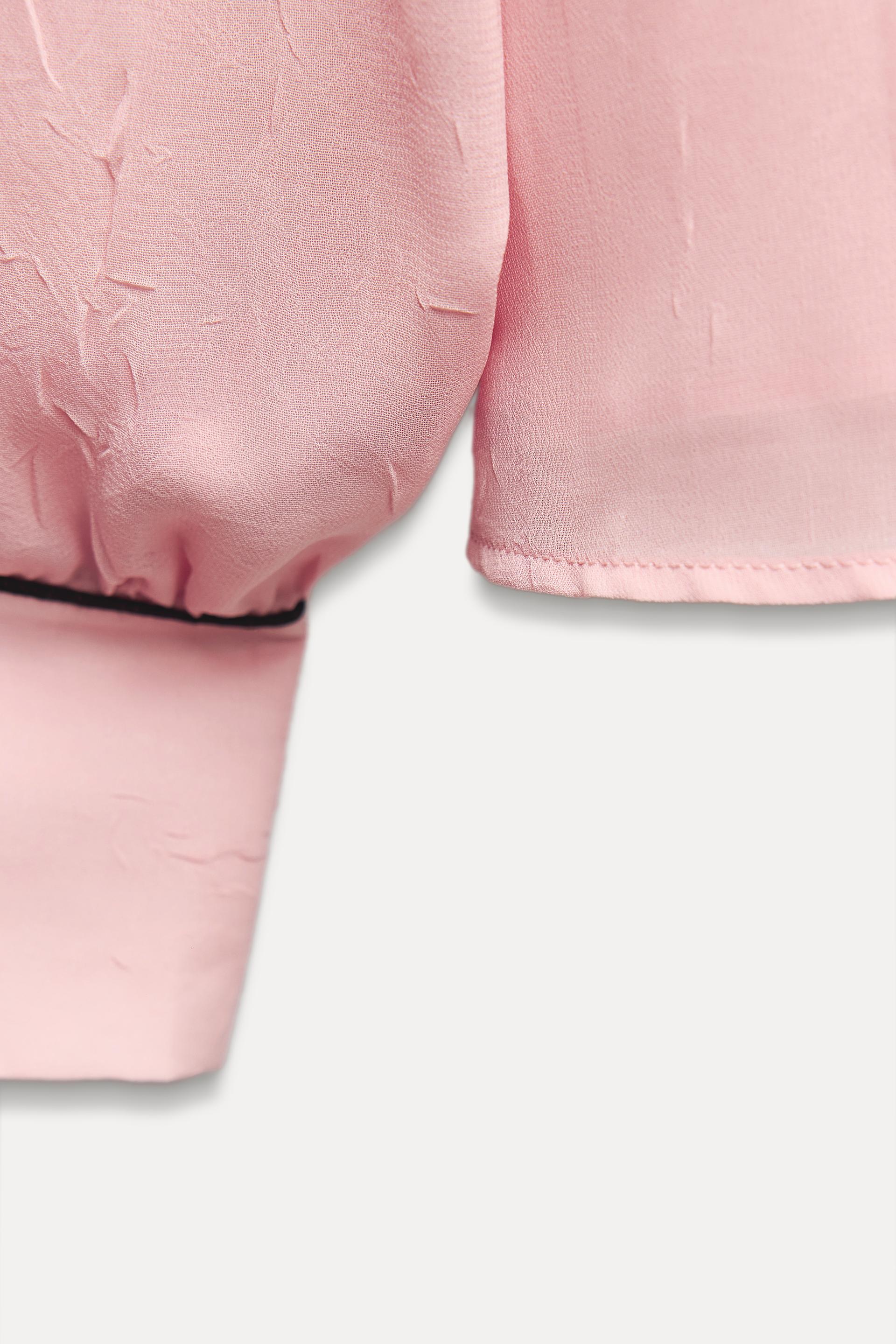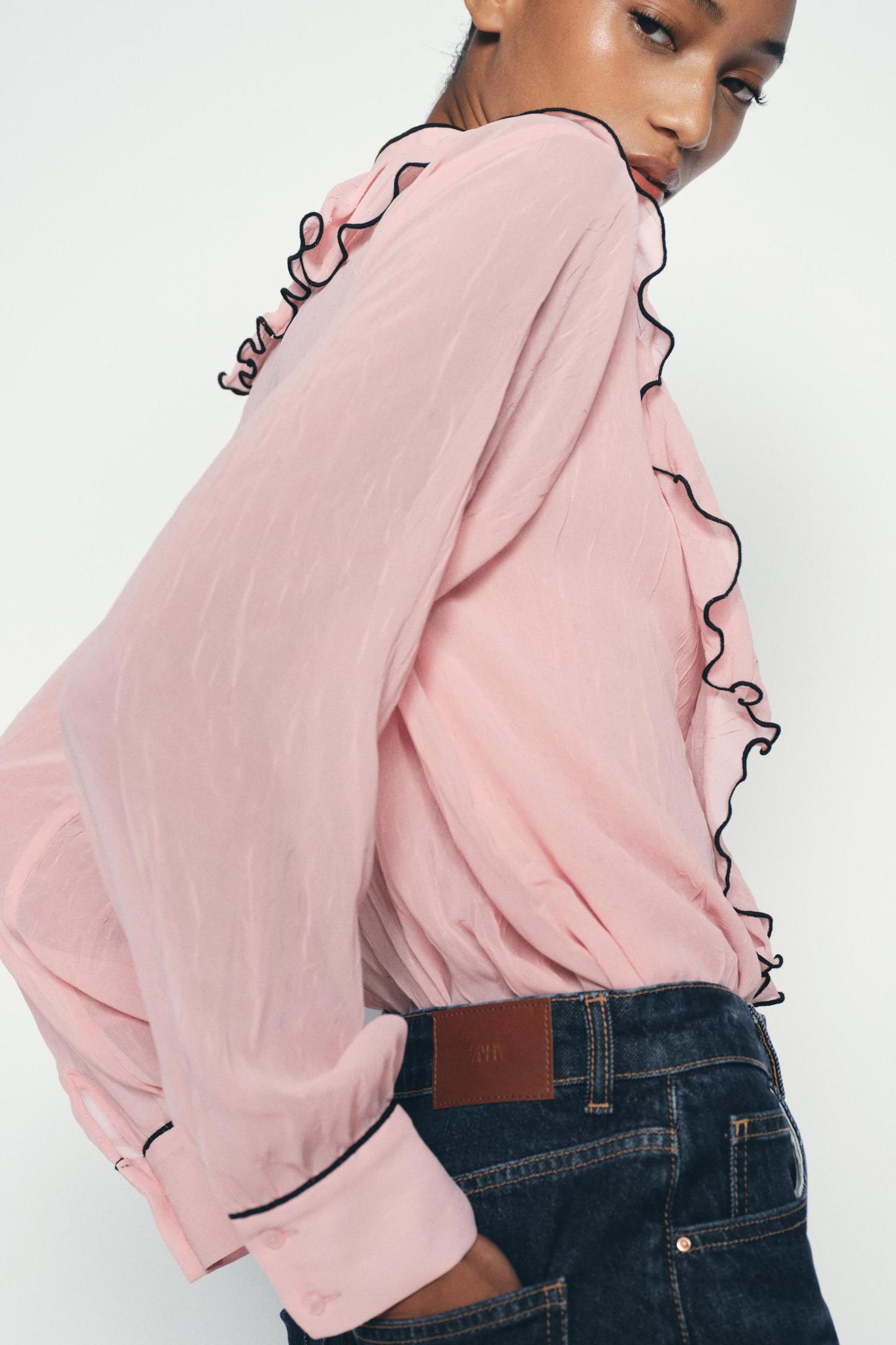 CONTRAST PIPING RUFFLED BLOUSE
