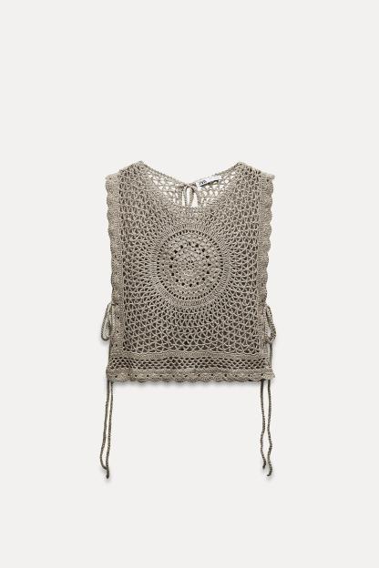 CROCHET KNIT TOP WITH TIES