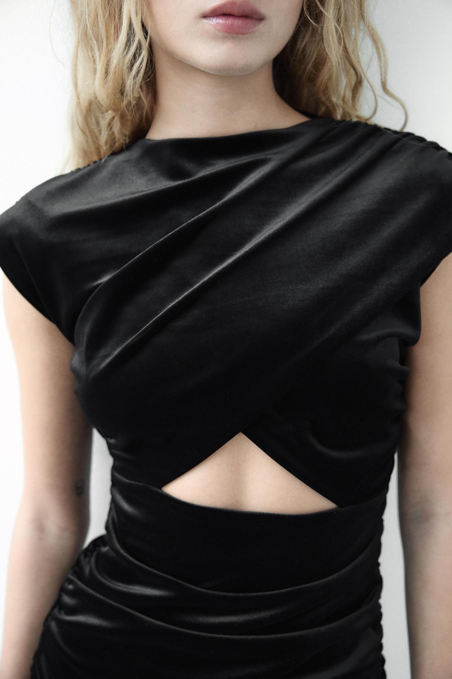CUT OUT VELVET MINI DRESS