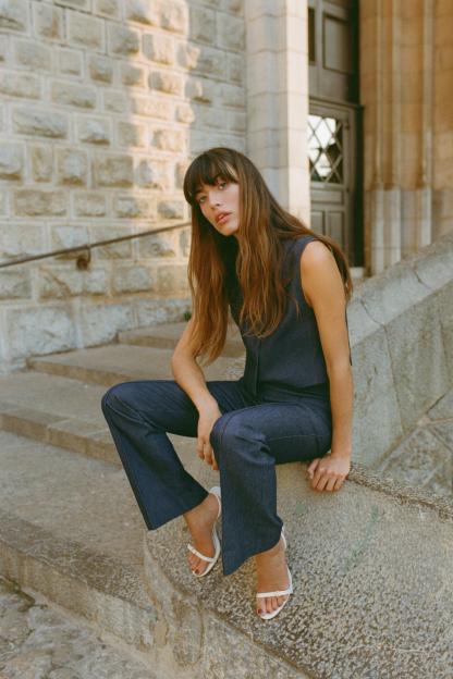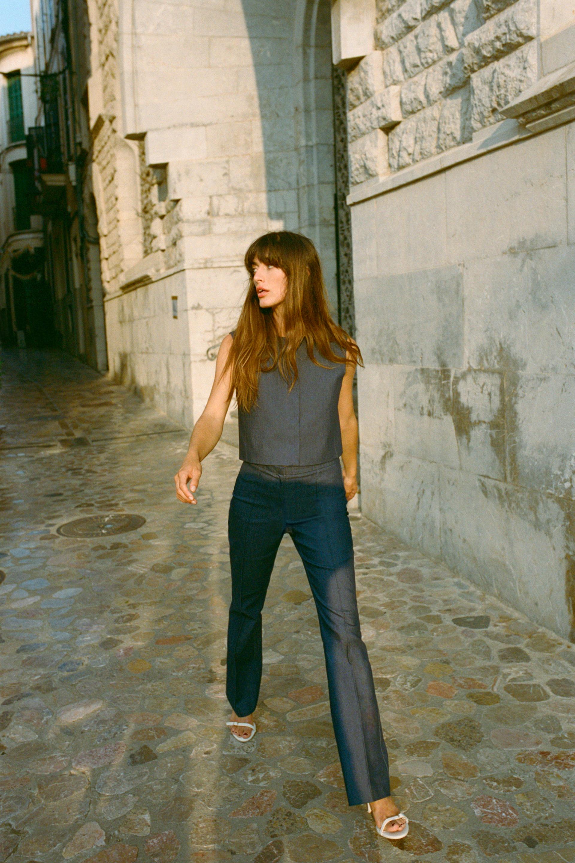 DENIM EFFECT FLARED PANTS