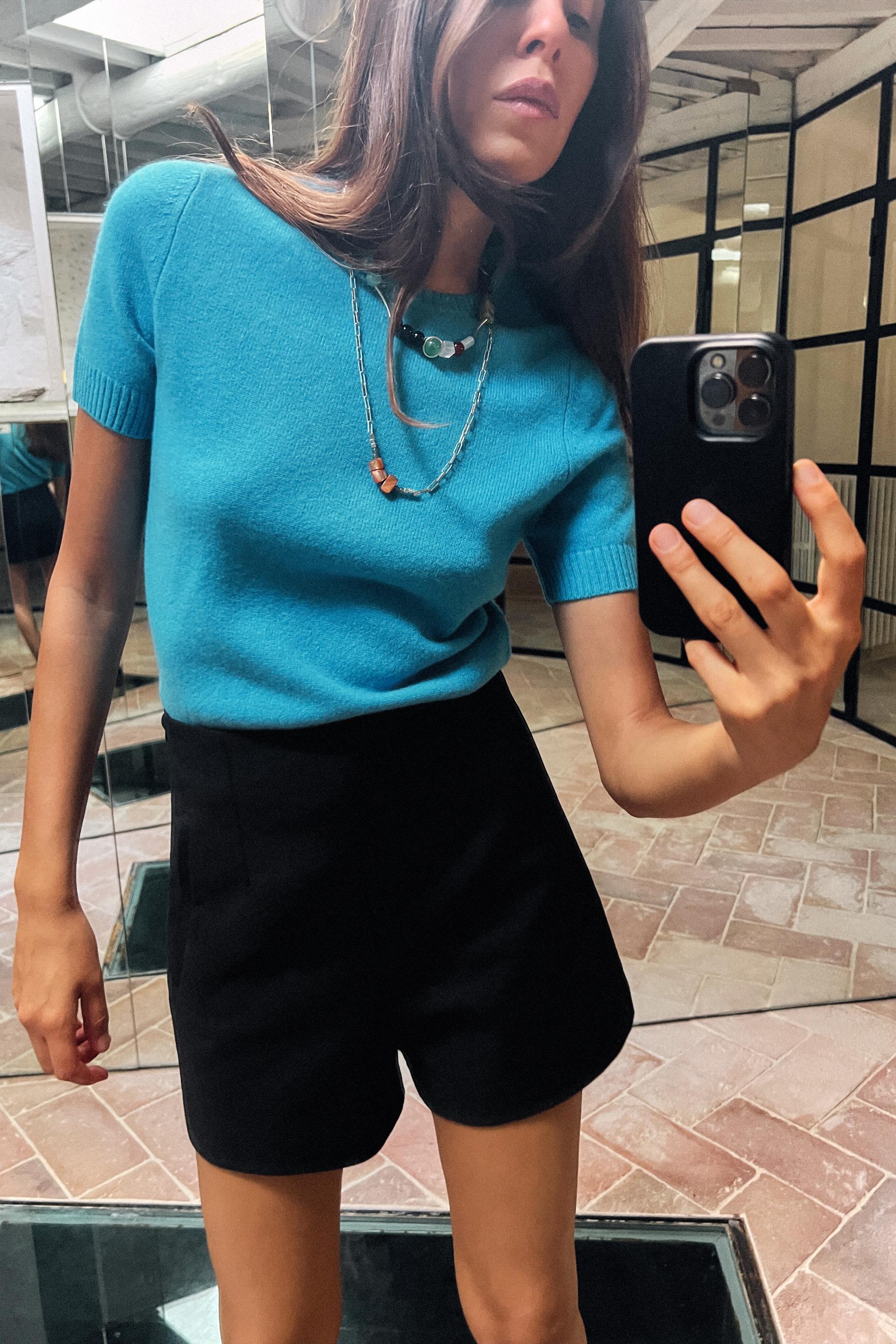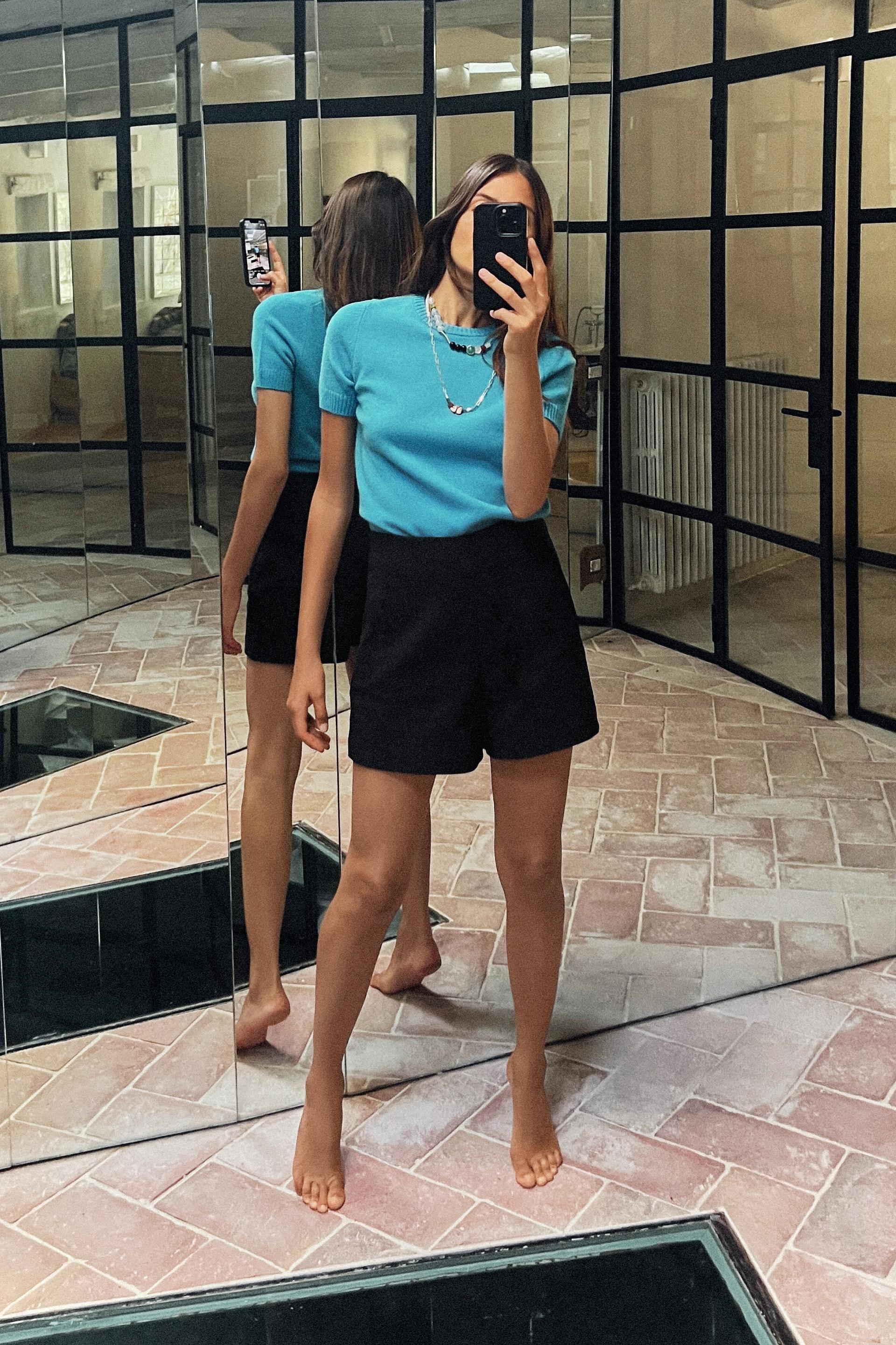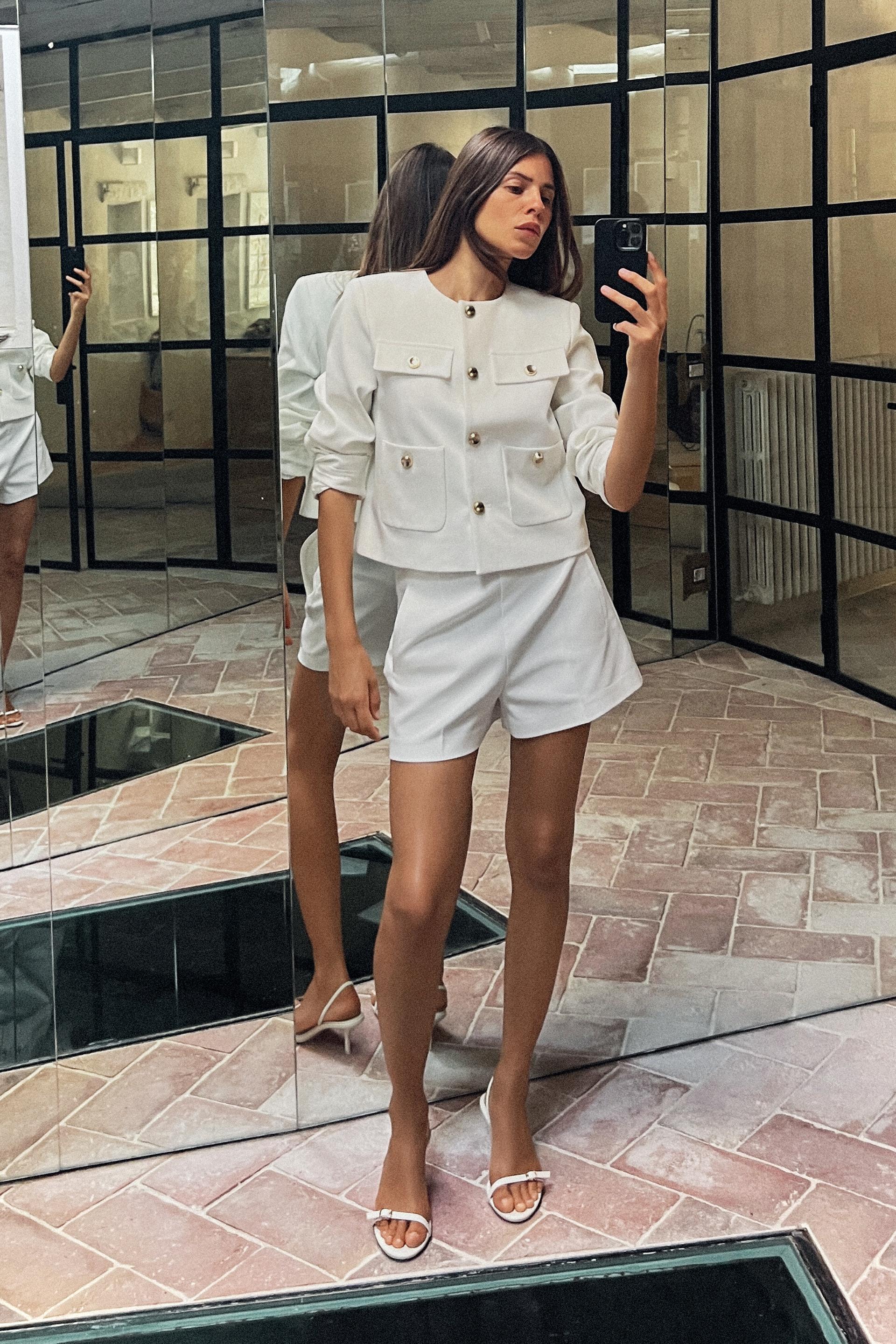DOUBLE FABRIC SHORTS WITH A HIGH WAIST