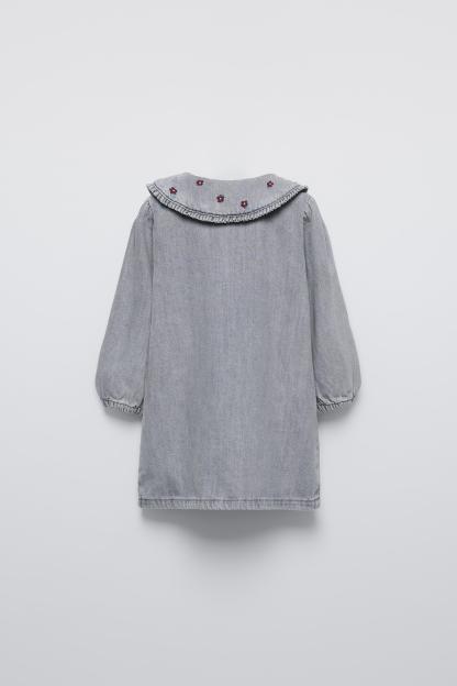 EMBROIDERED COLLAR DENIM DRESS