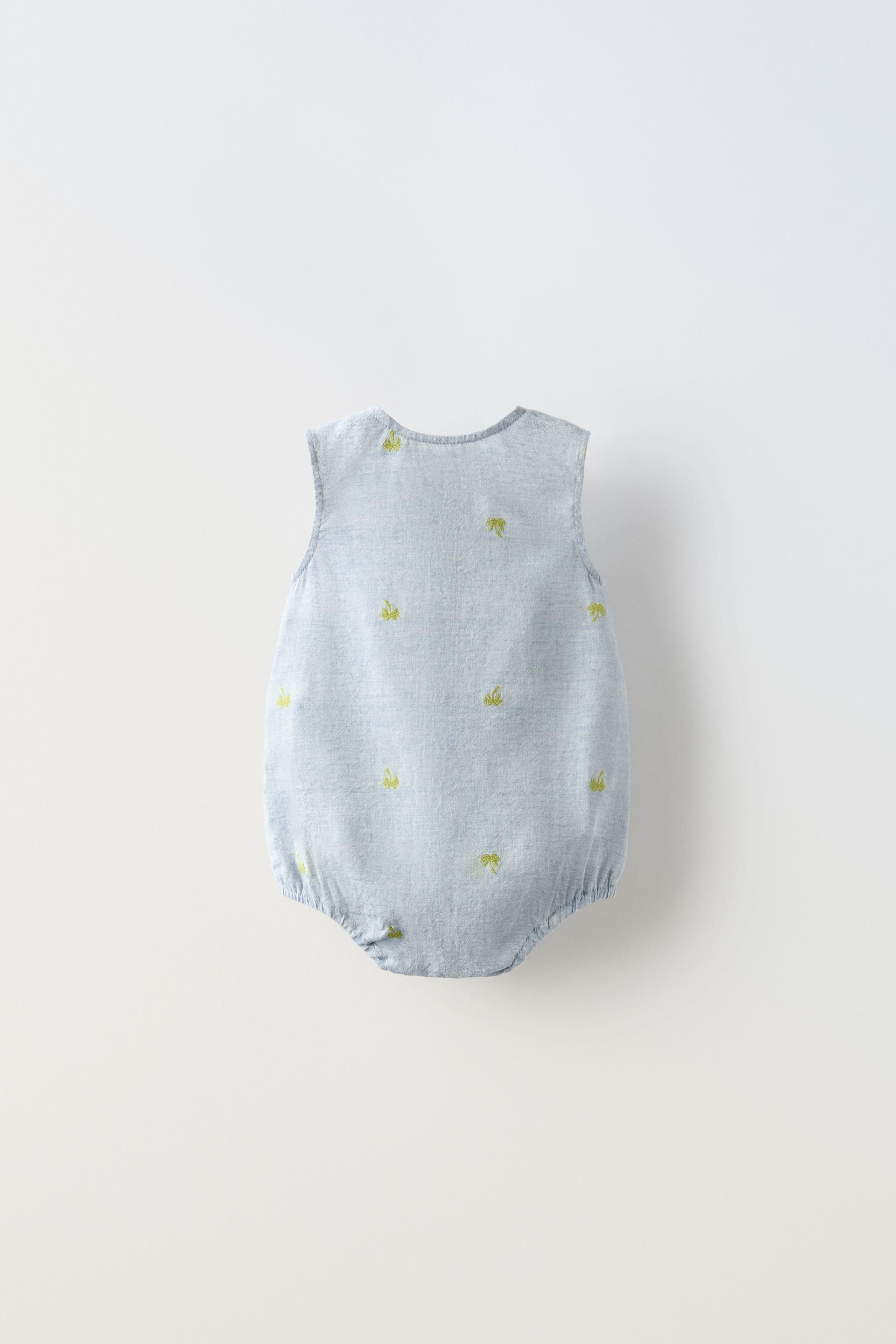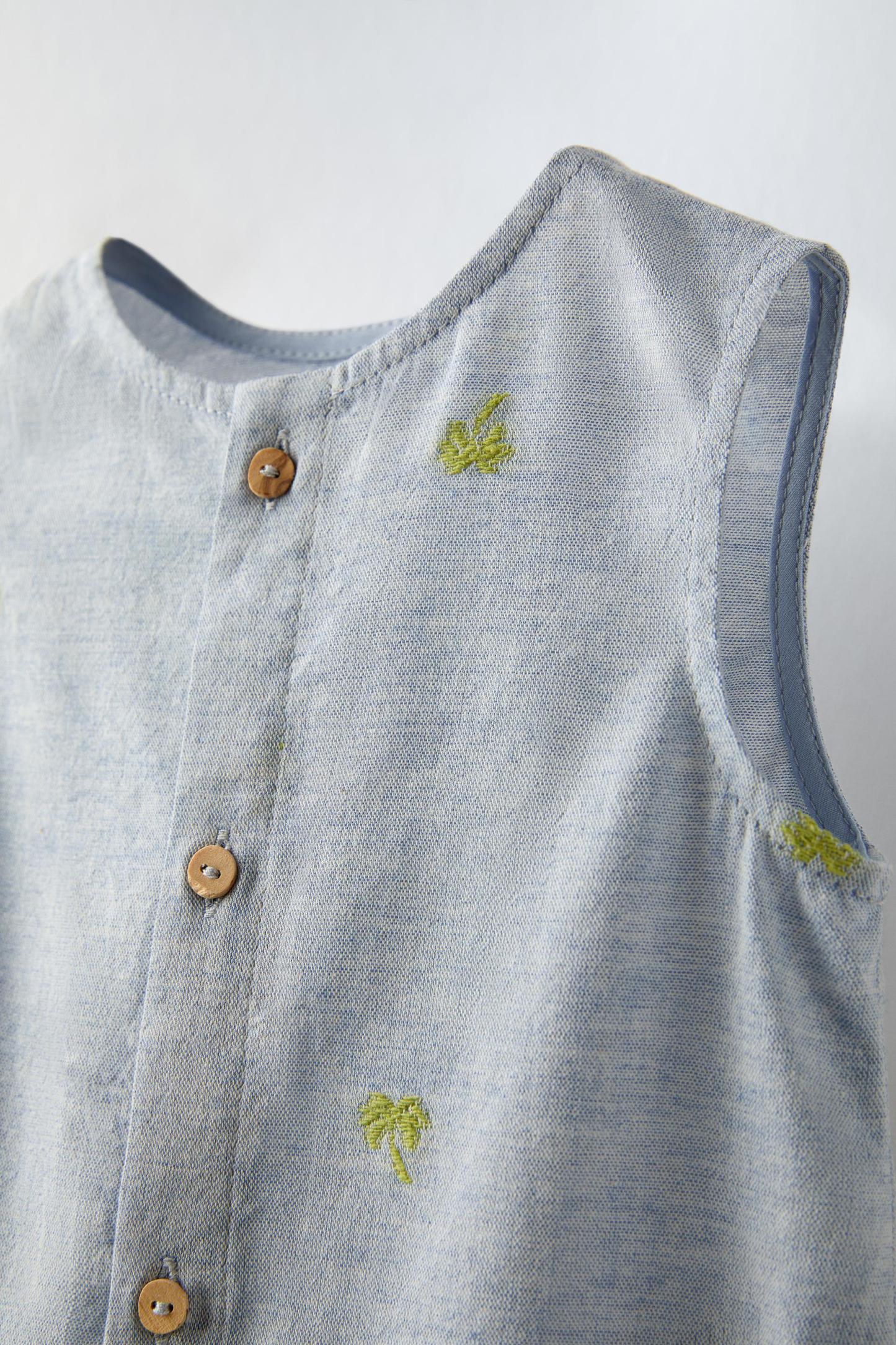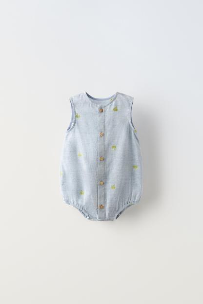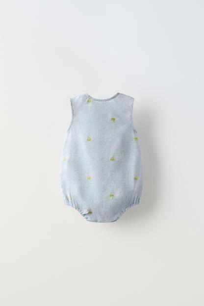 EMBROIDERED PALM TREE ROMPER