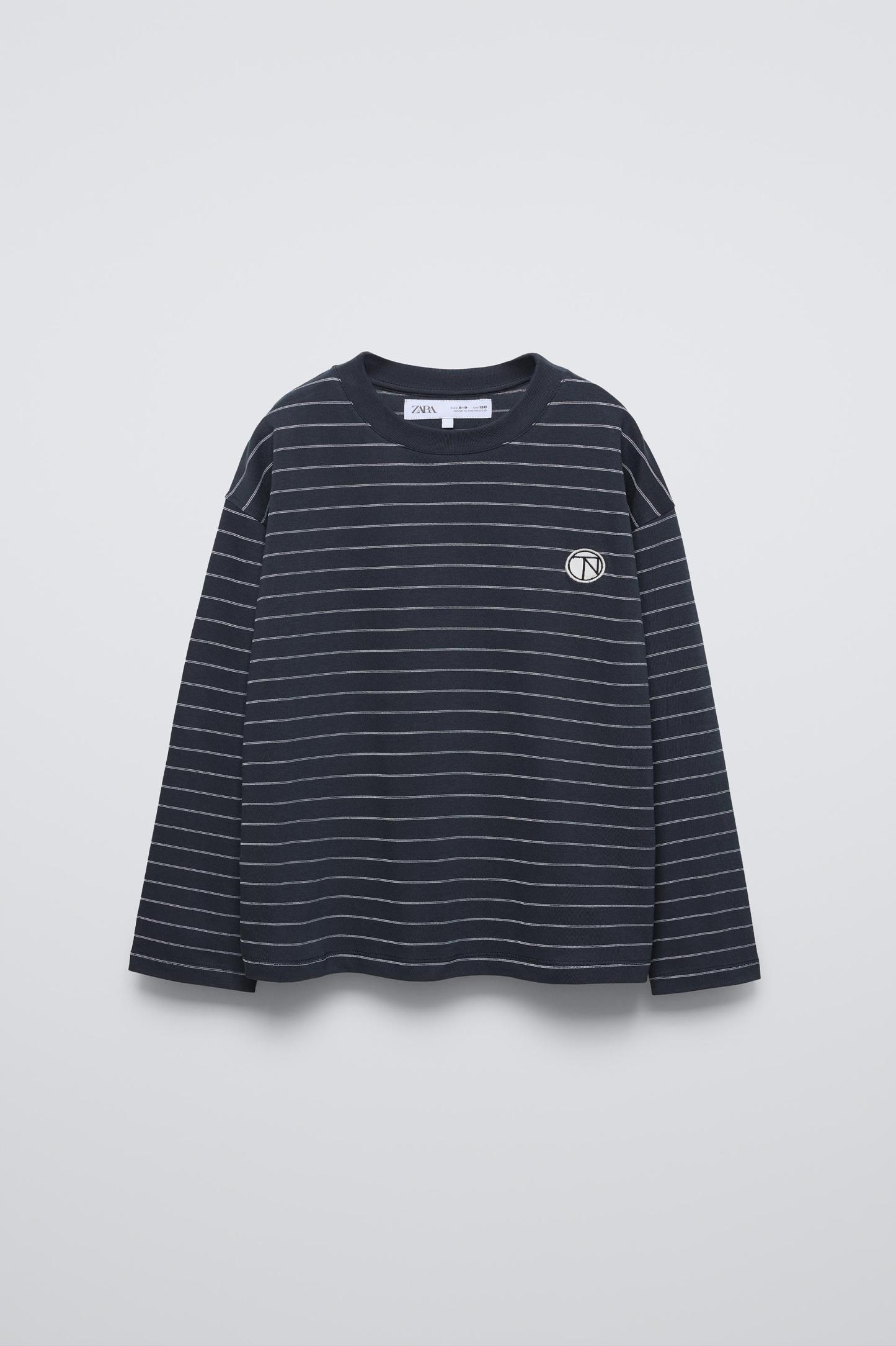 EMBROIDERED PATCH STRIPED T-SHIRT