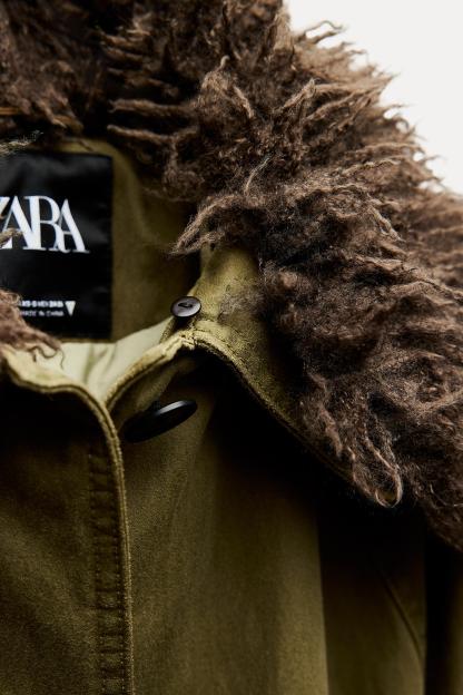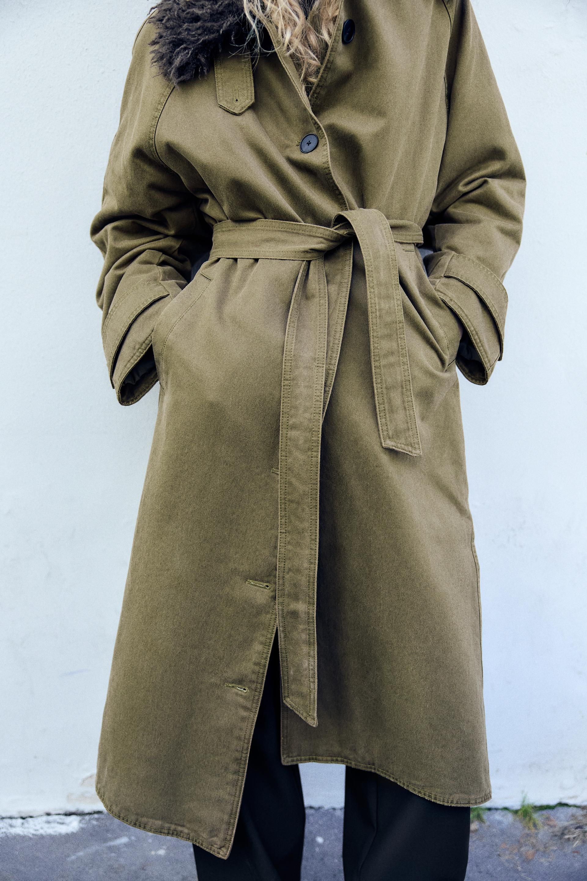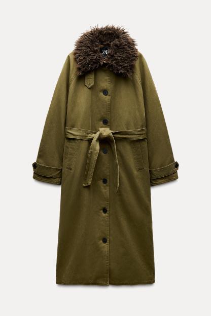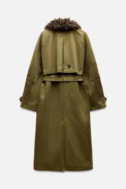 FAUX FUR COLLAR WAXED EFFECT TRENCH