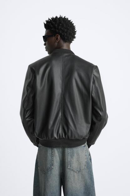 FAUX LEATHER BOMBER JACKET