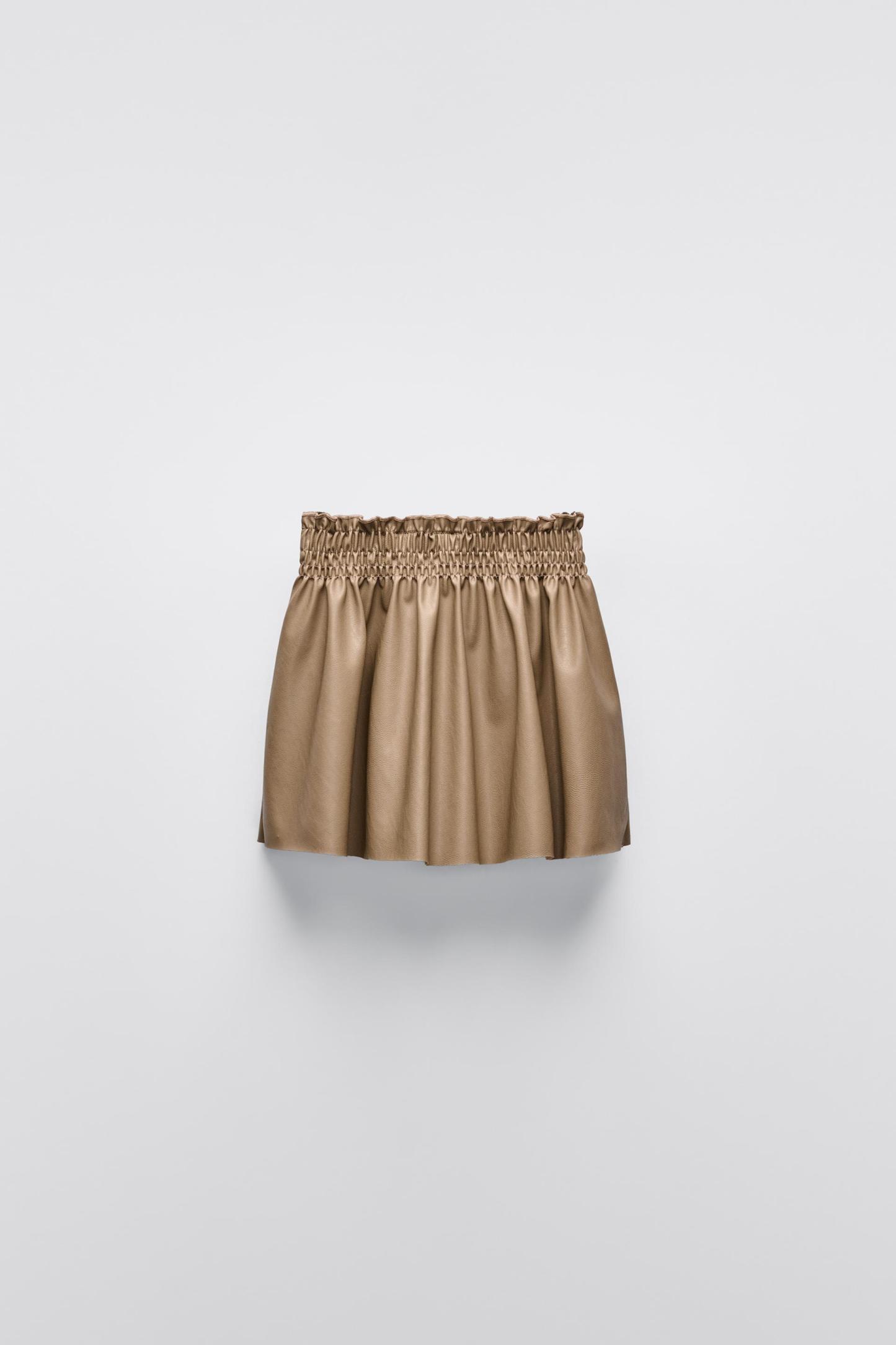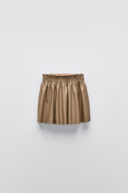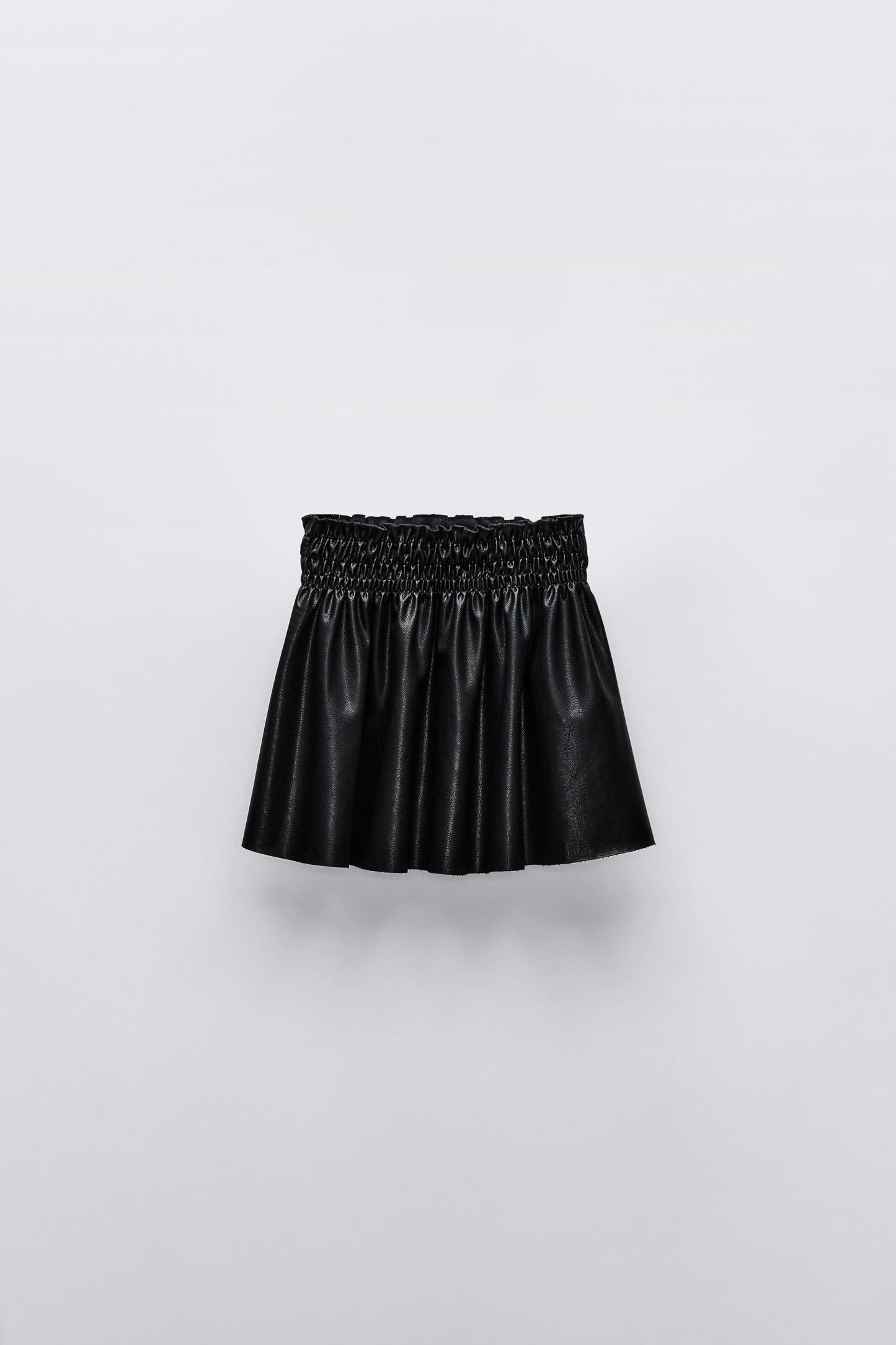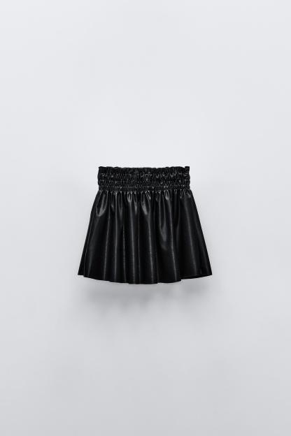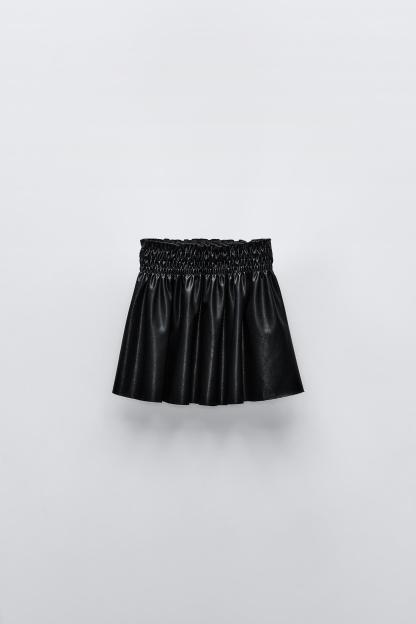 FAUX LEATHER SMOCKING SKIRT