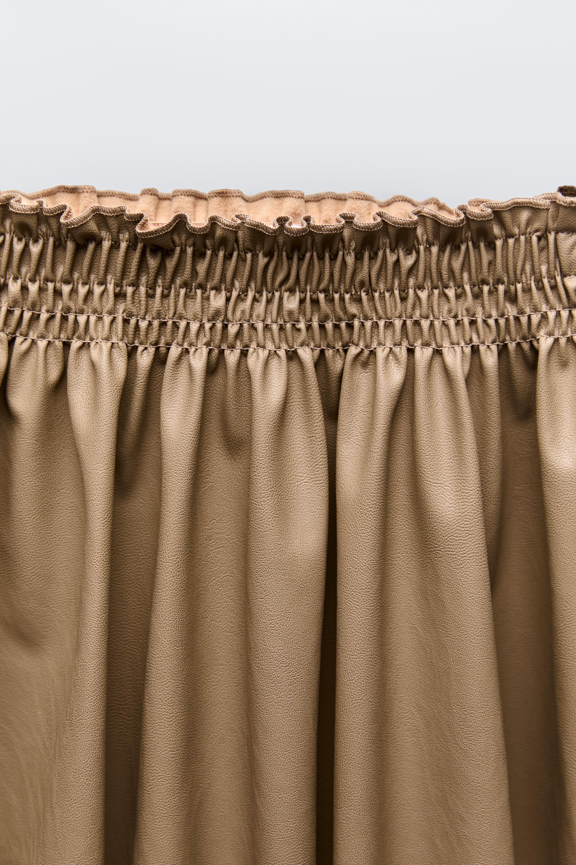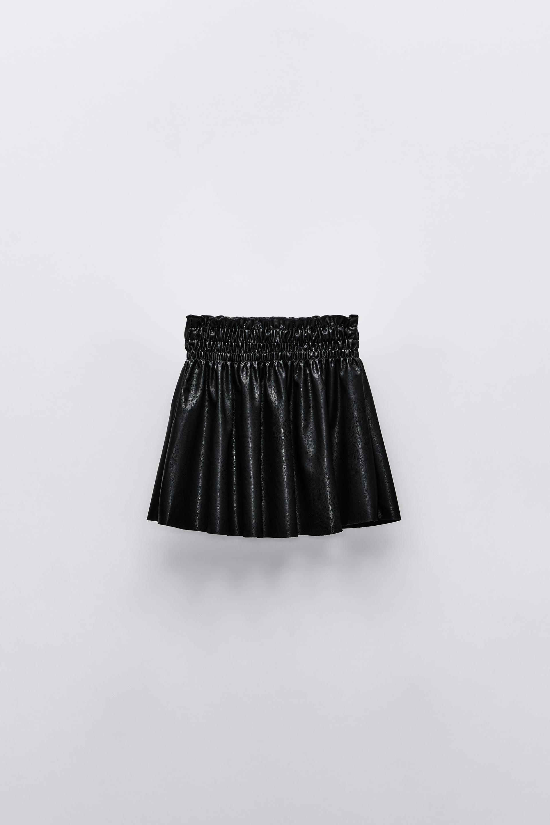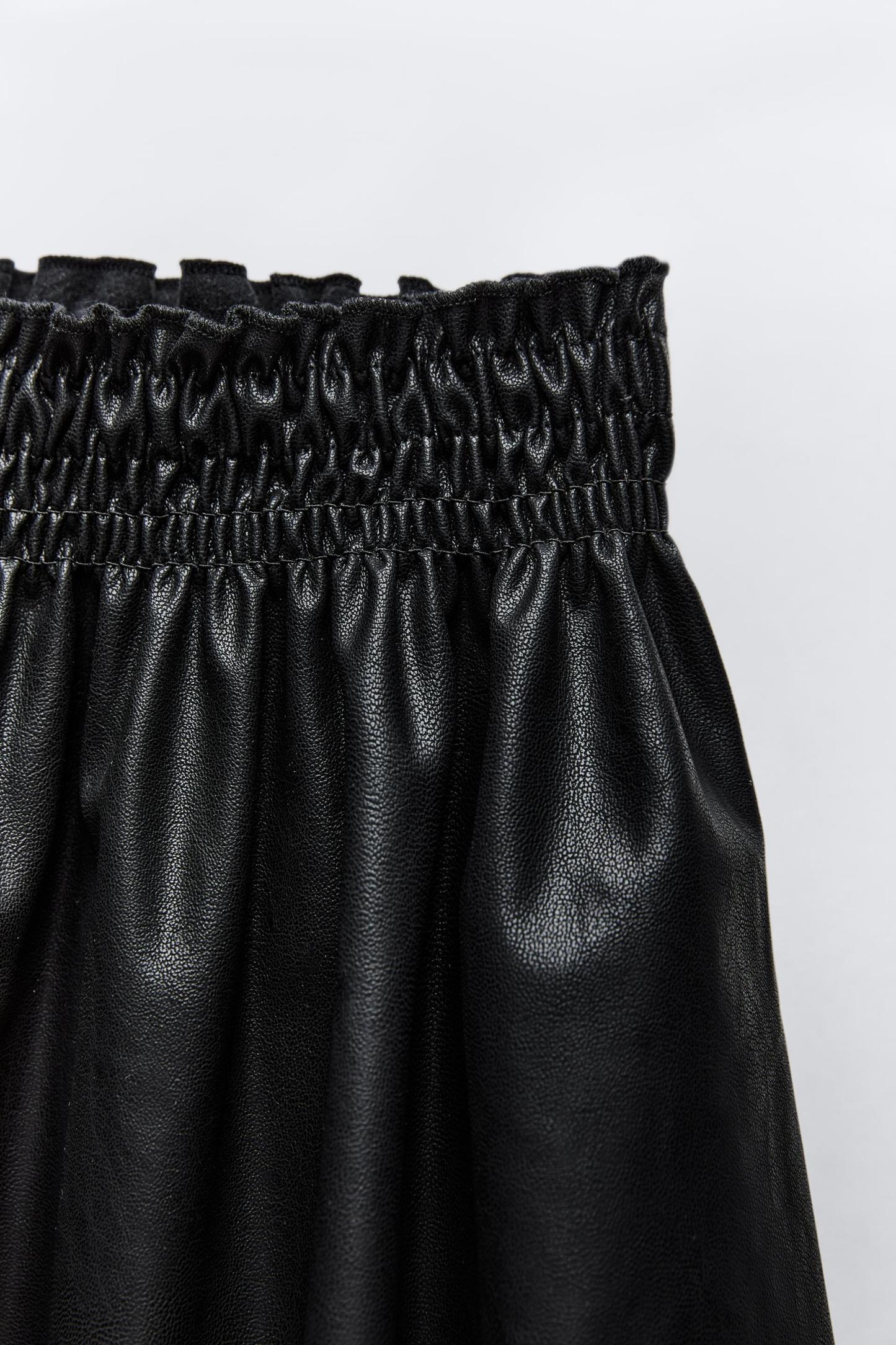 FAUX LEATHER SMOCKING SKIRT