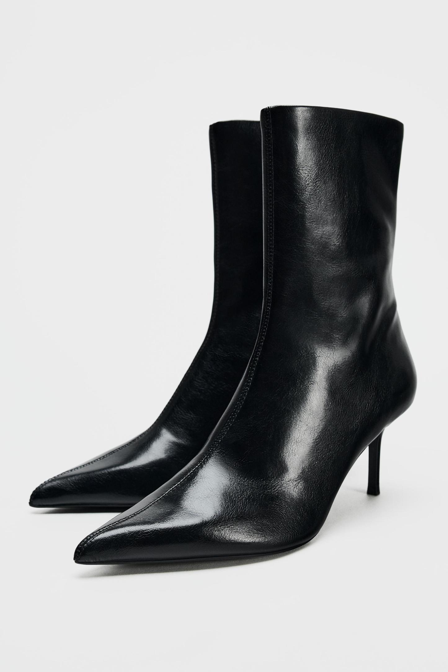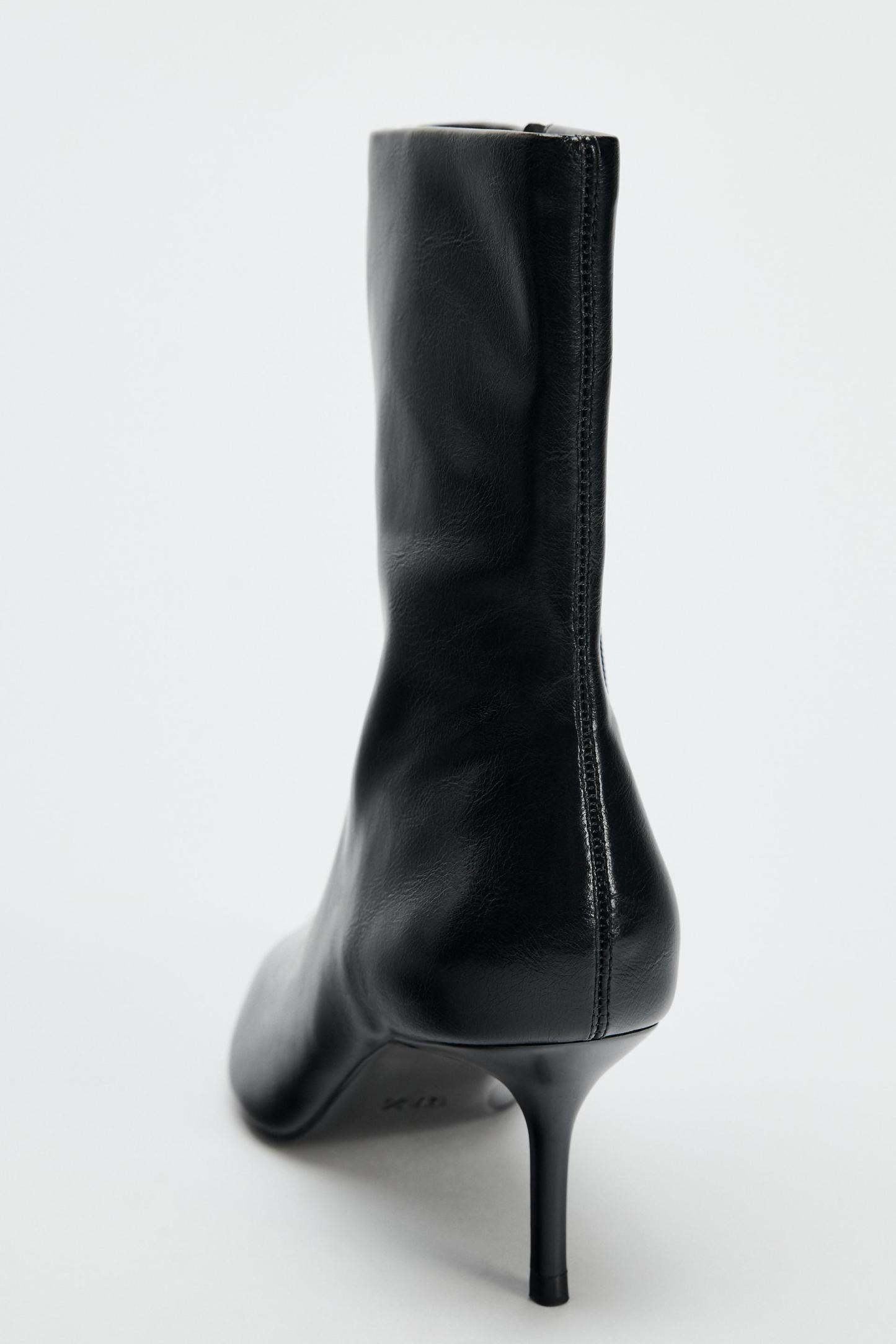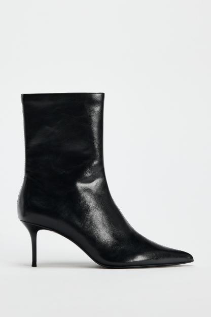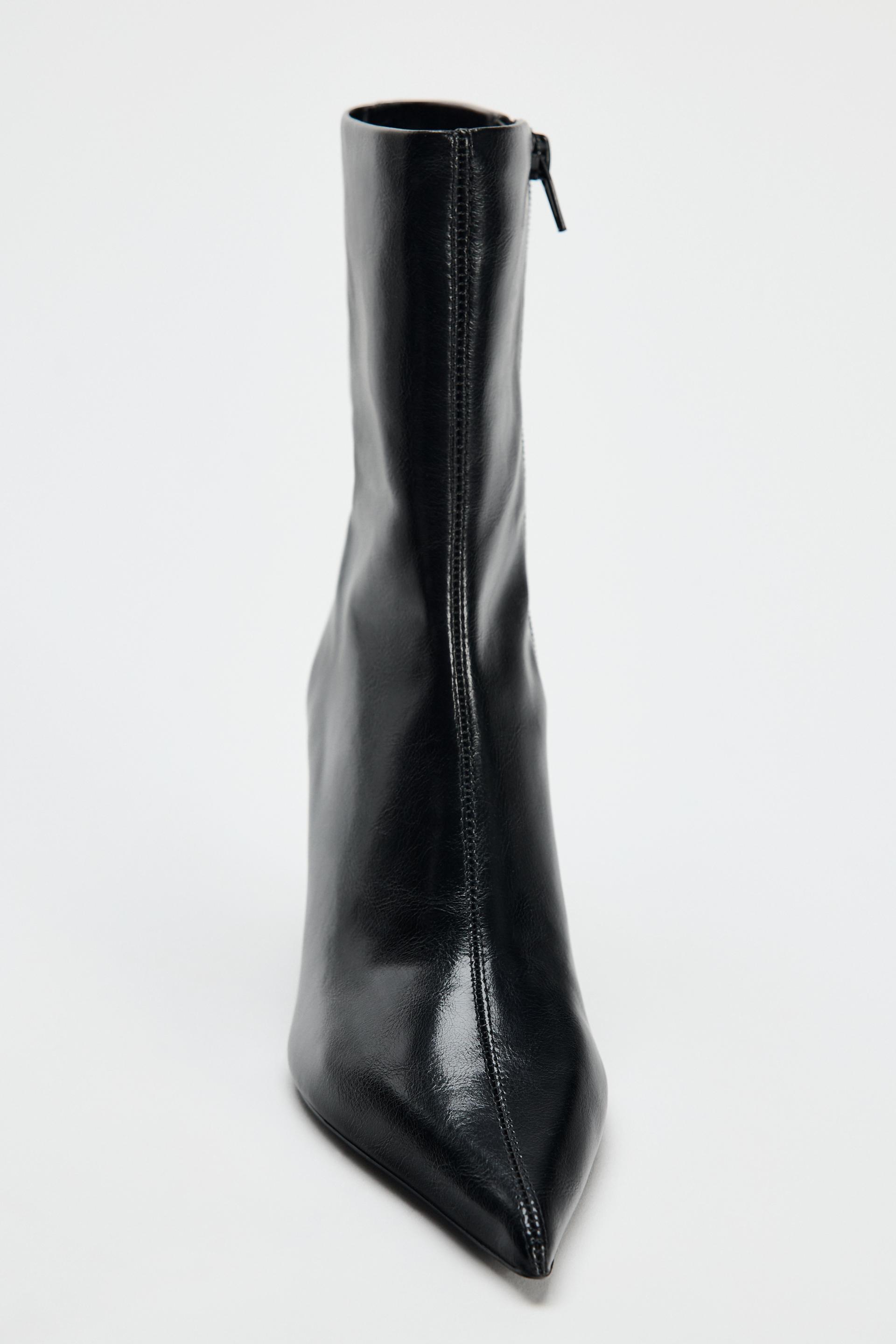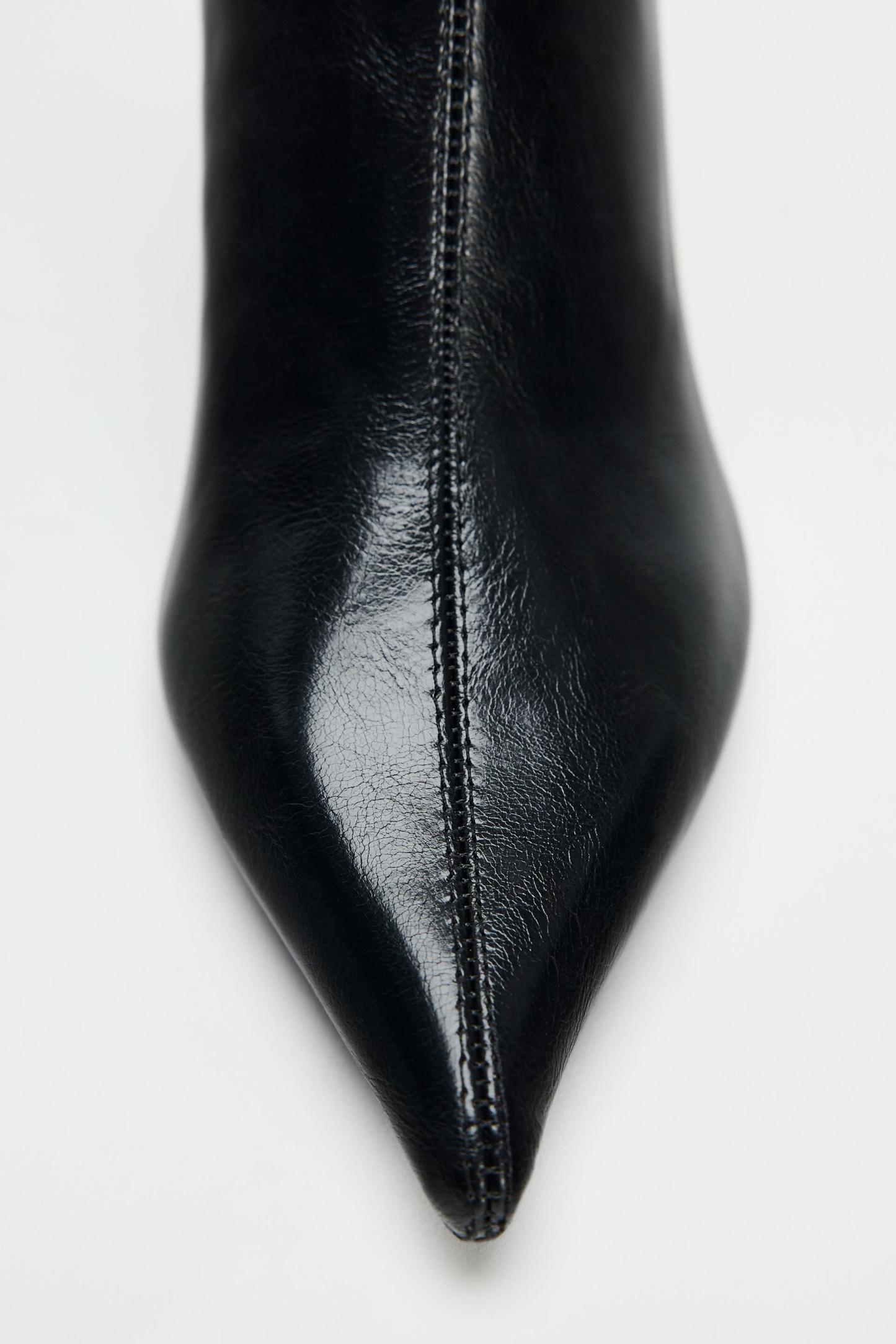 FAUX PATENT LEATHER STILETTO HEELED ANKLE BOOTS
