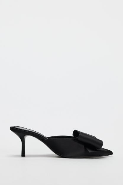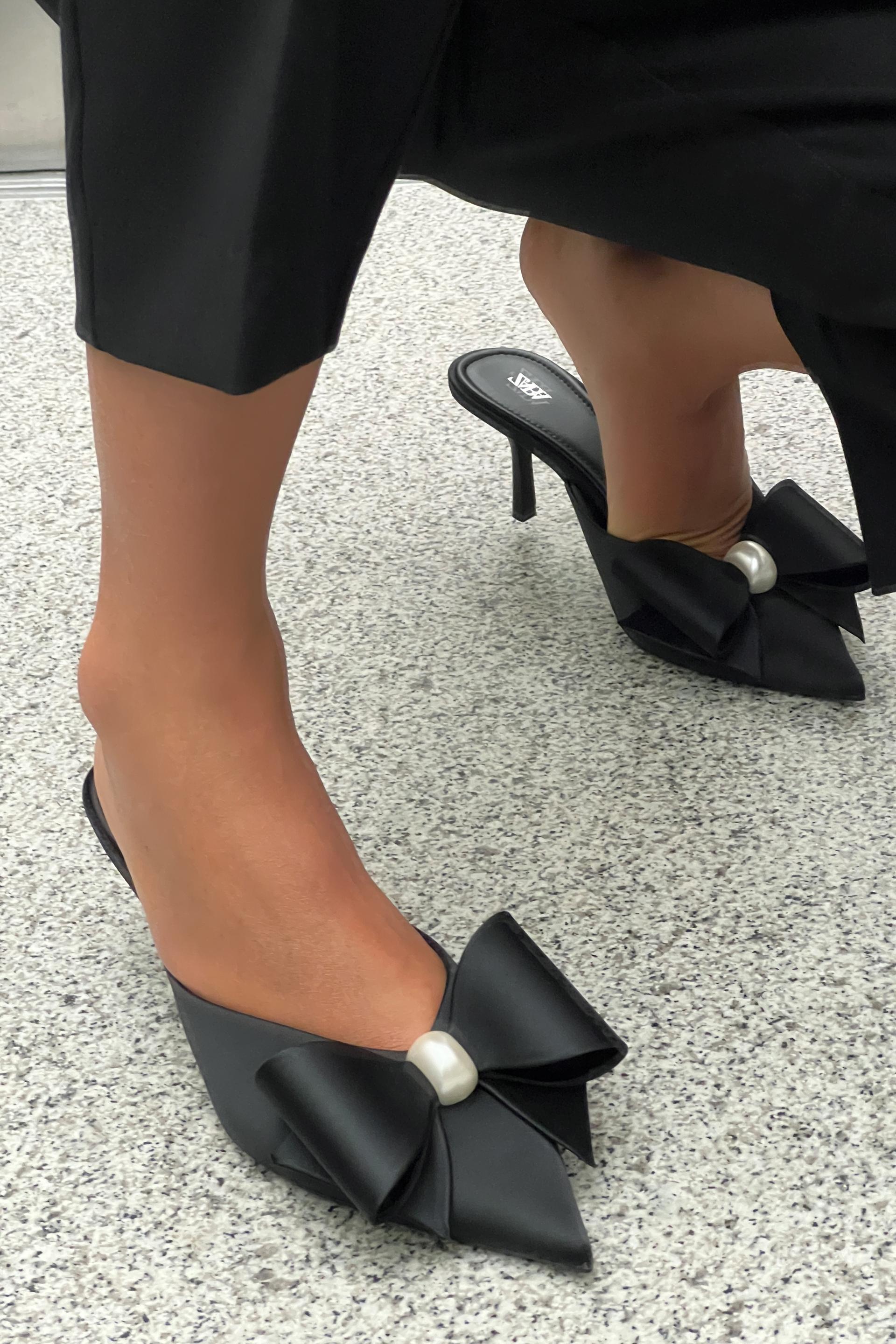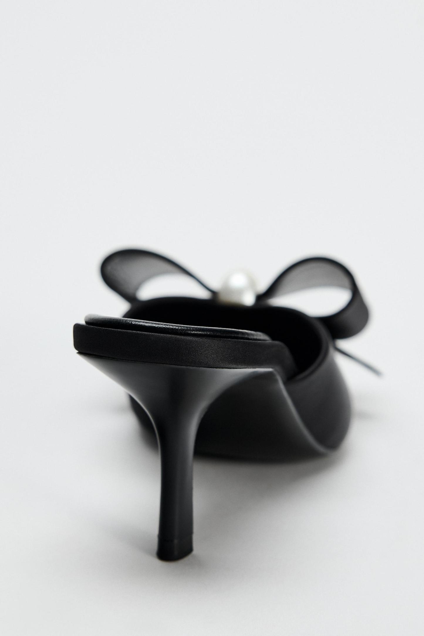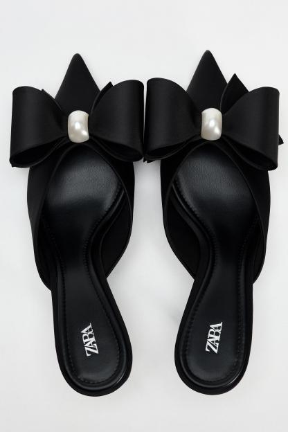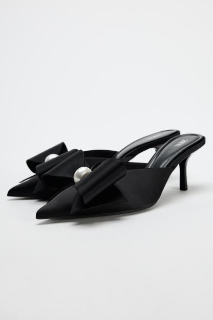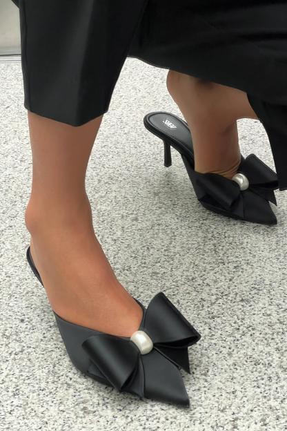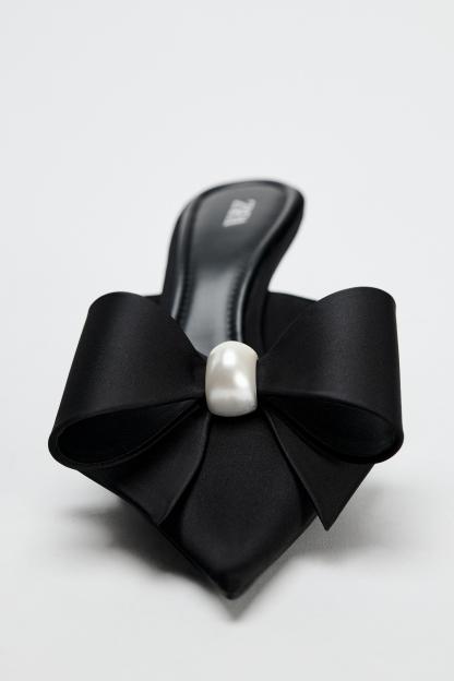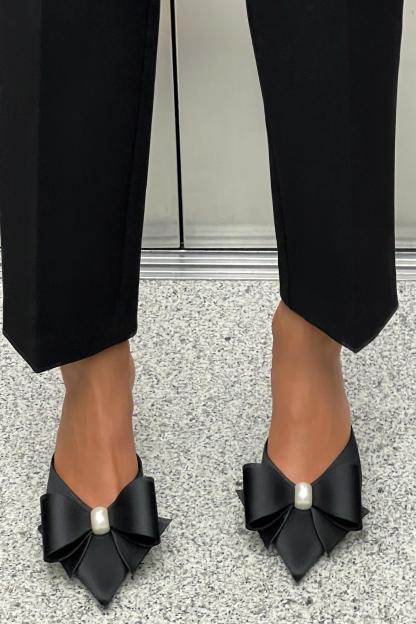FAUX PEARL BOW HEELED MULES