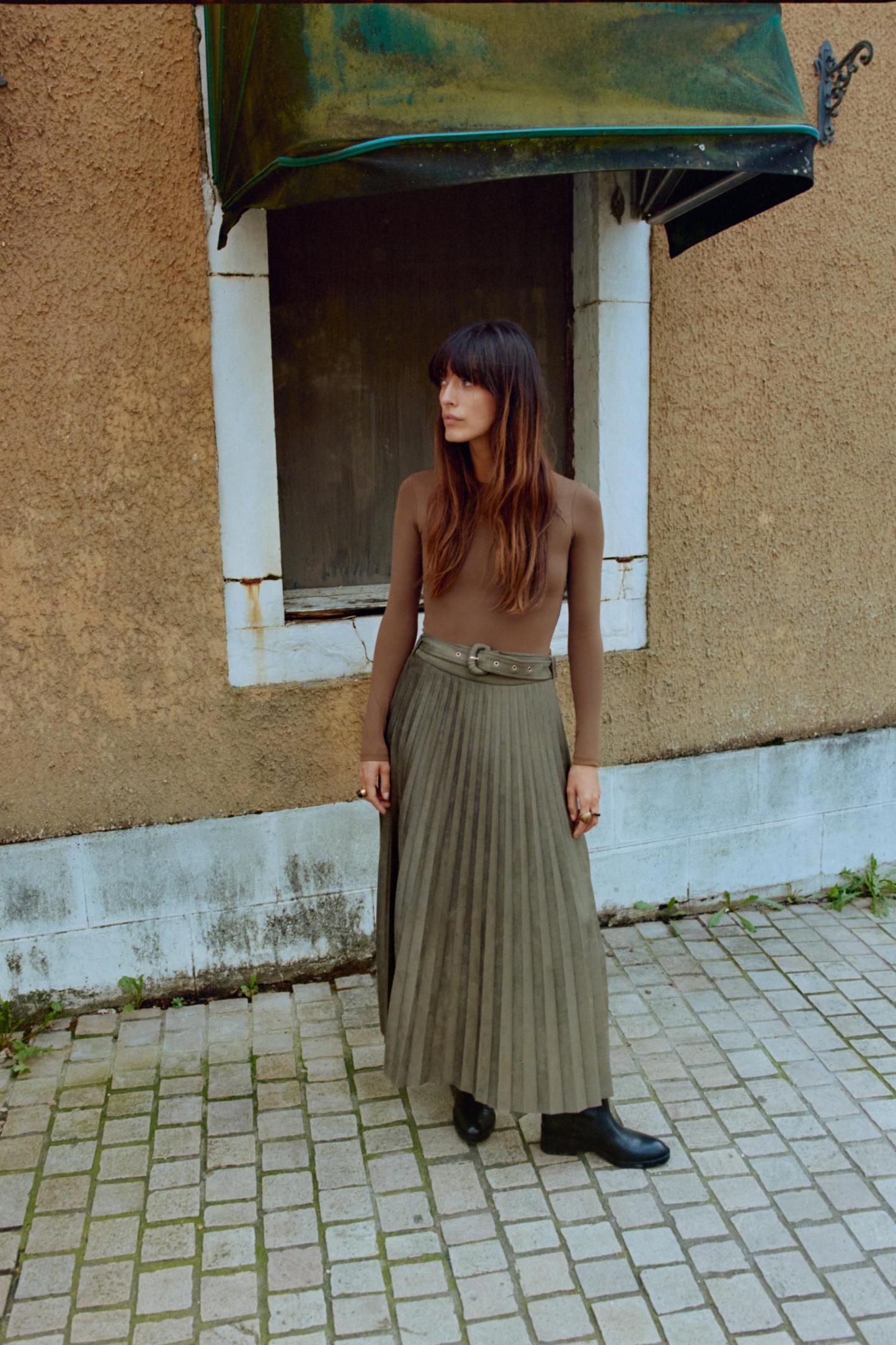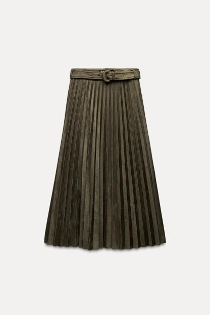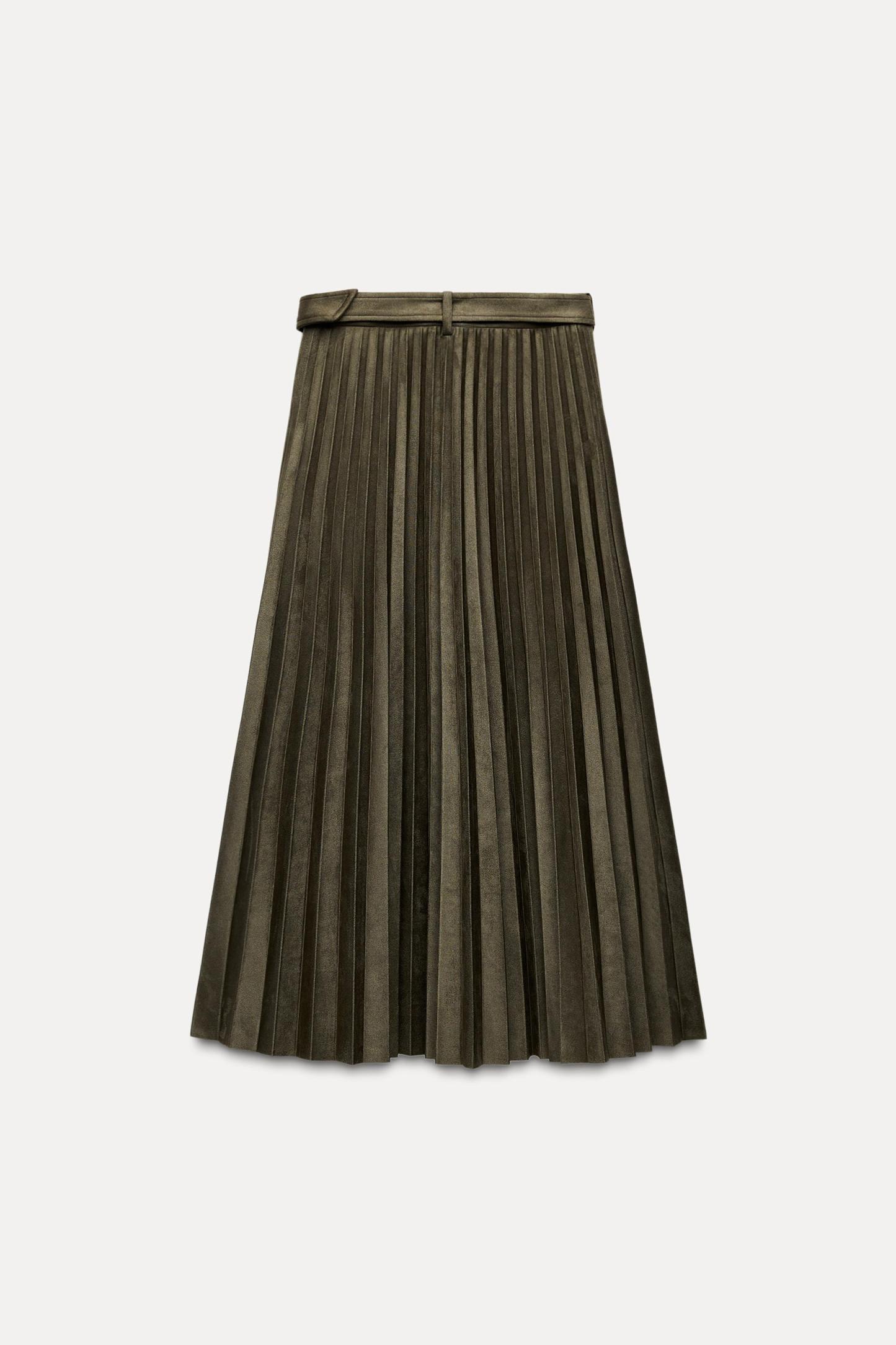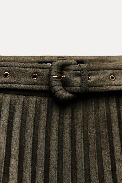 FAUX SUEDE PLEATED MIDI SKIRT