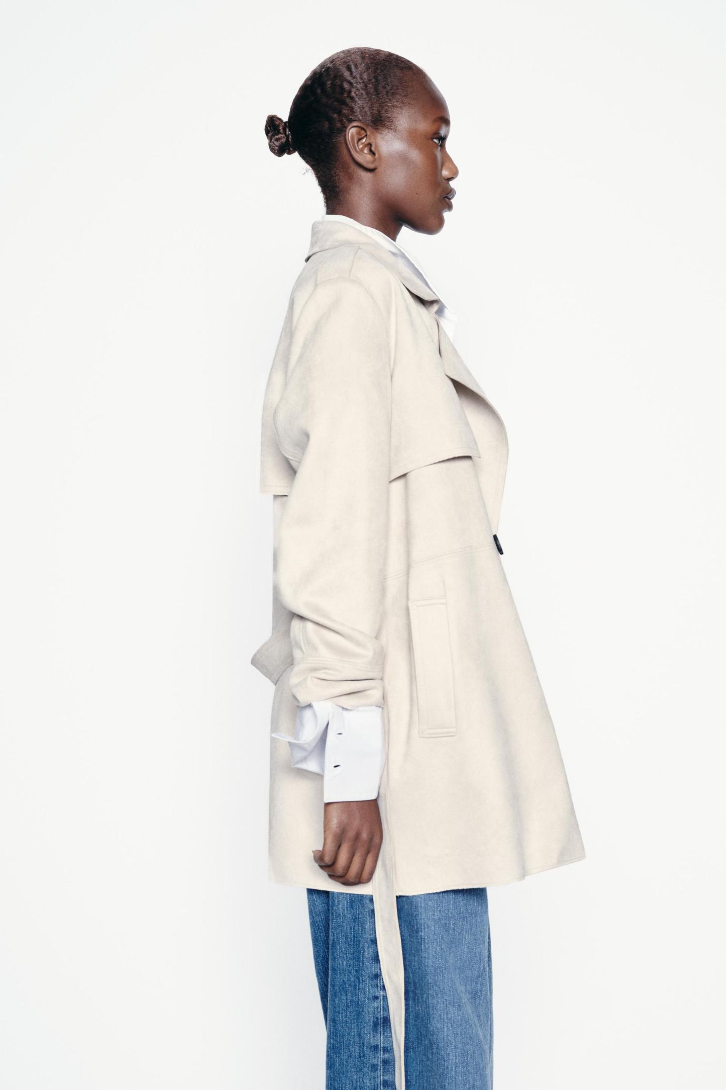 FAUX SUEDE TRENCH COAT