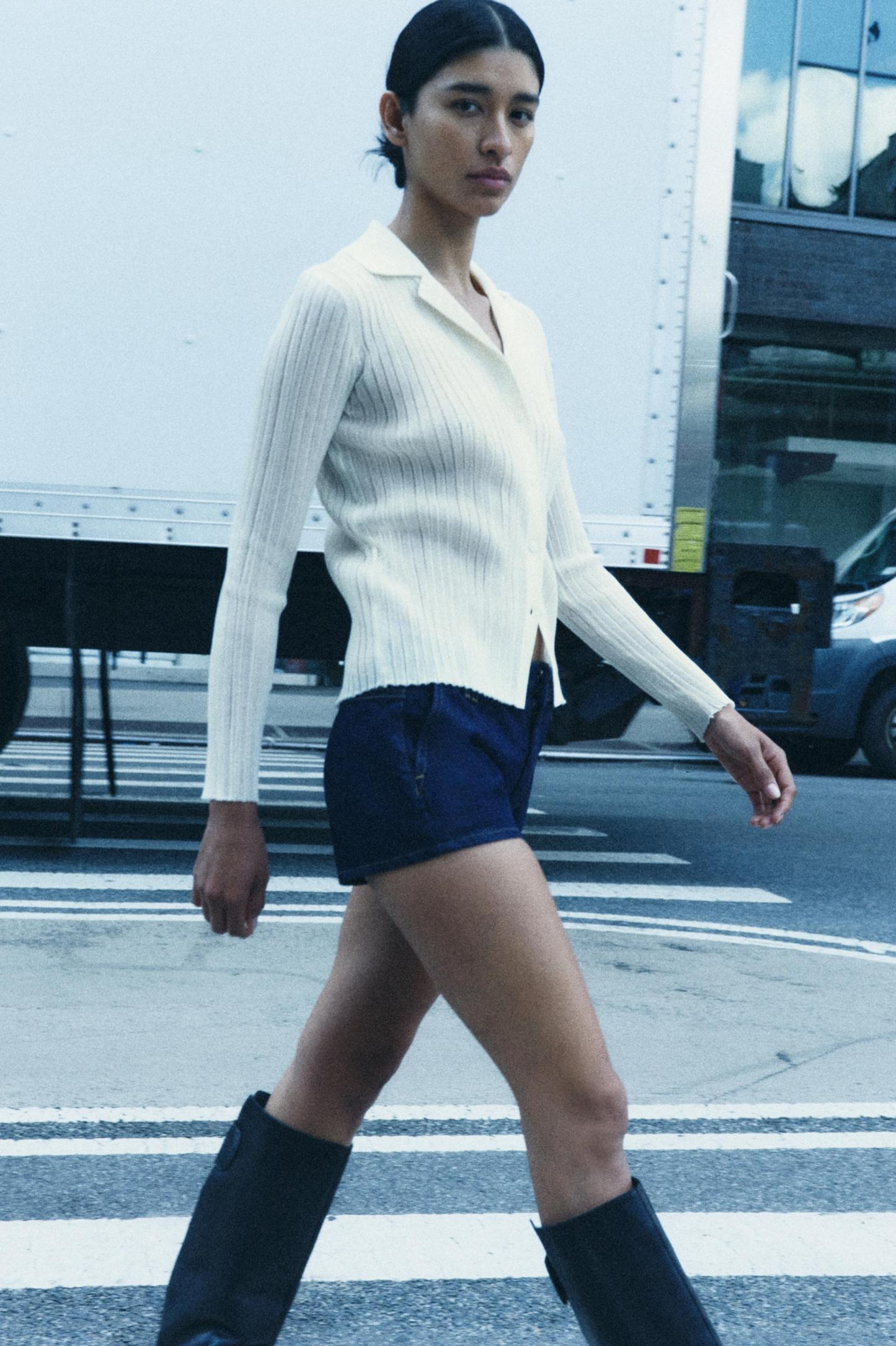 FINE RIBBED KNIT CARDIGAN