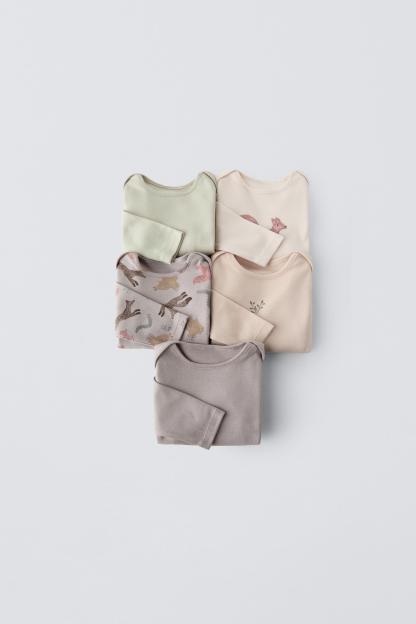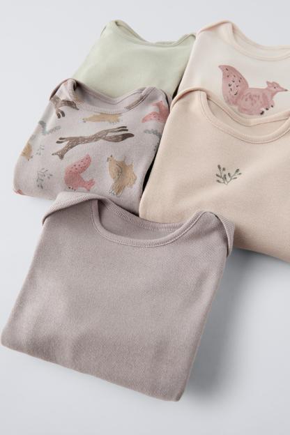 FIVE-PACK OF ANIMALS PRINT BODYSUITS