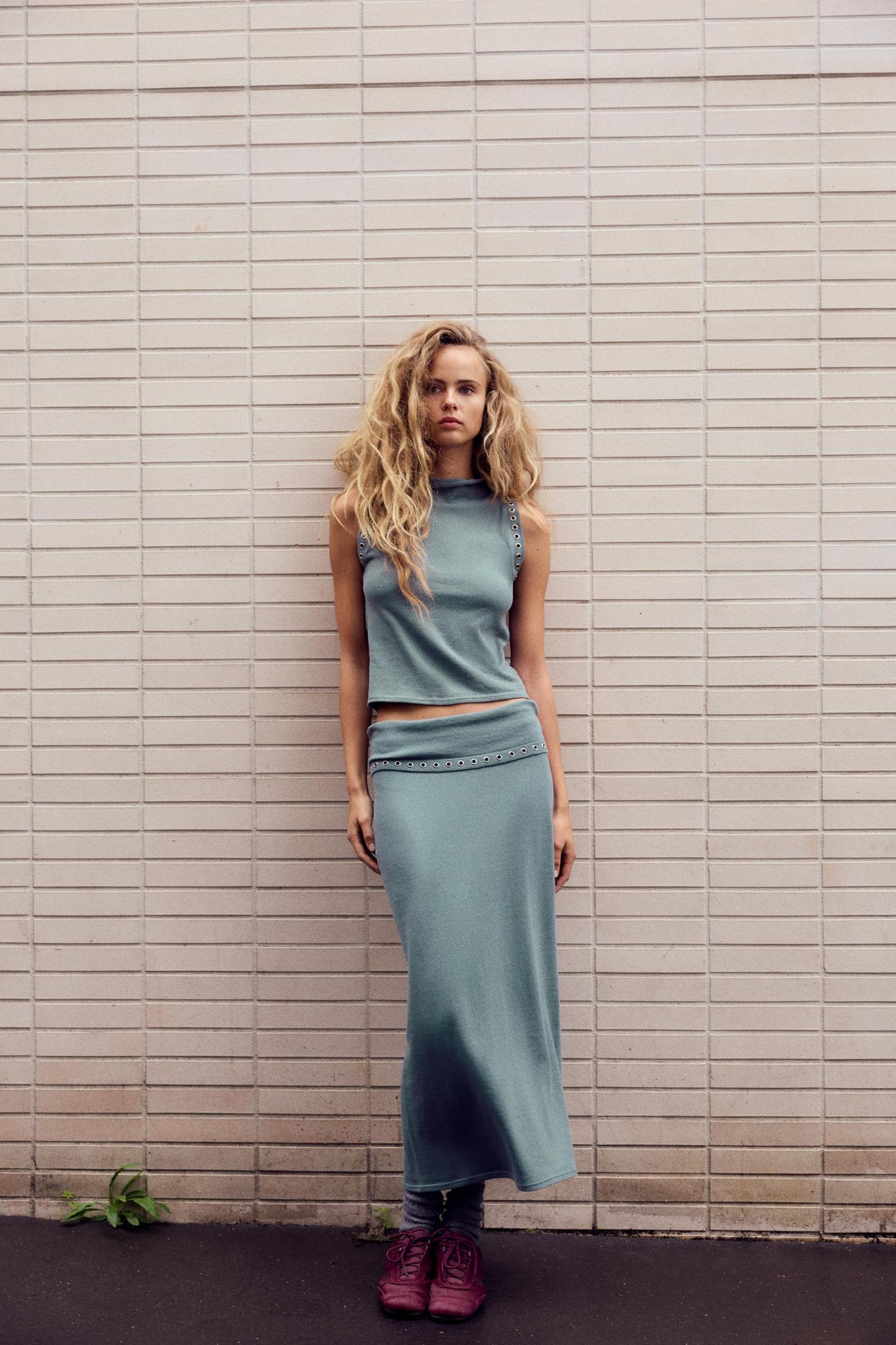 HALTER TOP WITH METAL EYELETS