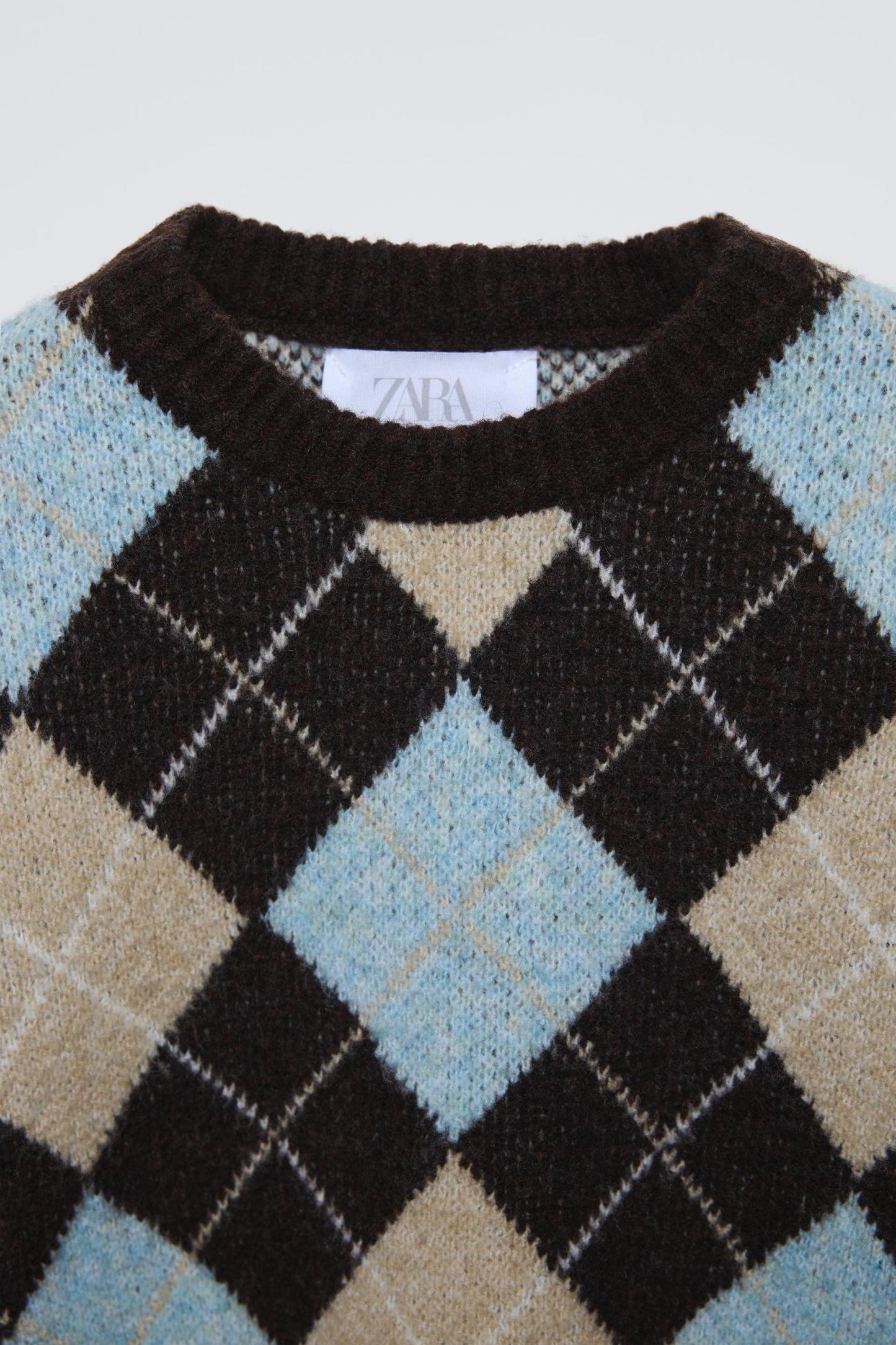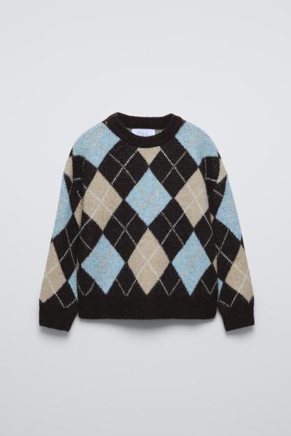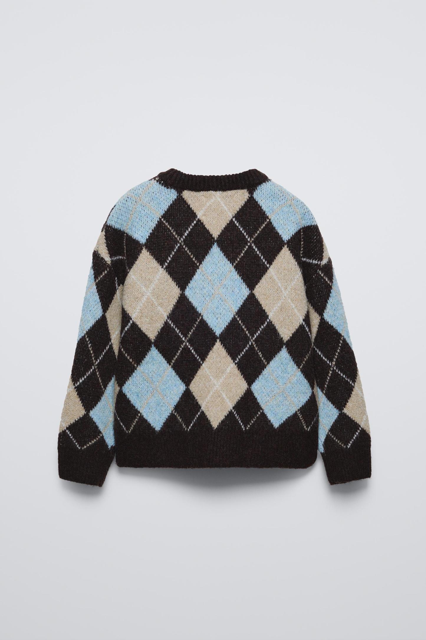 KNIT ARGYLE SWEATER