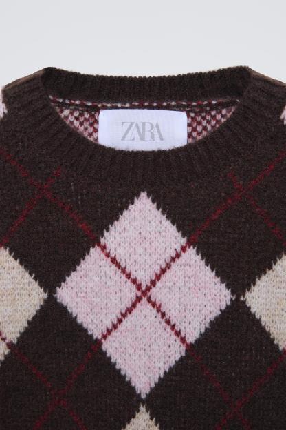 KNIT ARGYLE SWEATER