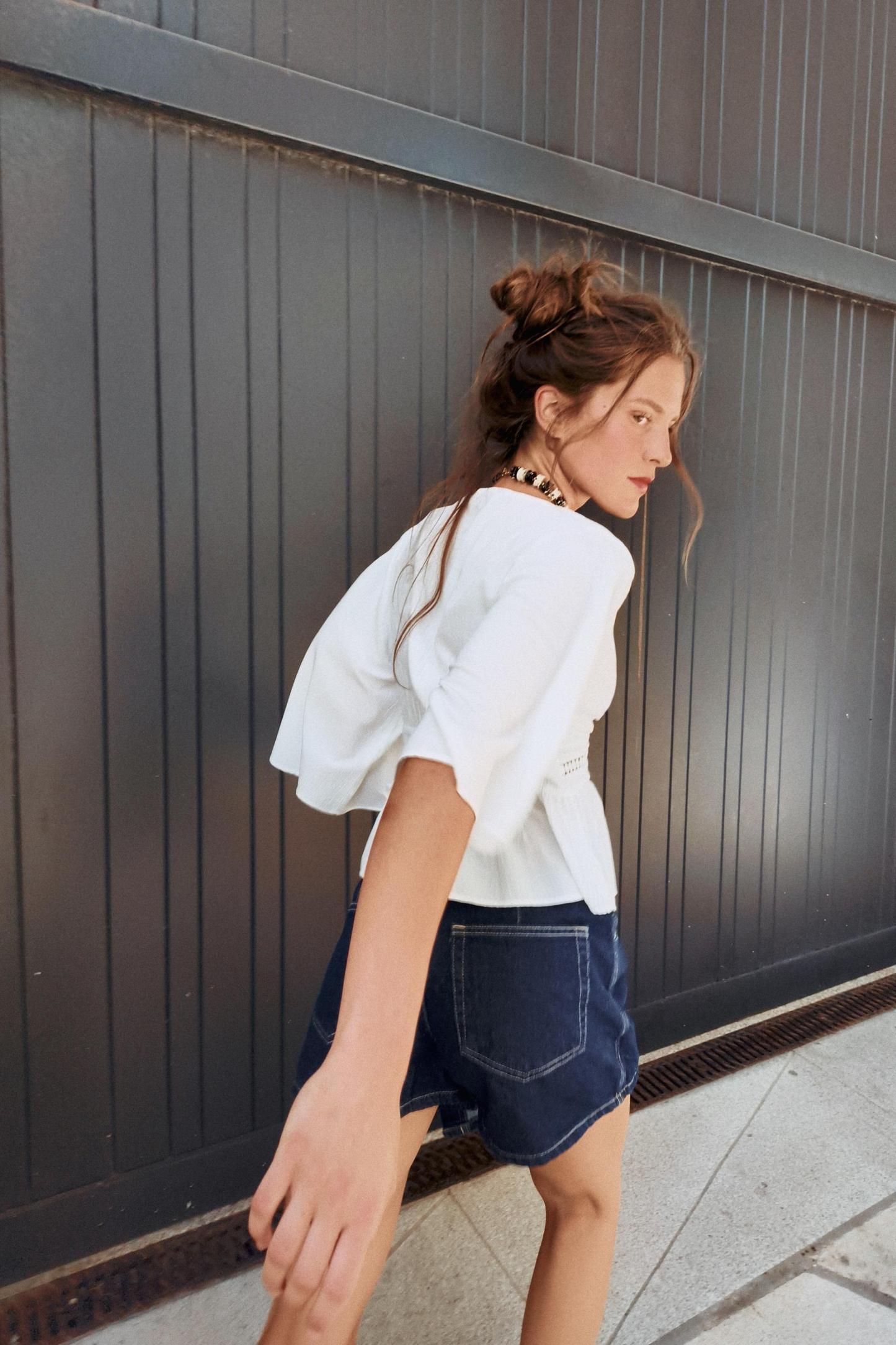 LACE INSERT SHORT BLOUSE