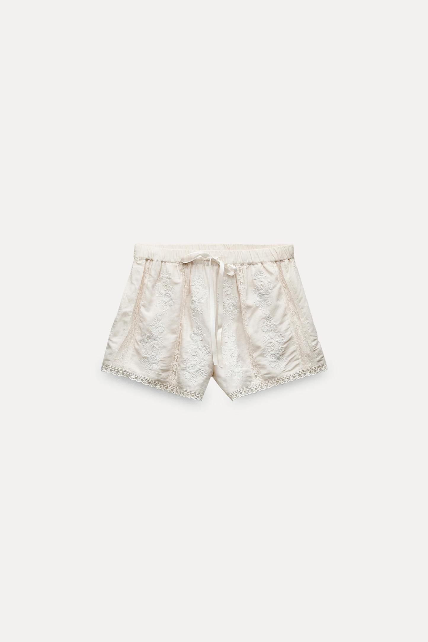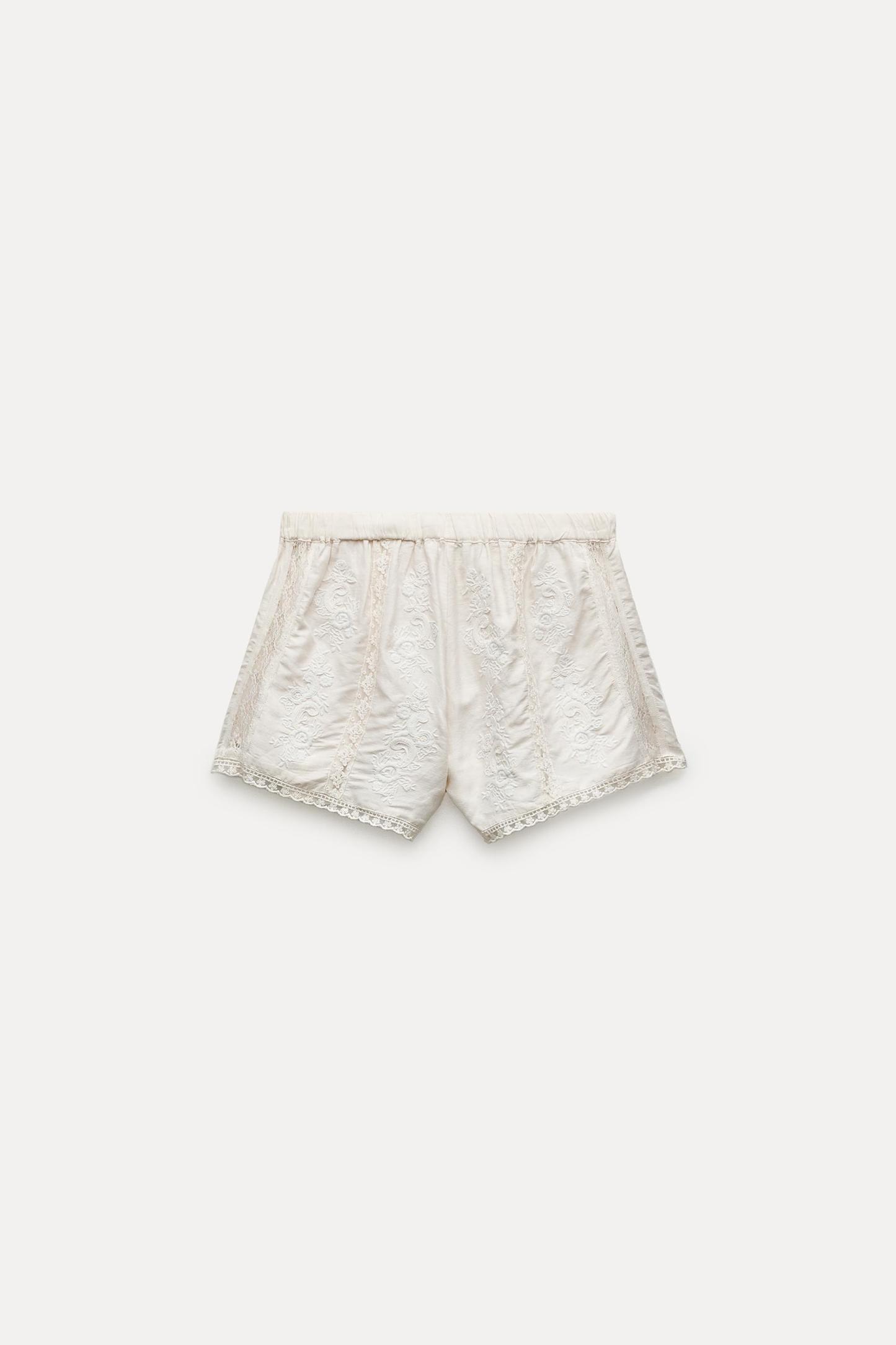 LINEN BLEND EMBROIDERED SHORTS