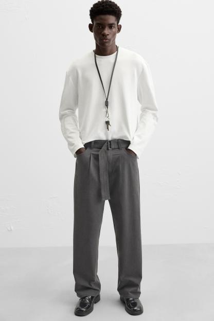 PANTS WITH BELT AND PLEATS