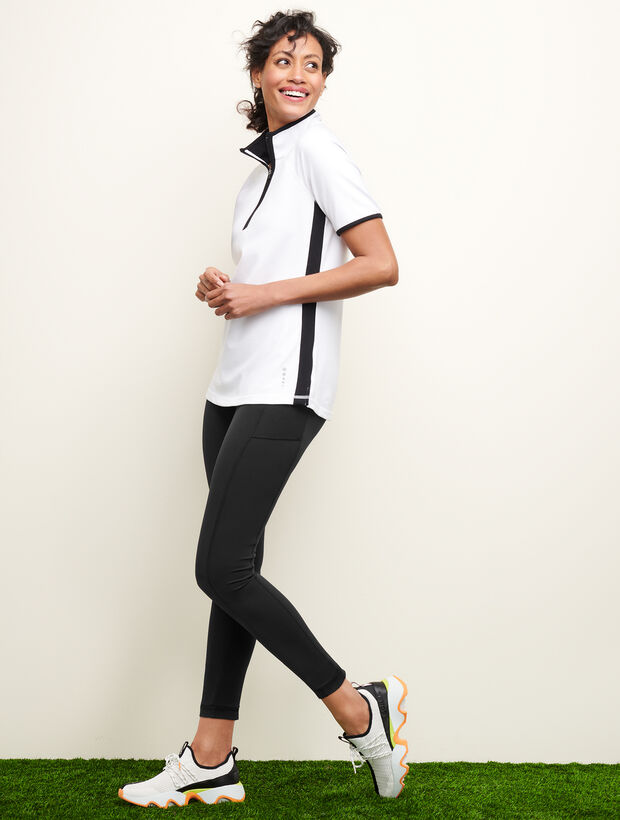 - Front angled slip, Back zip pockets