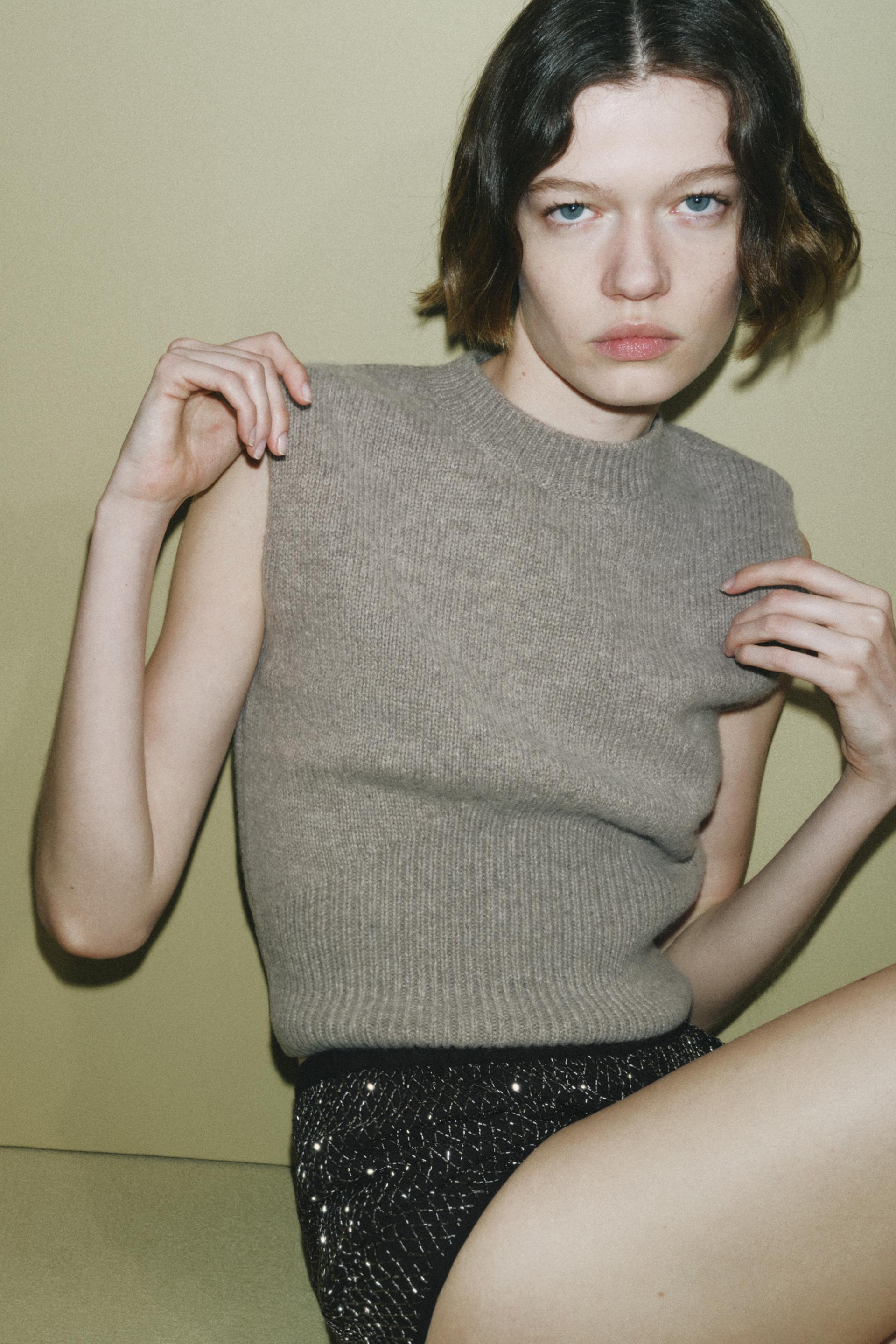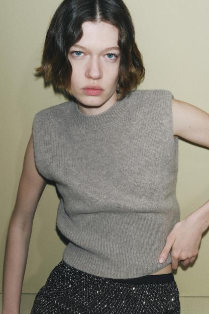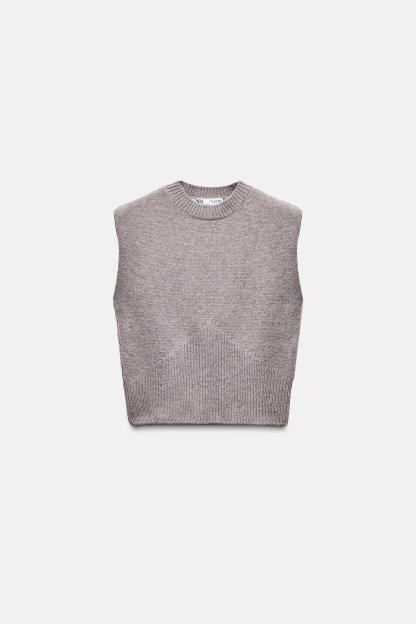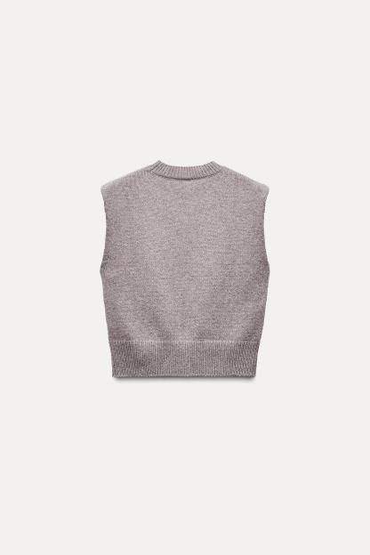 PLAIN KNIT WOOL BLEND SWEATER VEST