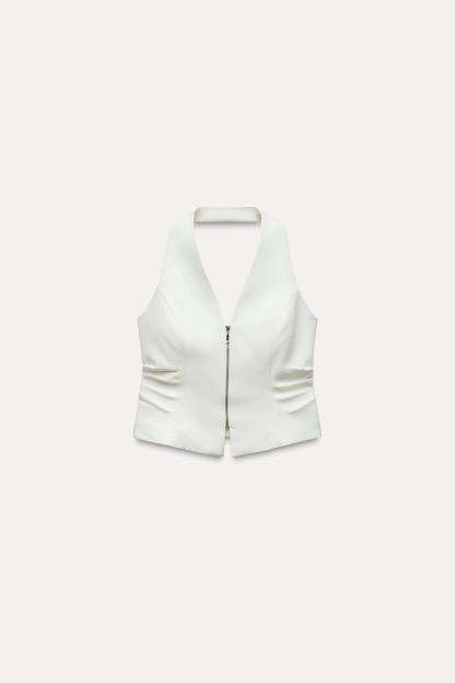 PLEATED SIDE HALTER TOP