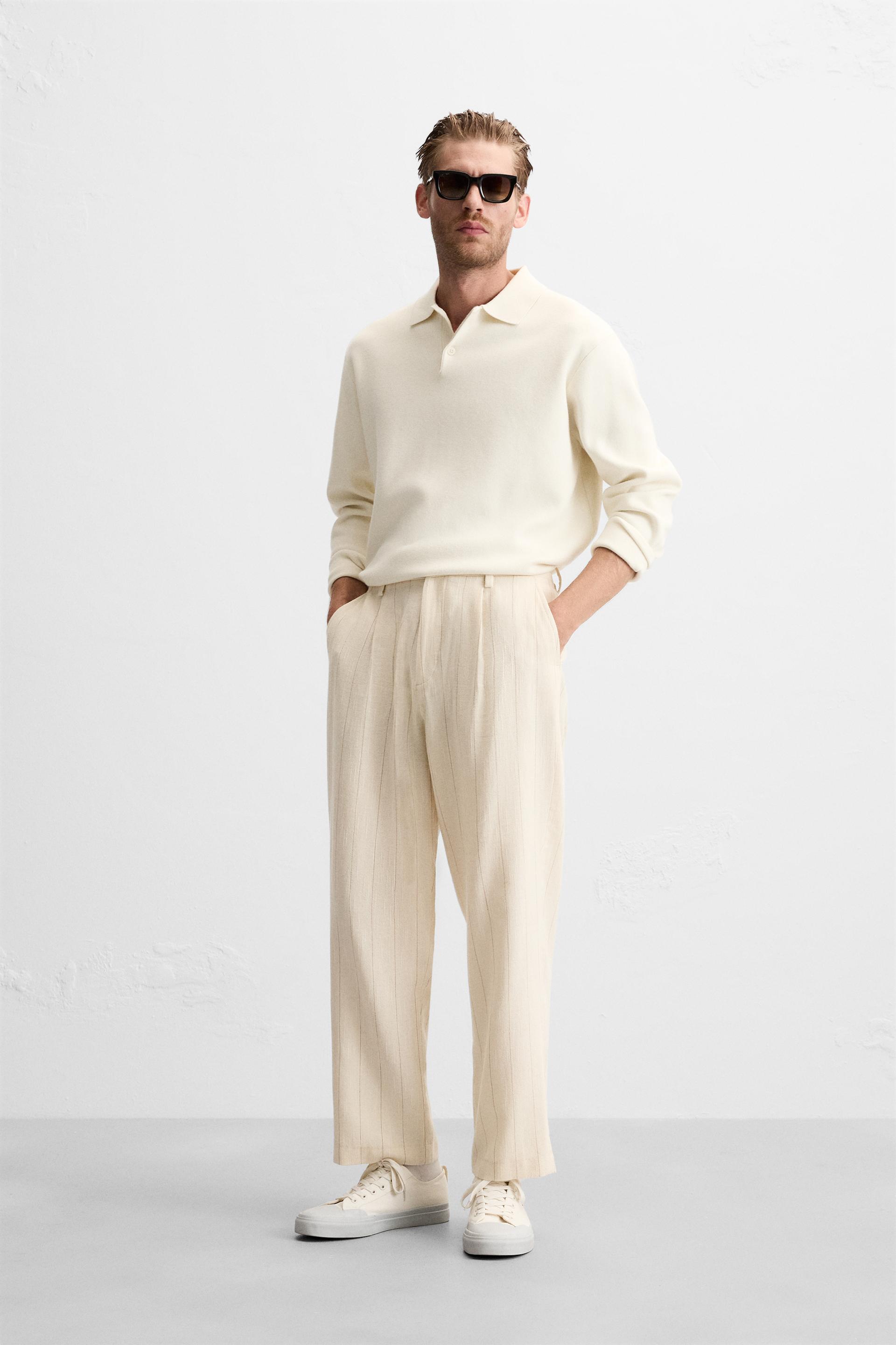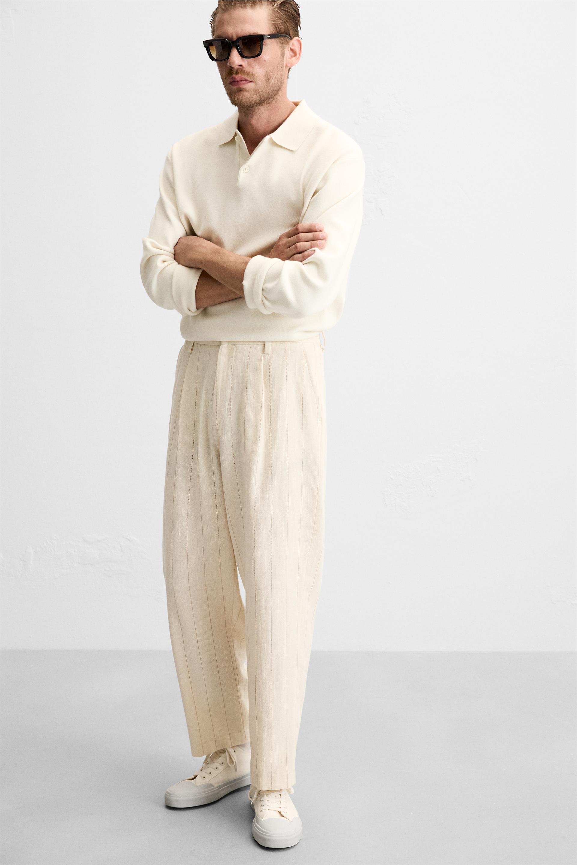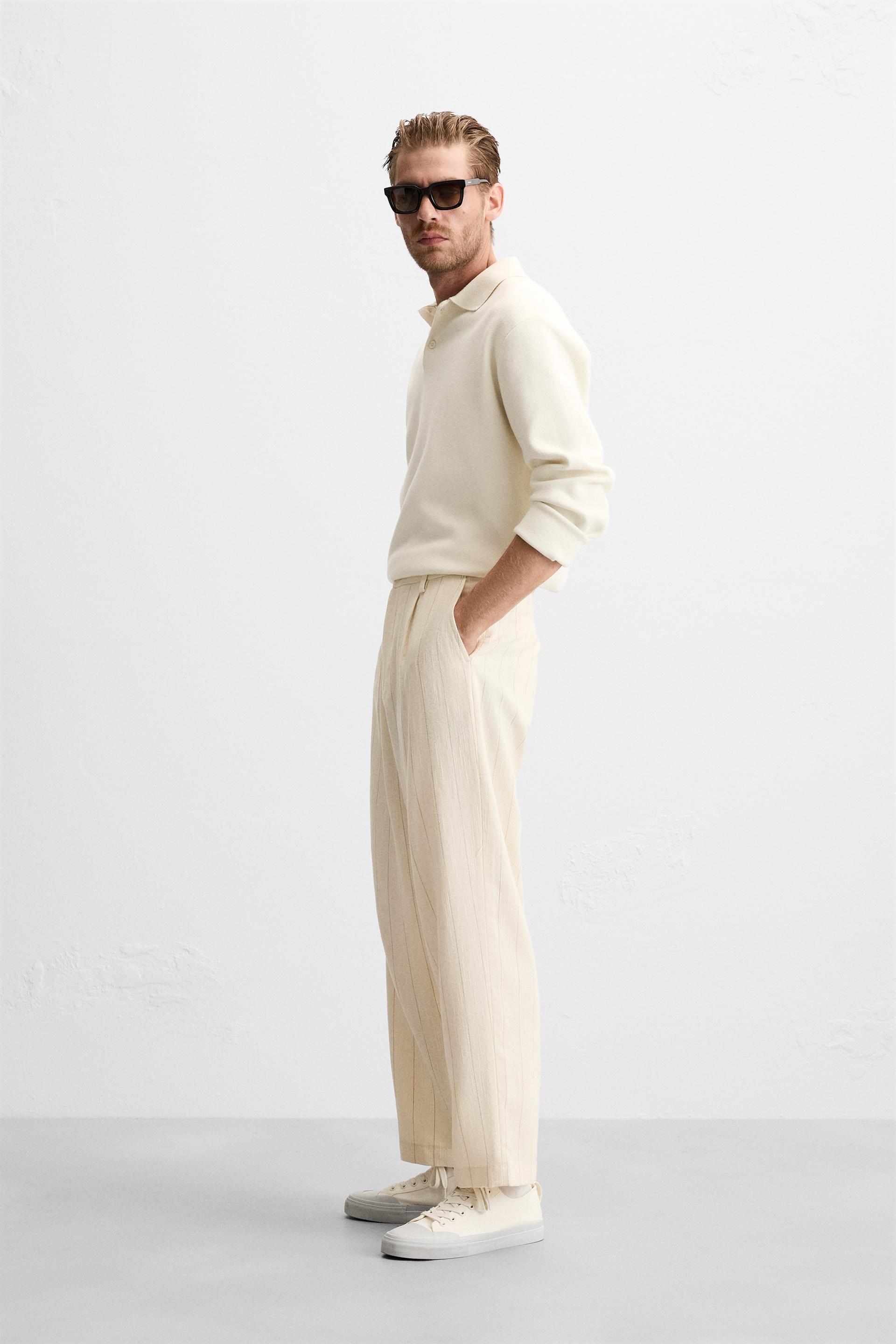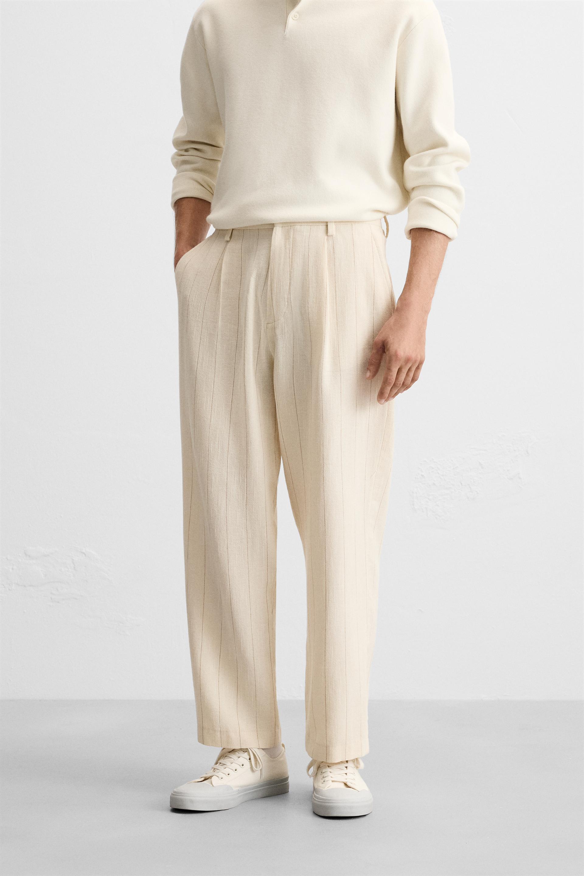 PLEATED STRIPED PANTS