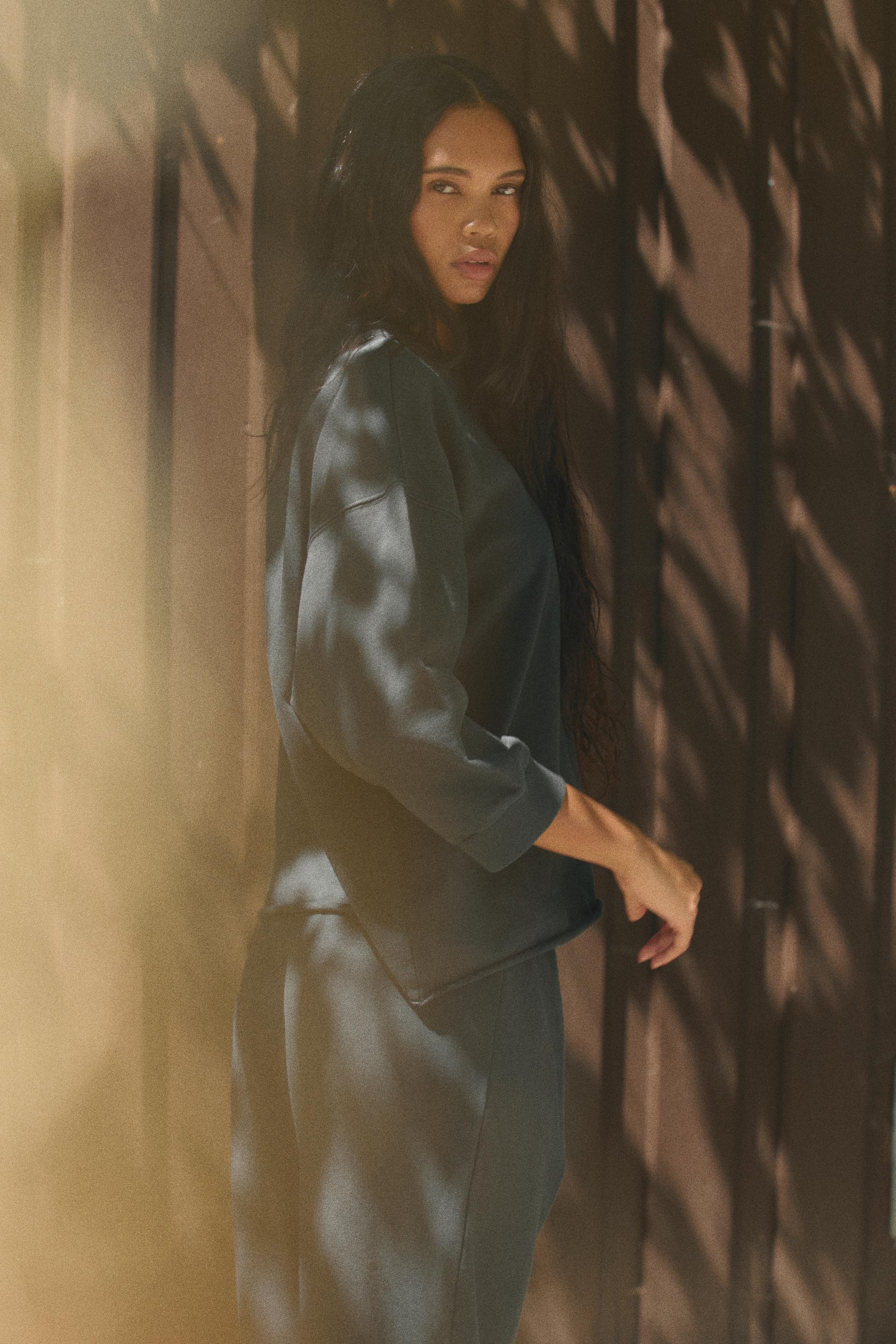 COMPOSITION & CARECOMPOSITIONWe work with monitoring programs to guarantee compliance with the social, environmental, and health and safety standards of our products. To assess its compliance, we have developed an audit program and plans for continual improvement.OUTER SHELLMAIN FABRIC100% cottonSECONDARY FABRIC97% cotton 3% elastaneCARECaring for your clothes is caring for the environment.Lower temperature washes and delicate spin cycles are gentler on garment, helping to maintain the color, shape and structure of the fabric. At the same time it reduces energy consumption that is used in care processes.
