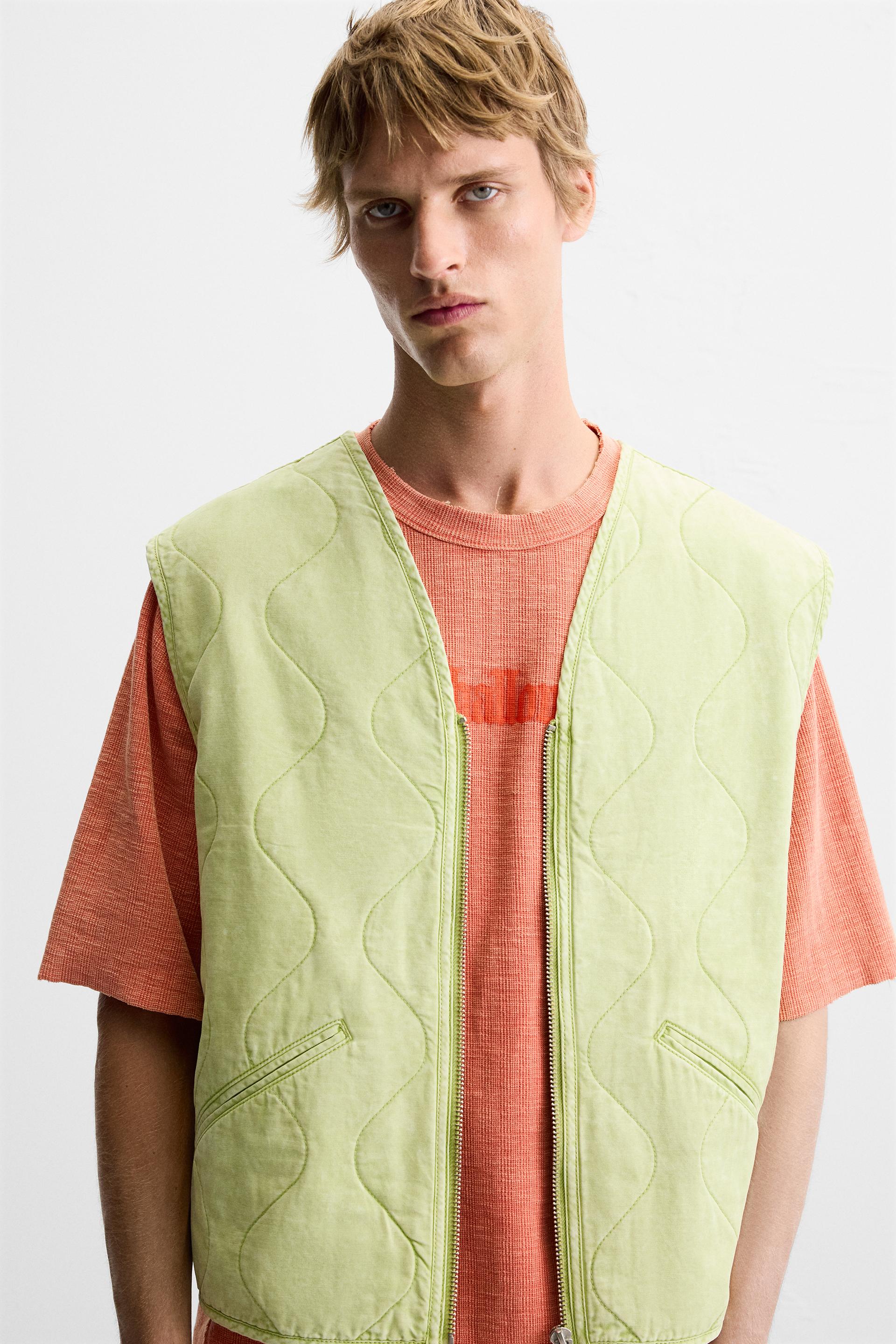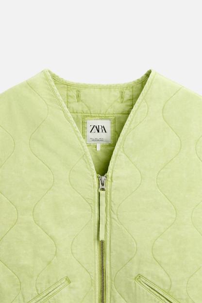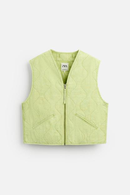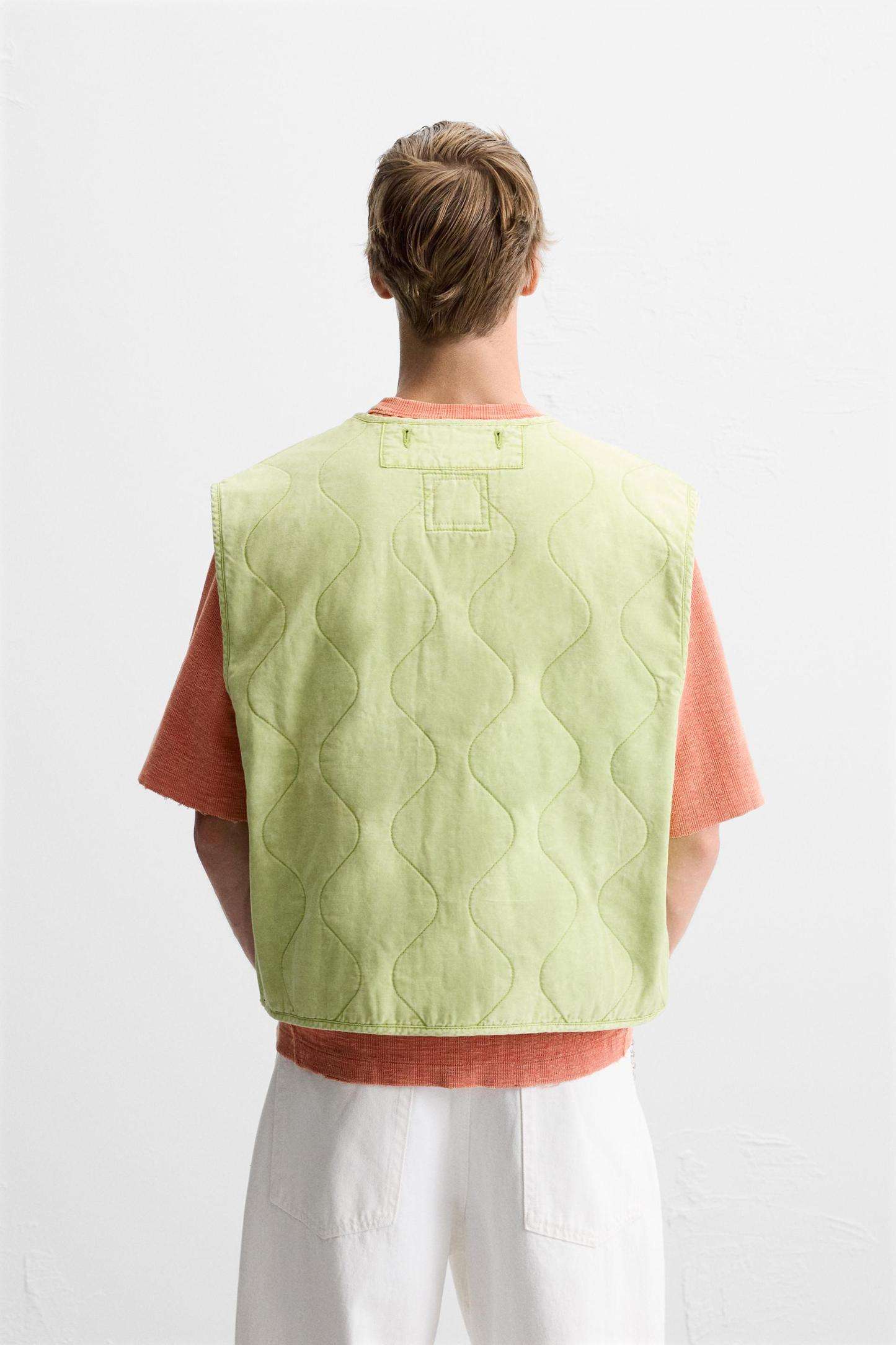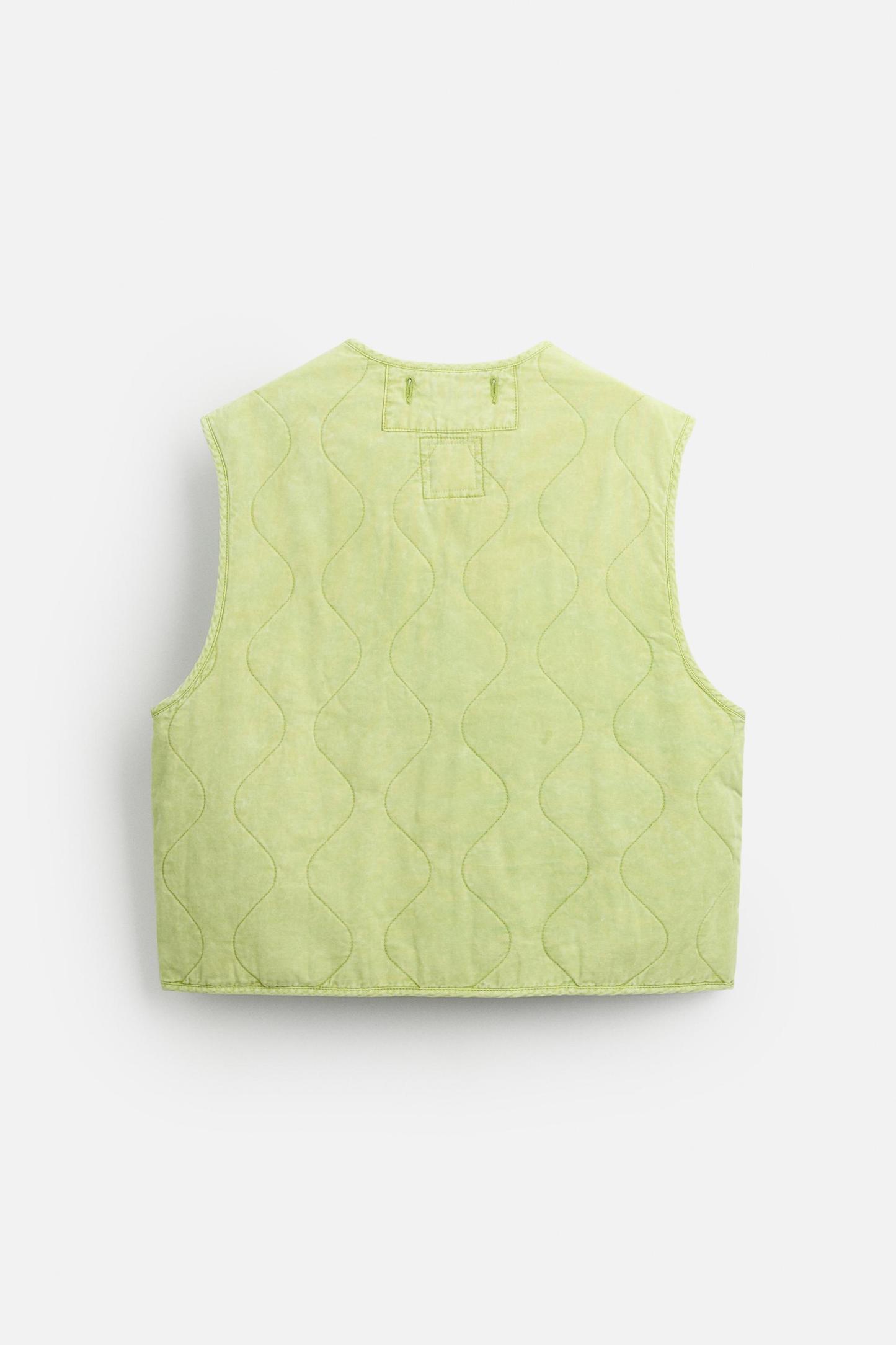 PRINTED WASHED EFFECT QUILTED VEST