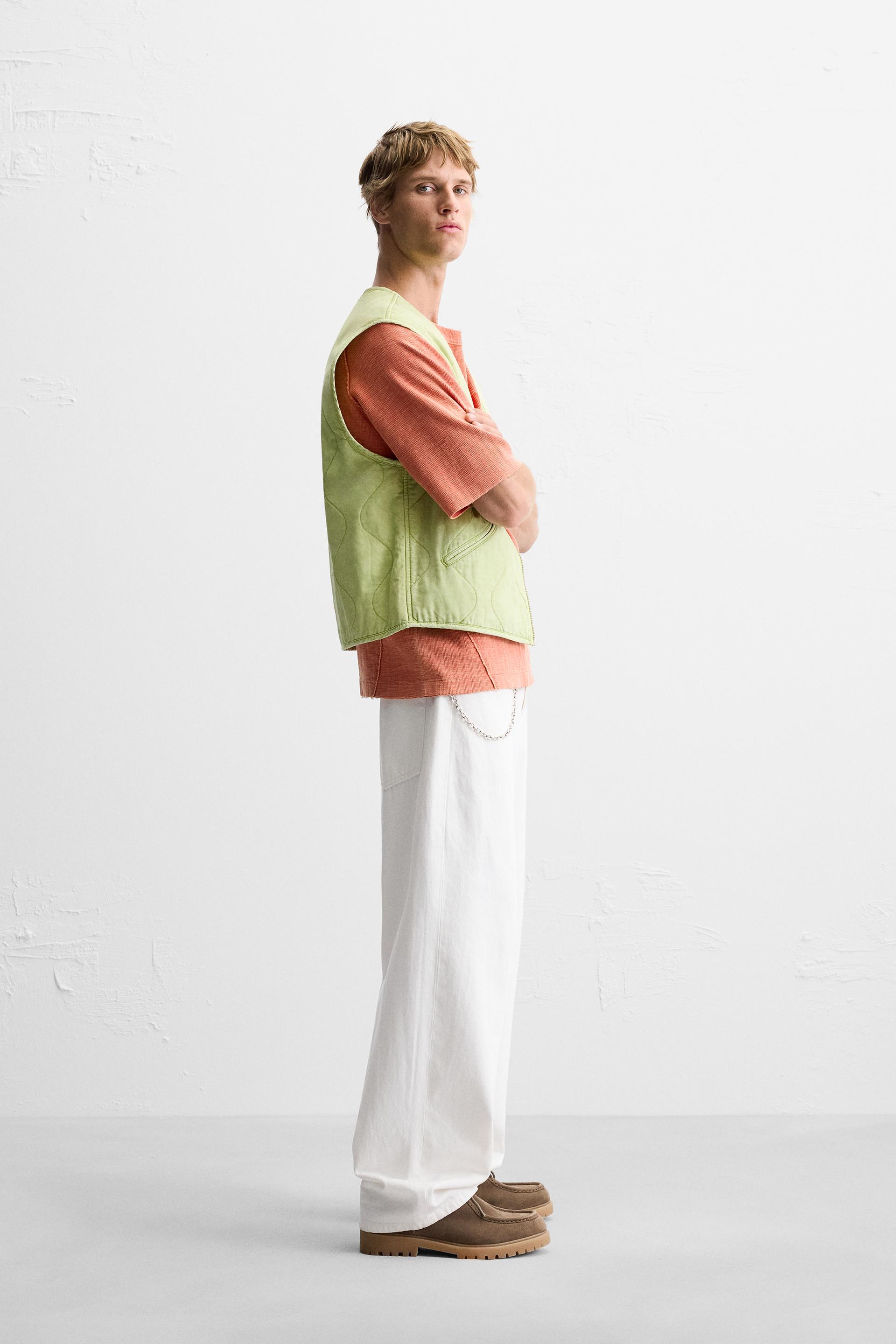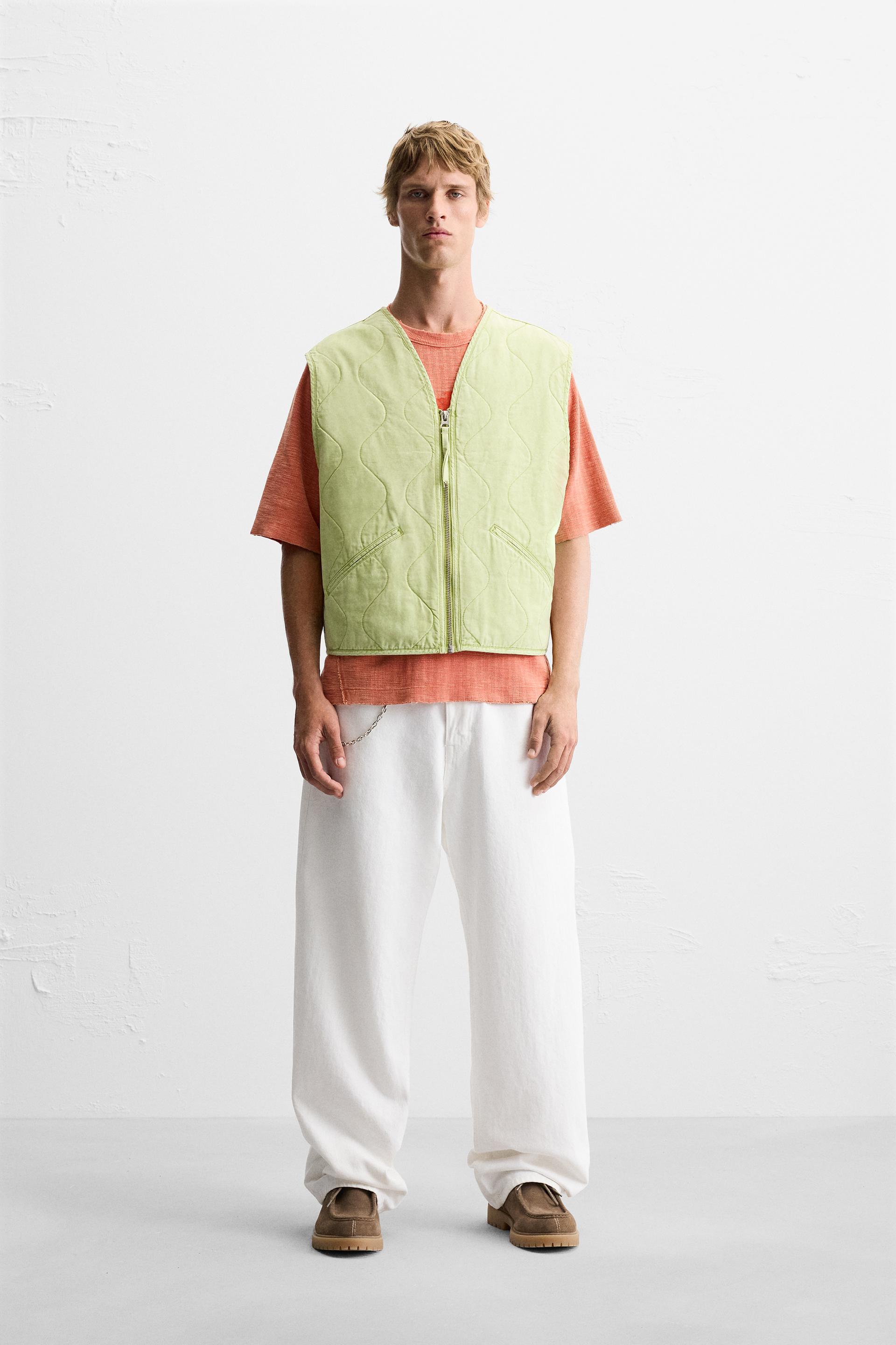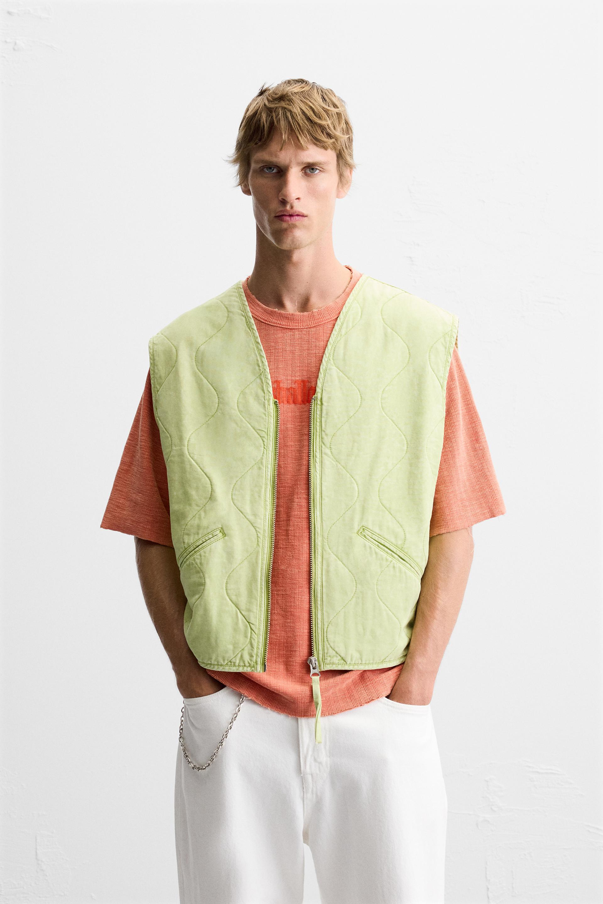 PRINTED WASHED EFFECT QUILTED VEST