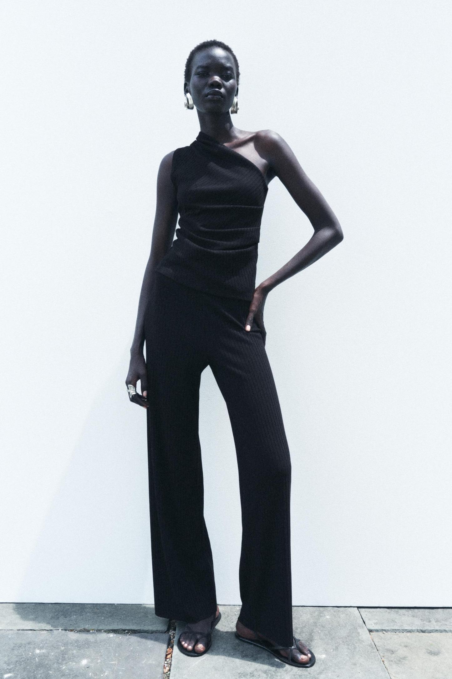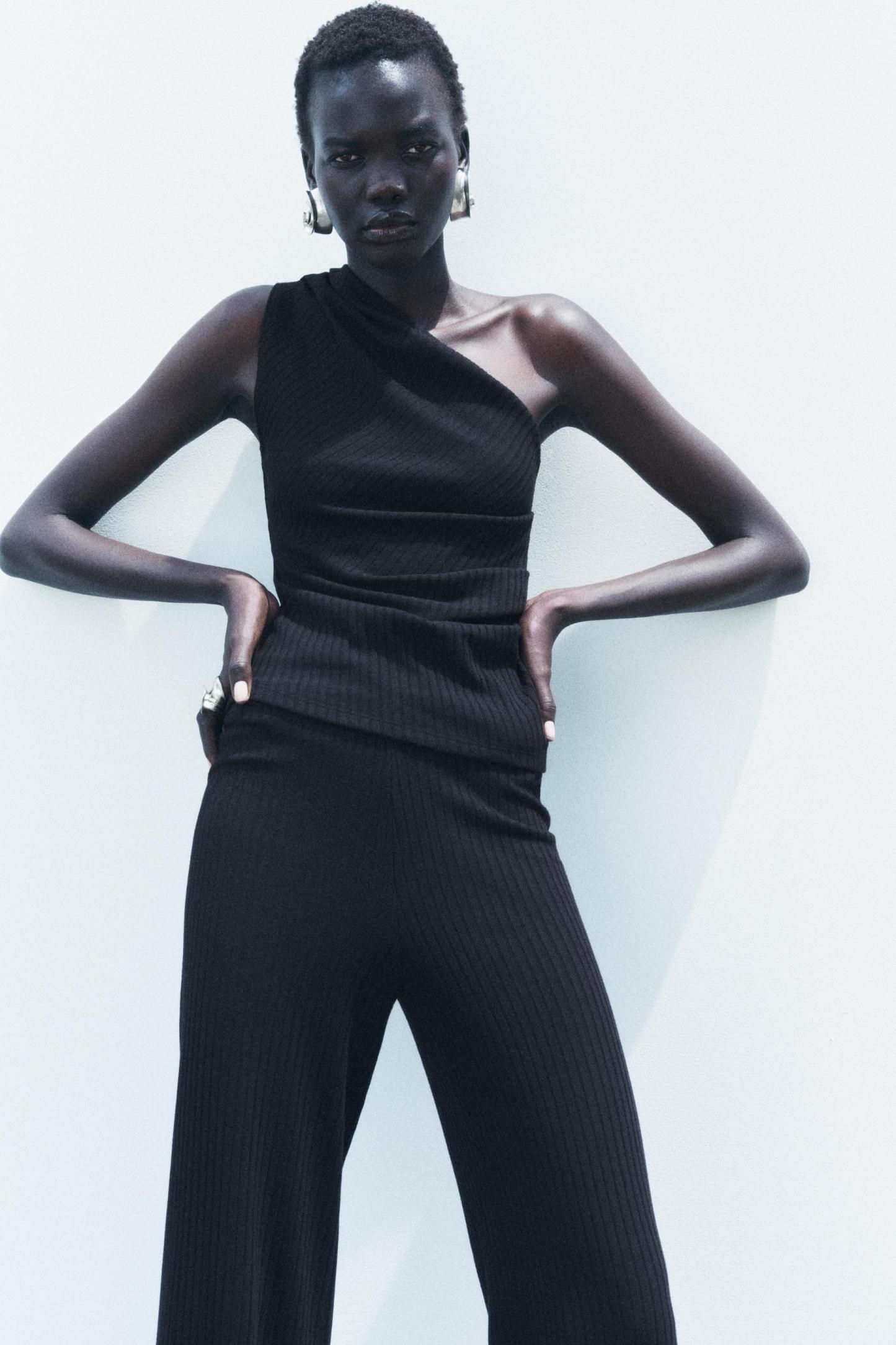 RIBBED WIDE LEG PANTS