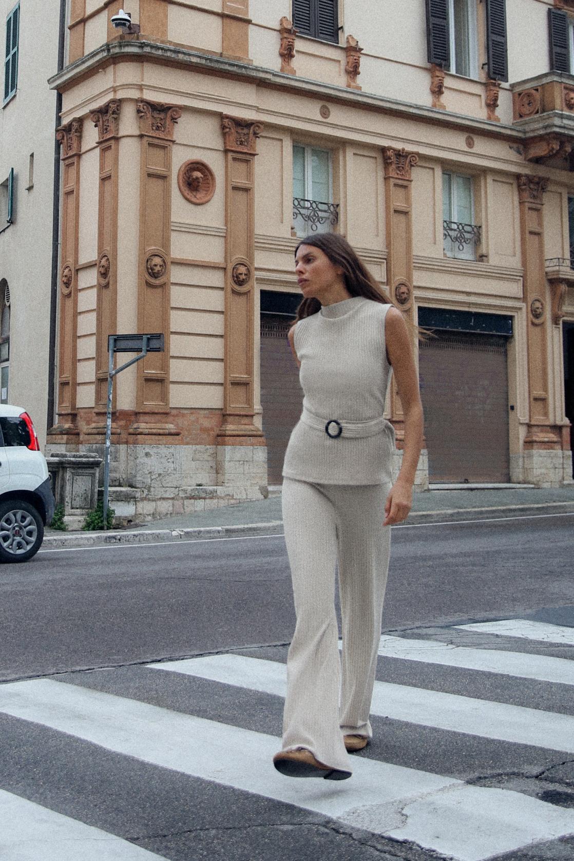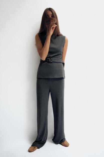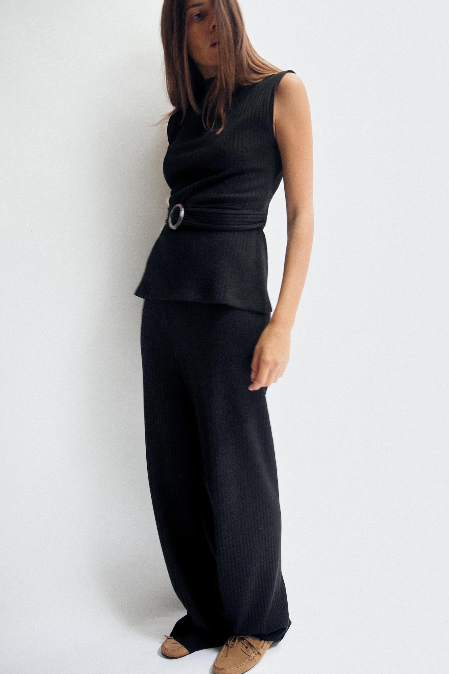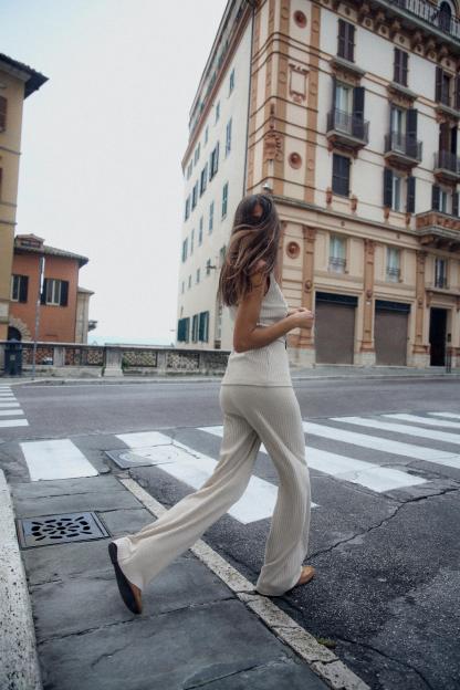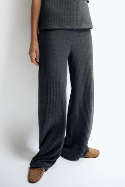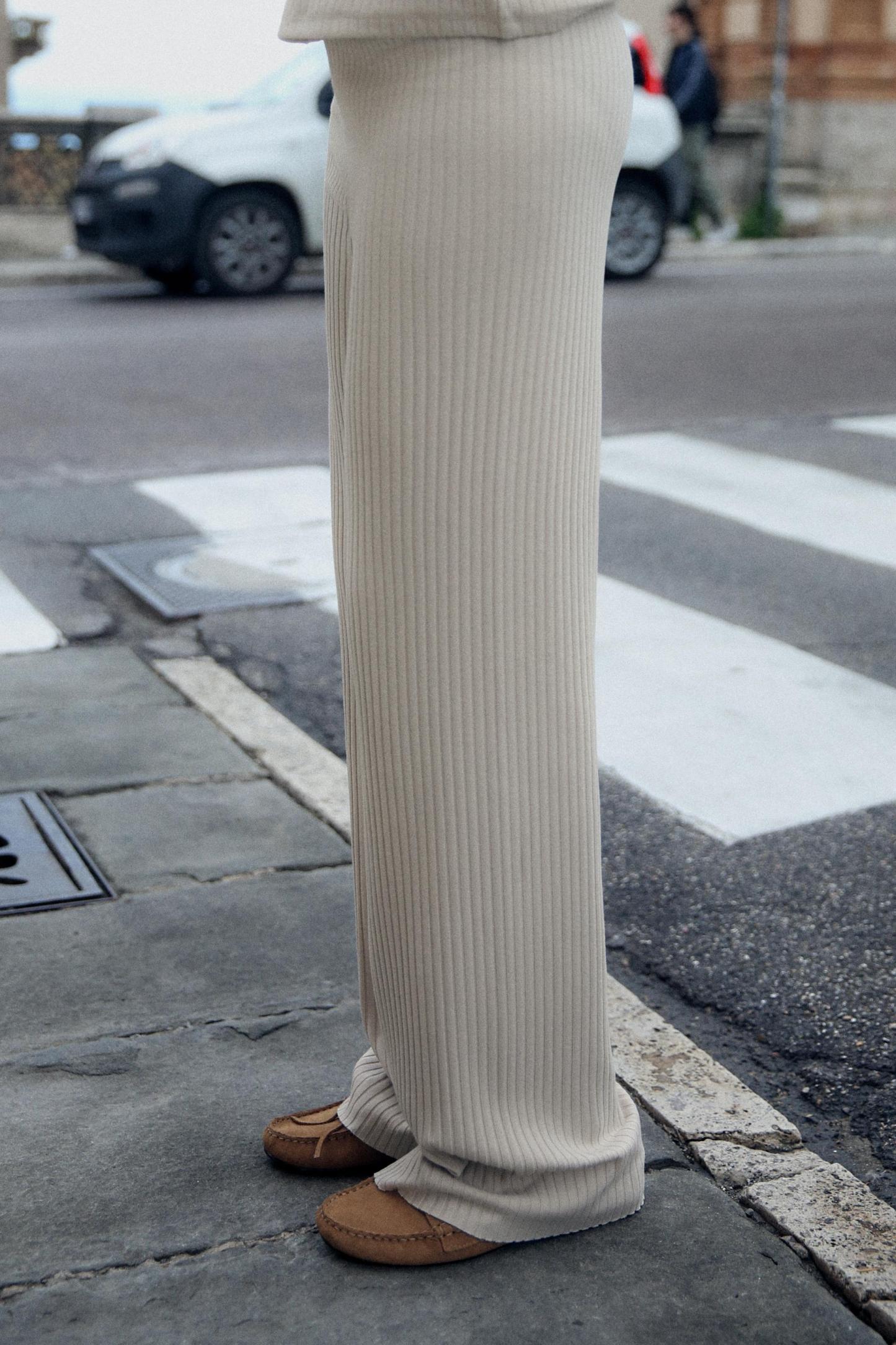 RIBBED WIDE LEG PANTS