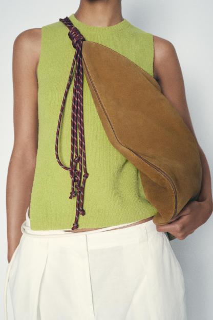 ROPE HANDLE SUEDE SHOULDER BAG