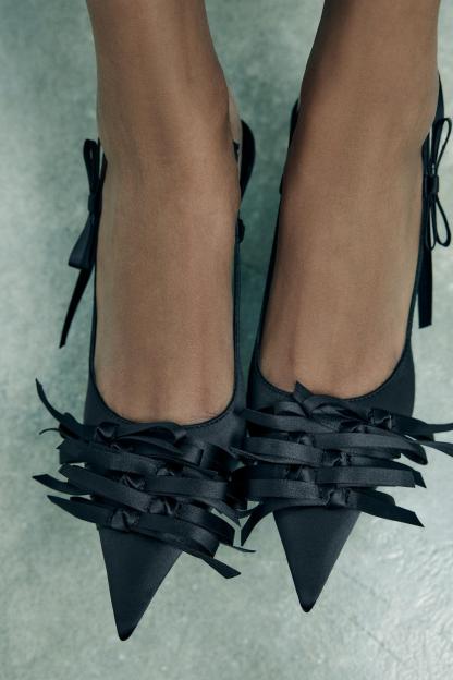 SATIN EFFECT MULTI-BOW HIGH HEEL SHOES