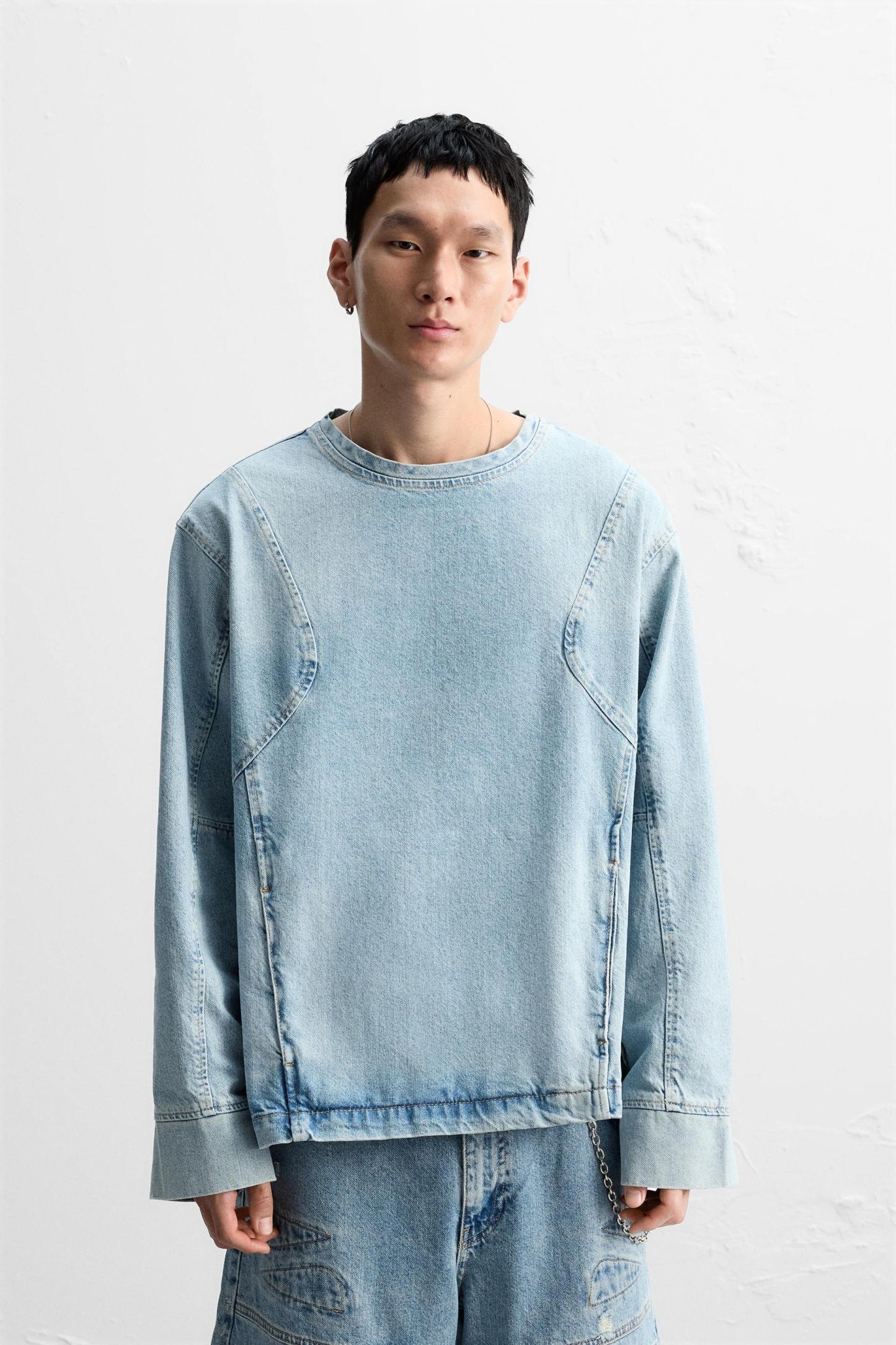 SEAMED DENIM SWEATSHIRT