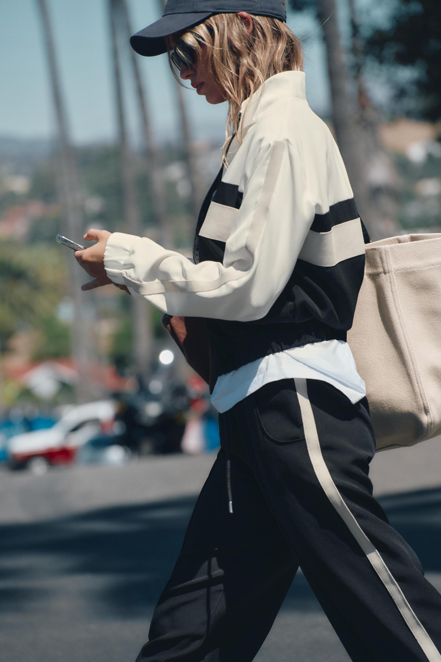 SIDE STRIPE ZIP UP BOMBER JACKET