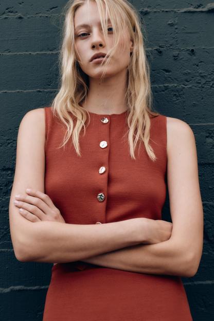 COMPOSITION & CARECOMPOSITIONWe work with monitoring programs to guarantee compliance with the social, environmental, and health and safety standards of our products. To assess its compliance, we have developed an audit program and plans for continual improvement.OUTER SHELL68% viscose 28% polyester 4% elastaneCARECaring for your clothes is caring for the environment.Lower temperature washes and delicate spin cycles are gentler on garment, helping to maintain the color, shape and structure of the fabric. At the same time it reduces energy consumption that is used in care processes.